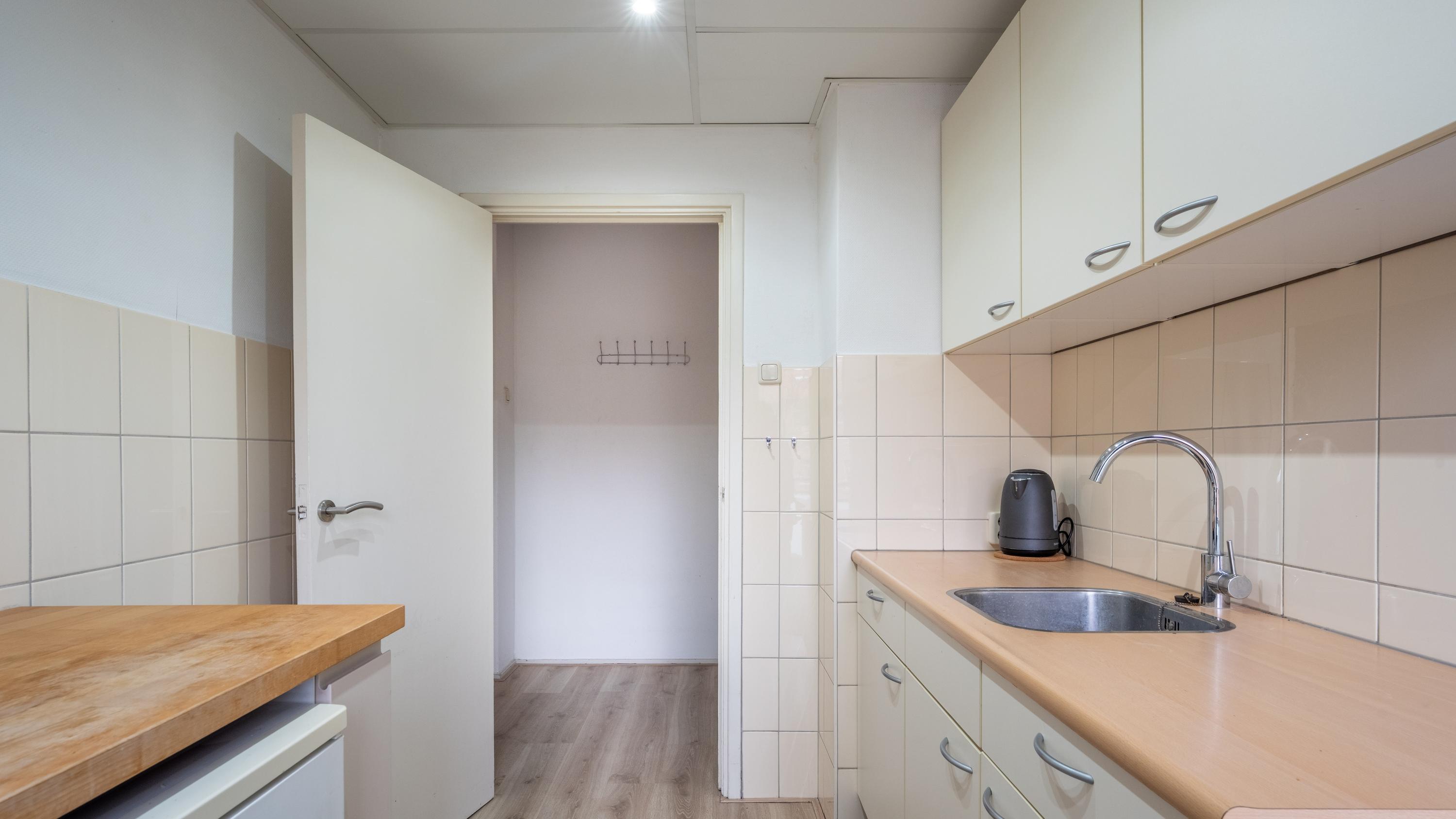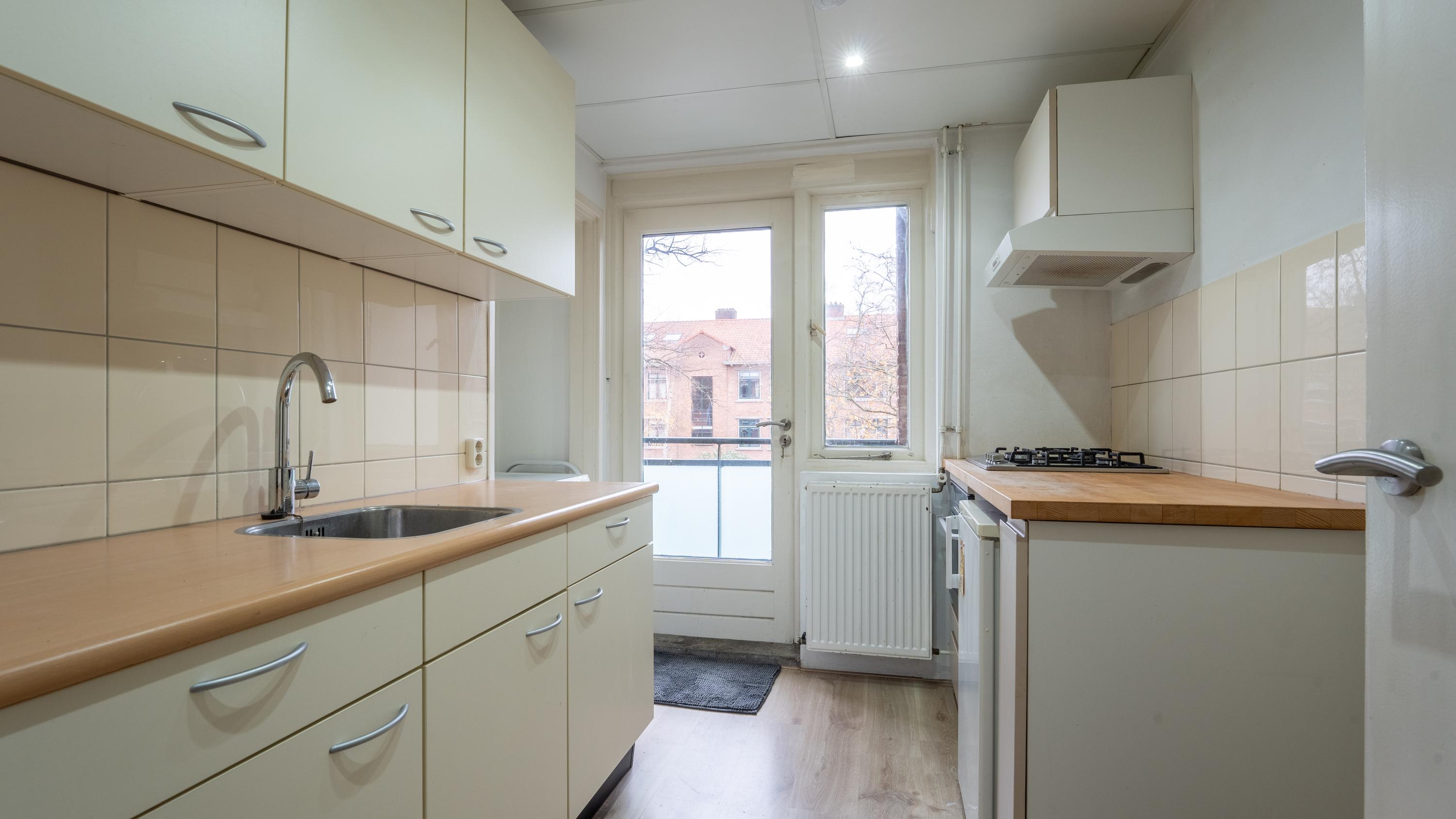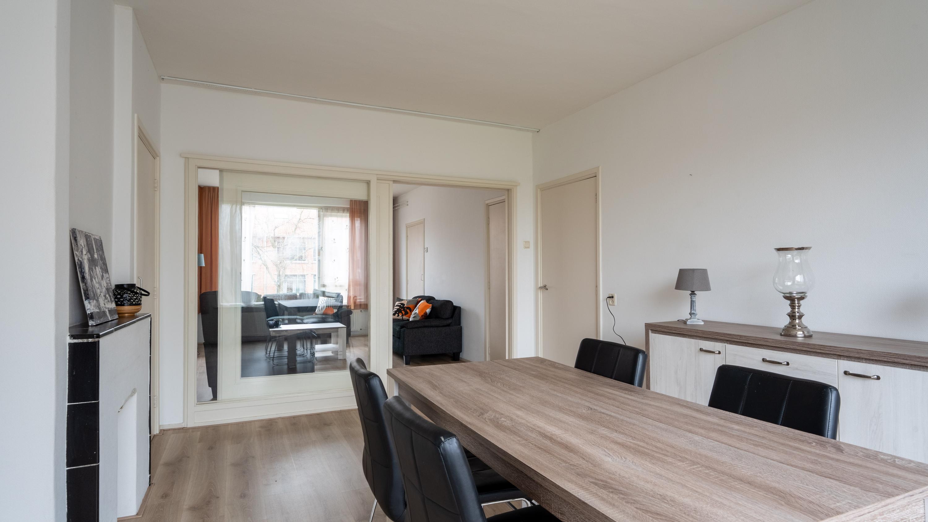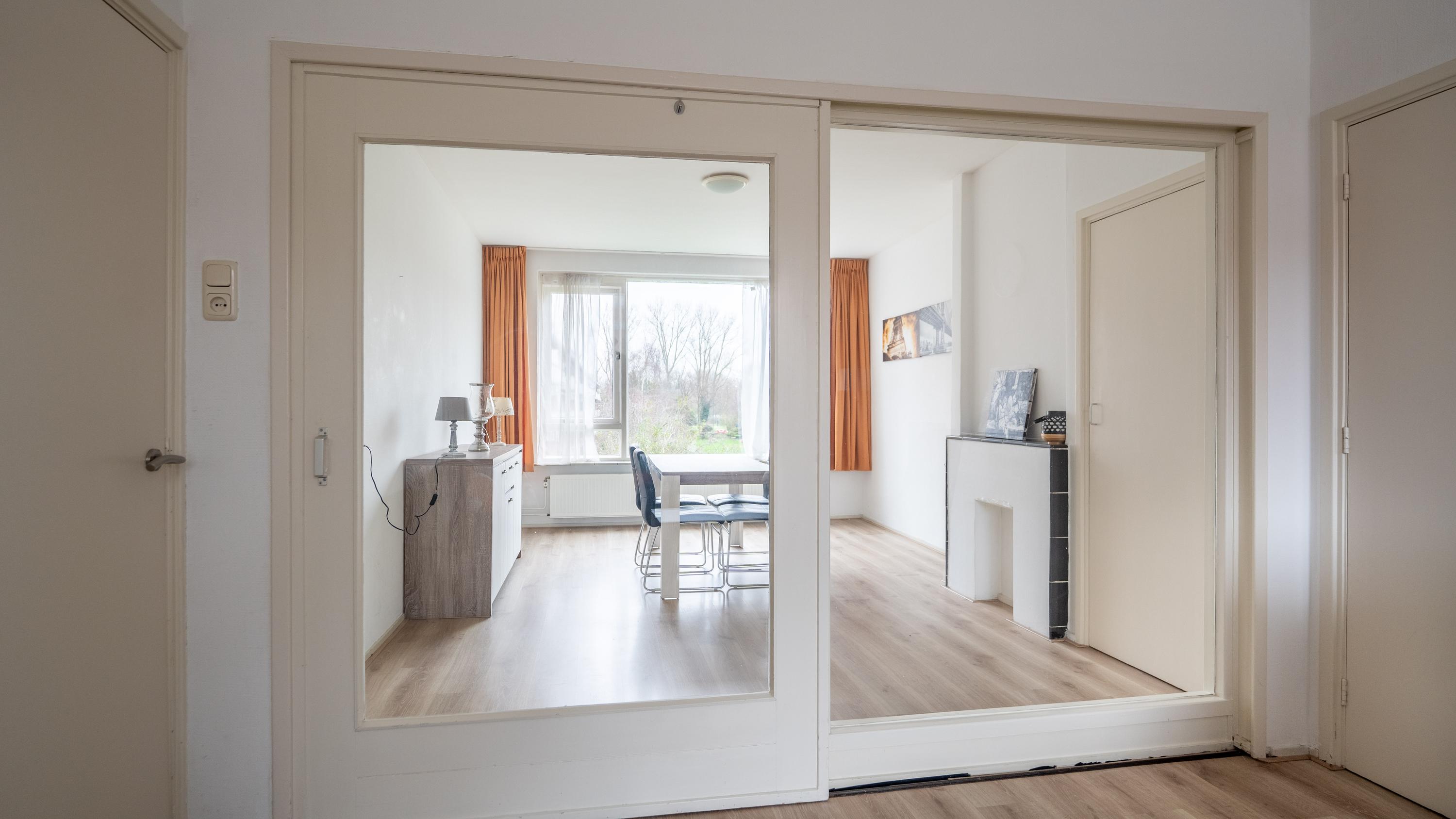 De woning beschikt over een slaapkamer met balkon. De woonkamer heeft vaste inbouwkasten en staat in verbinding met de afsluitbare eetkamer. Juist die eetkamer maakt de woning extra interessant: gebruik het zoals het nu is als eetkamer, of richt het (met enige aanpassing) in als extra kamer, waardoor het appartement als 3-kamer woning kan functioneren.