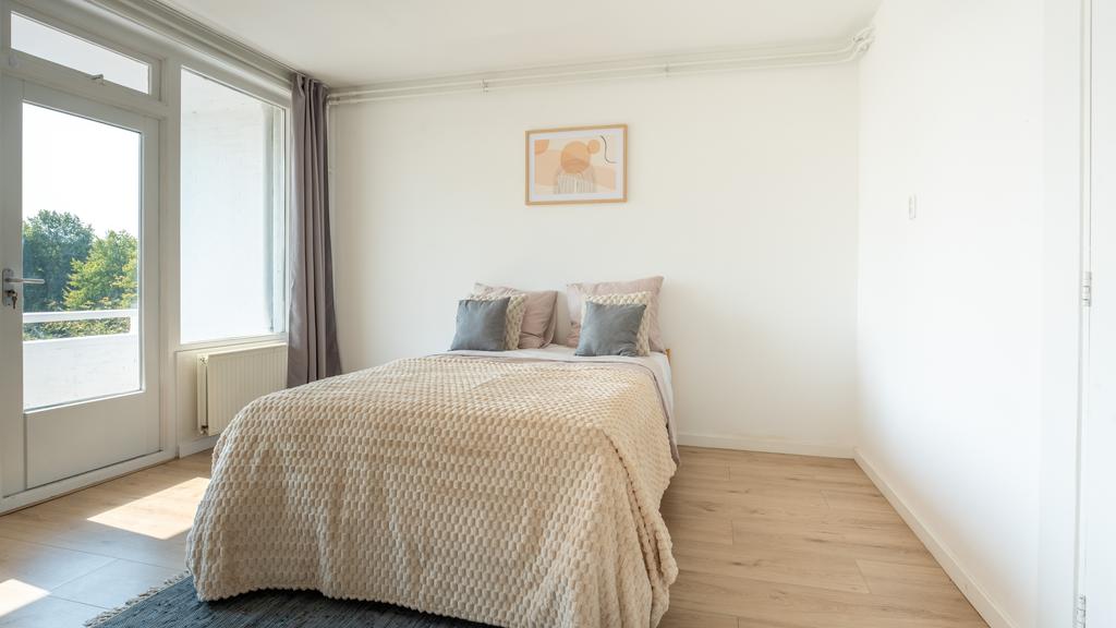 De moderne badkamer is voorzien van een inloopdouche, een wasbak met wastafelmeubel, handdoekradiator en een wasmachine opstelling. De hoofdslaapkamer heeft net als de woonkamer toegang tot het zonnige balkon. Een heerlijke optie om hier de dag te beginnen óf af te sluiten. De tweede slaapkamer heeft groen uitzicht op het noorden. Ten slotte is er ook nog een berging aanwezig in het complex.