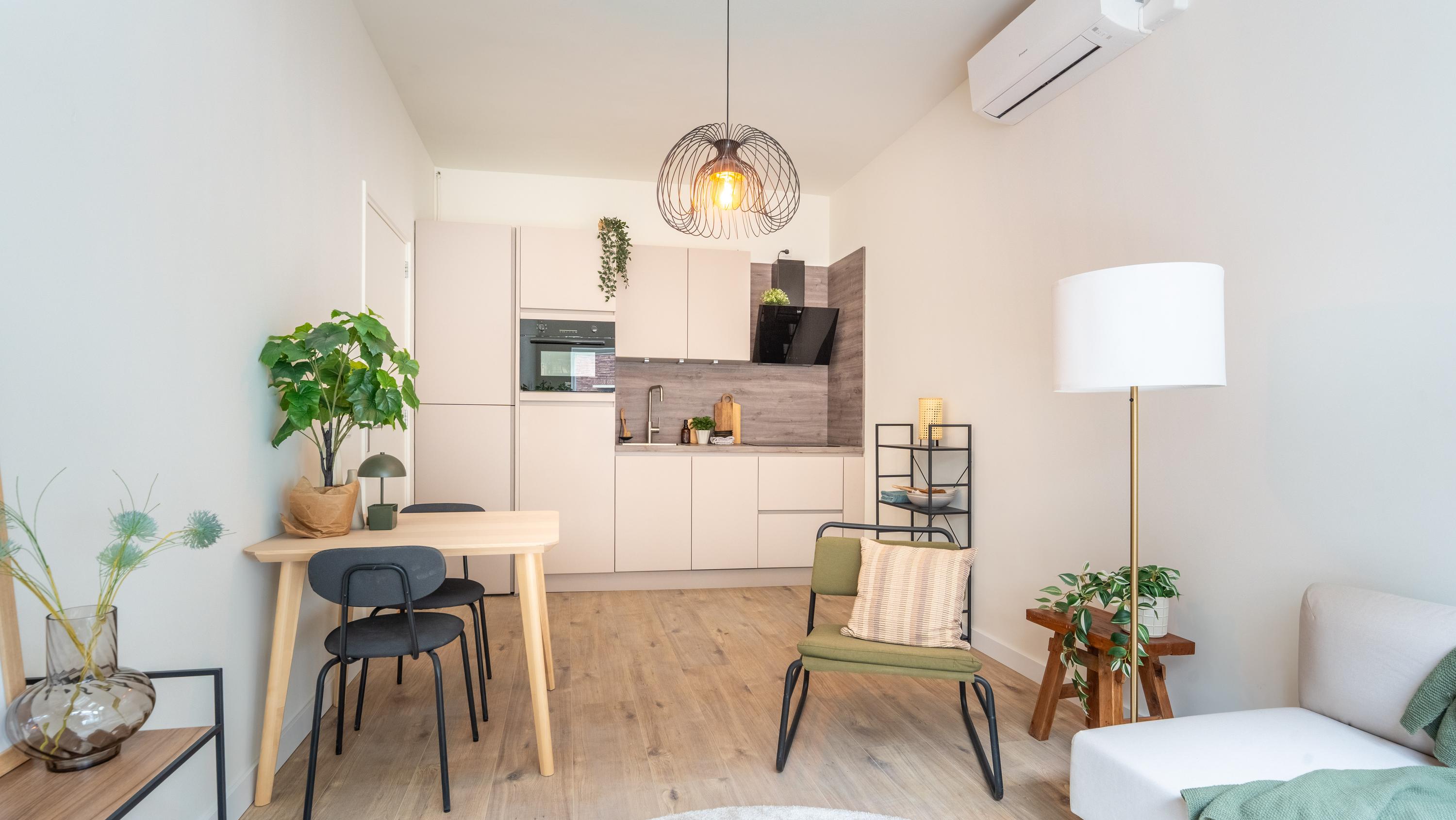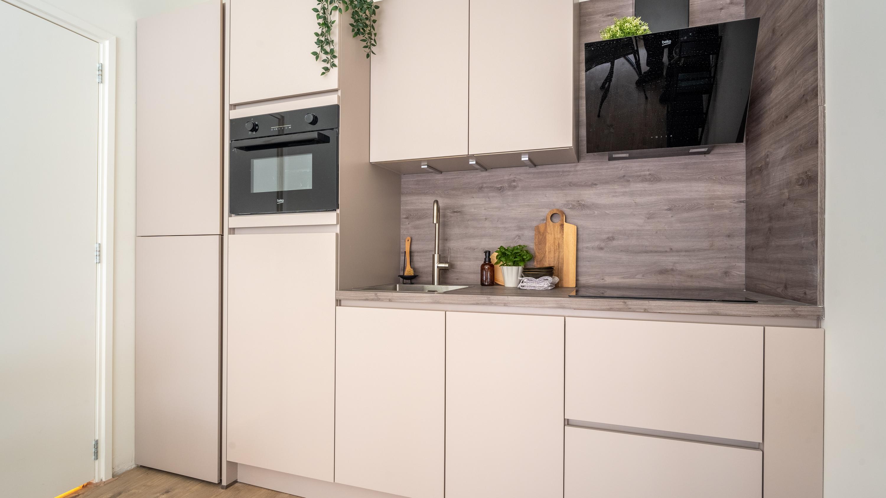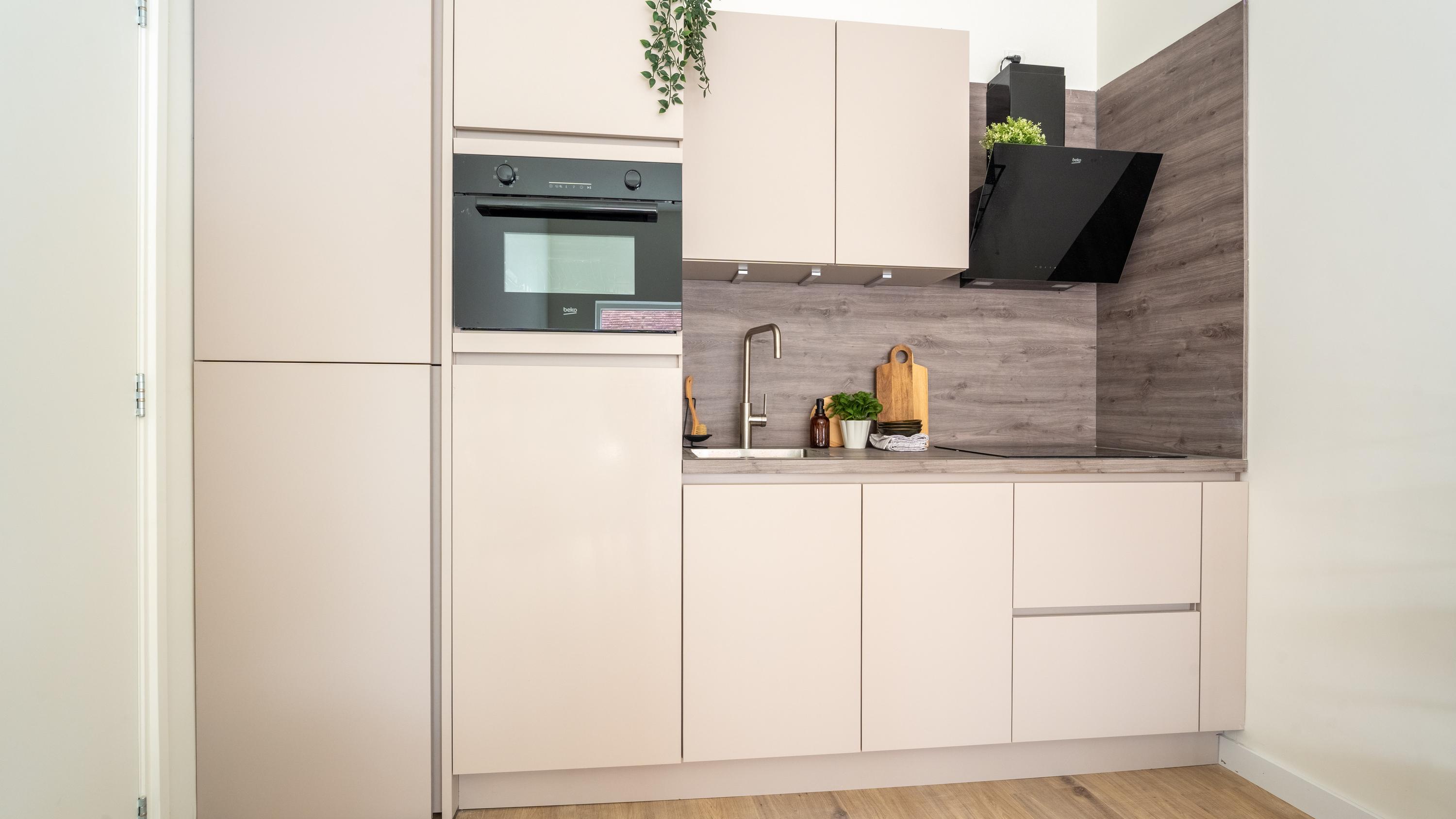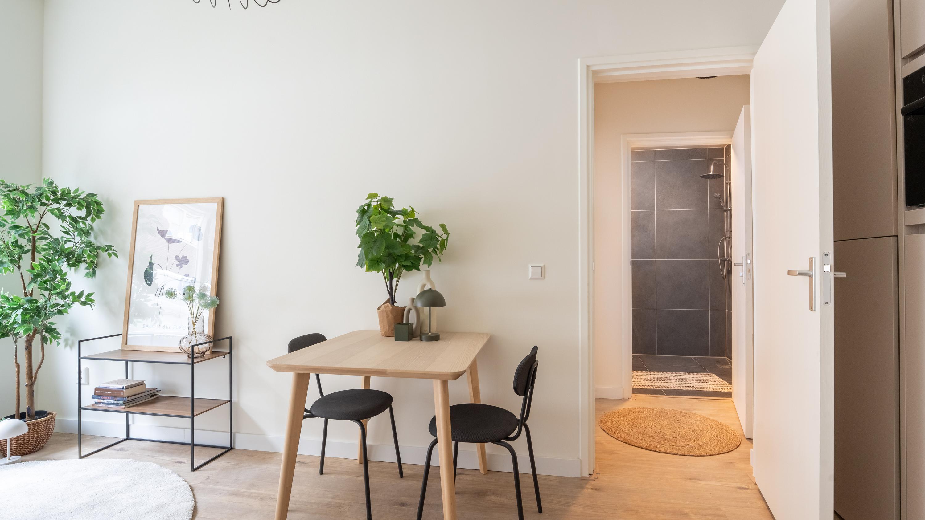 Dit volledig gerenoveerde en gemoderniseerde 2-kamer appartement op de begane grond biedt alles wat je nodig hebt voor een zorgeloos en modern leven. In 2026 is dit appartement helemaal vernieuwd en voorzien van de nieuwste gemakken. Met luchtverwarming, airconditioning en een strakke, moderne keuken compleet met inductiekookplaat, afzuigkap, koelkast met vriesvak en vaatwasser is het de ideale plek om na een drukke dag heerlijk thuis te komen. De lichte, neutrale laminaatvloer zorgt voor een frisse uitstraling en past perfect bij elke woonstijl.