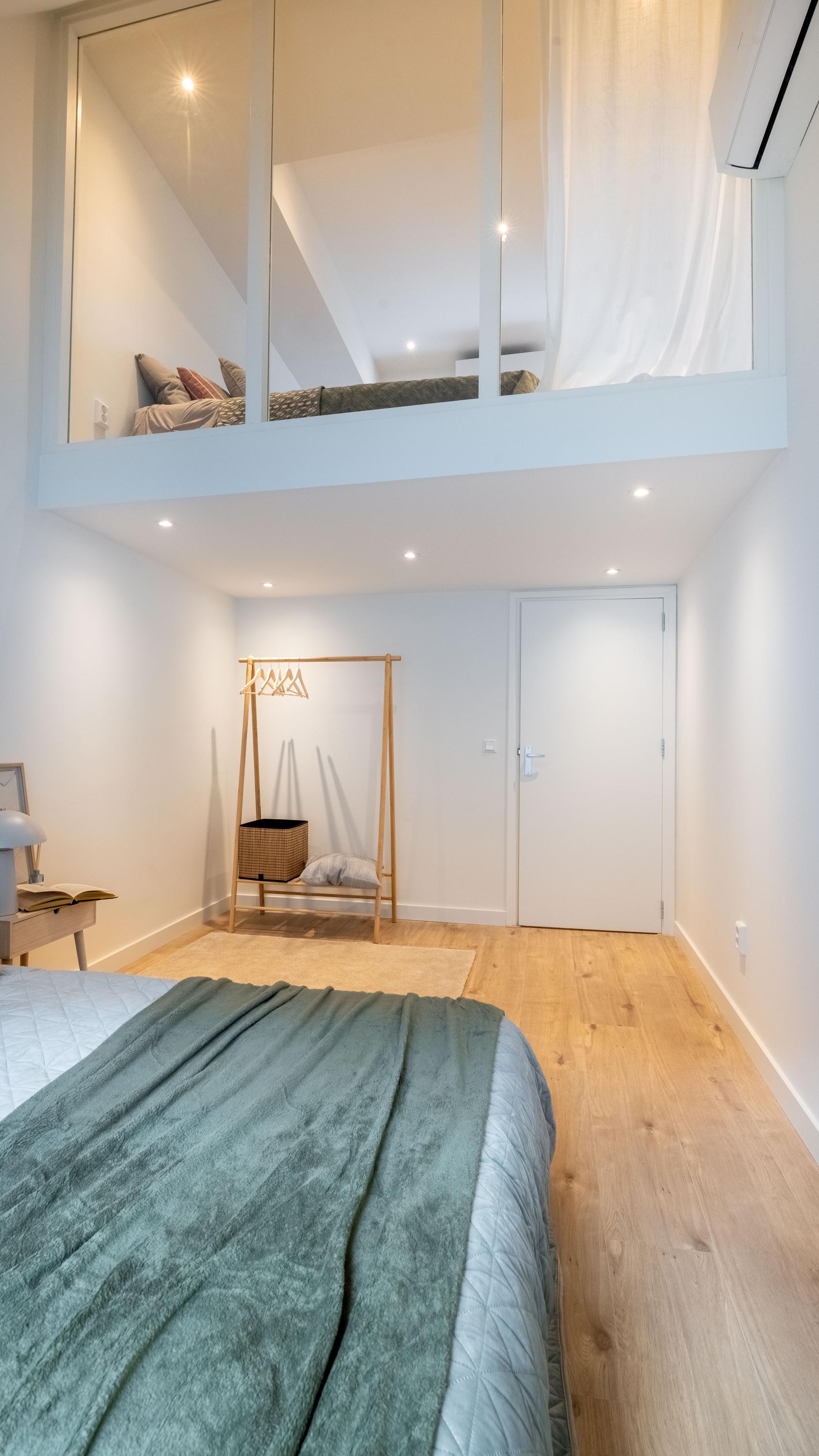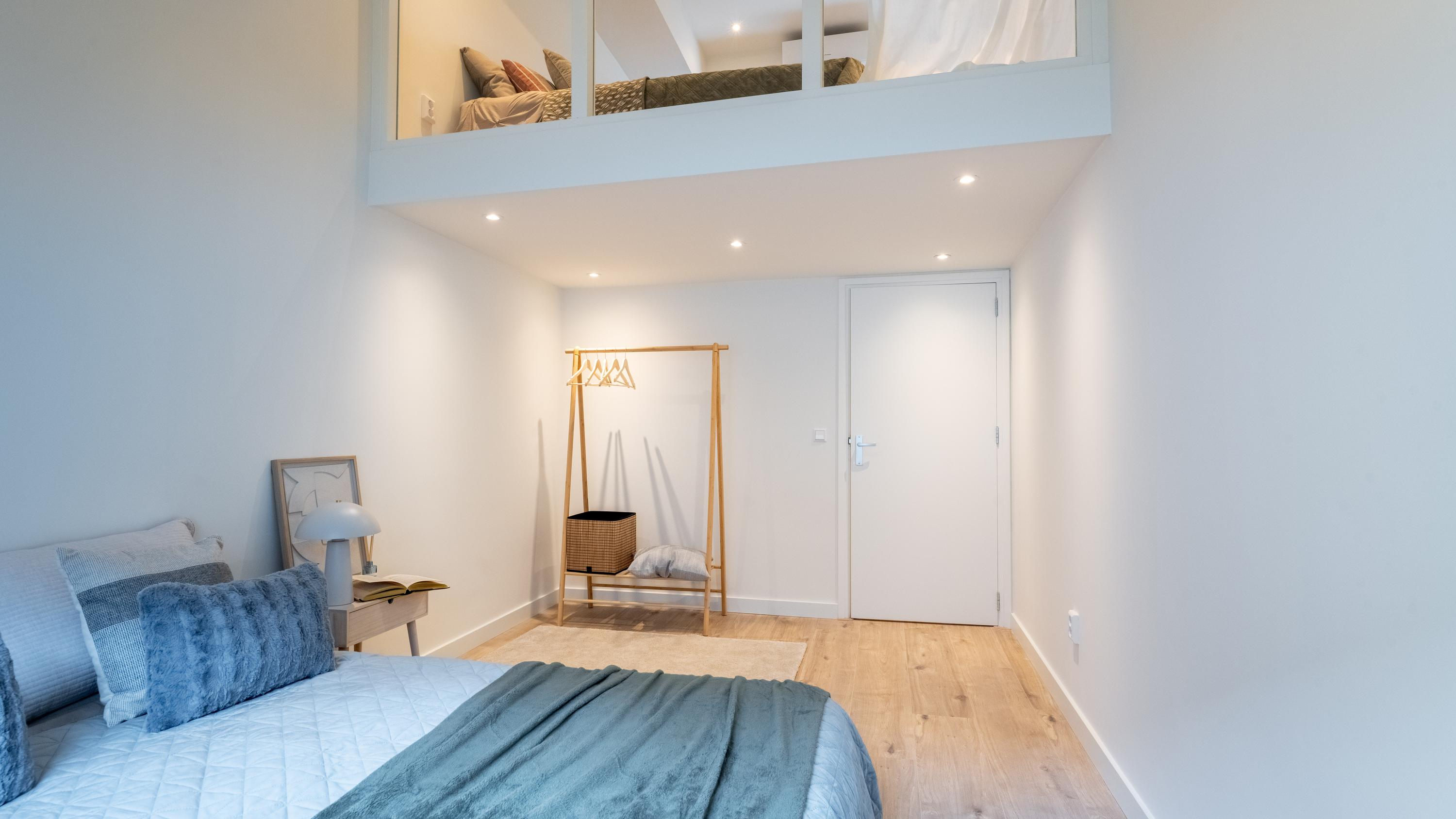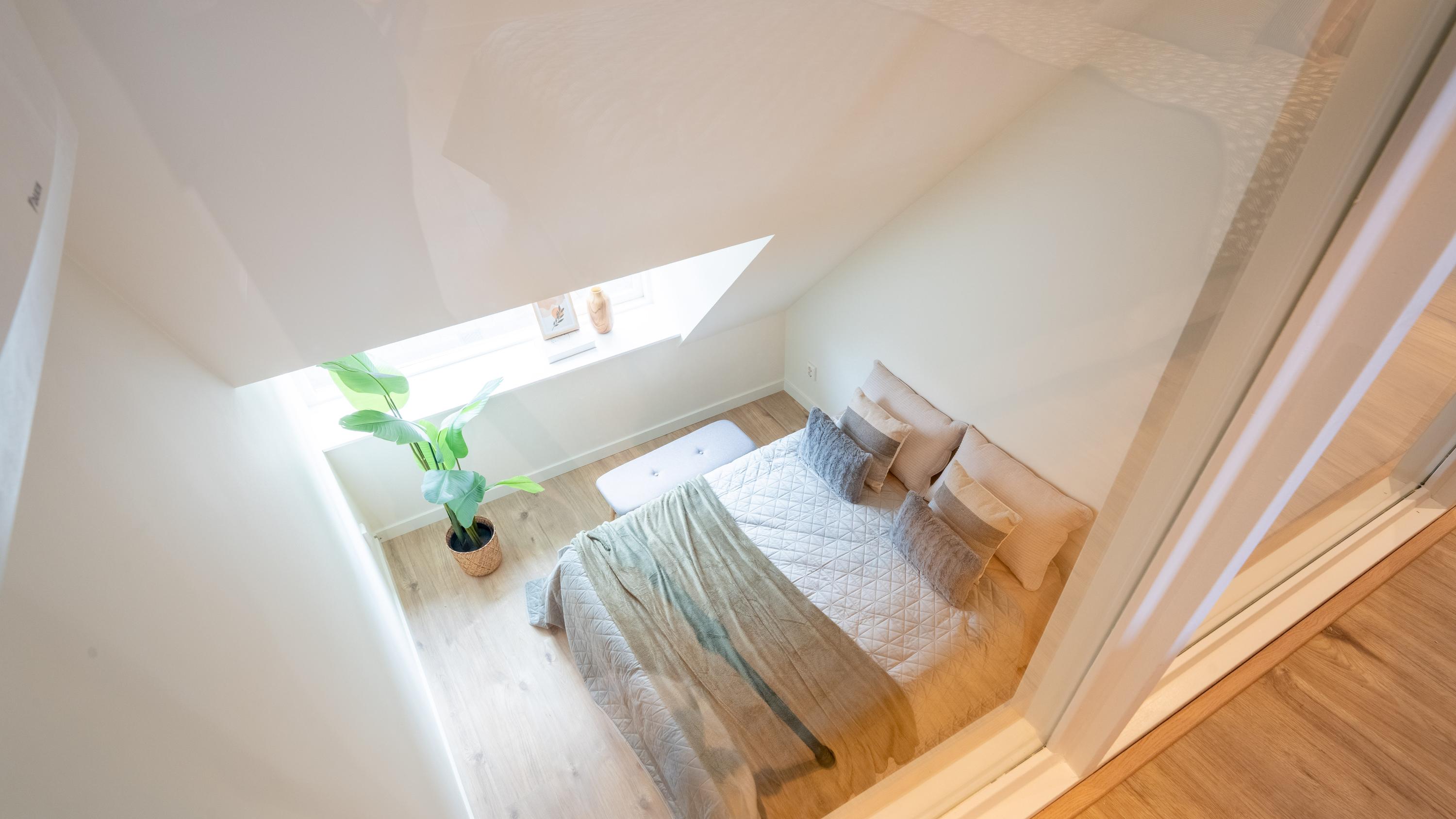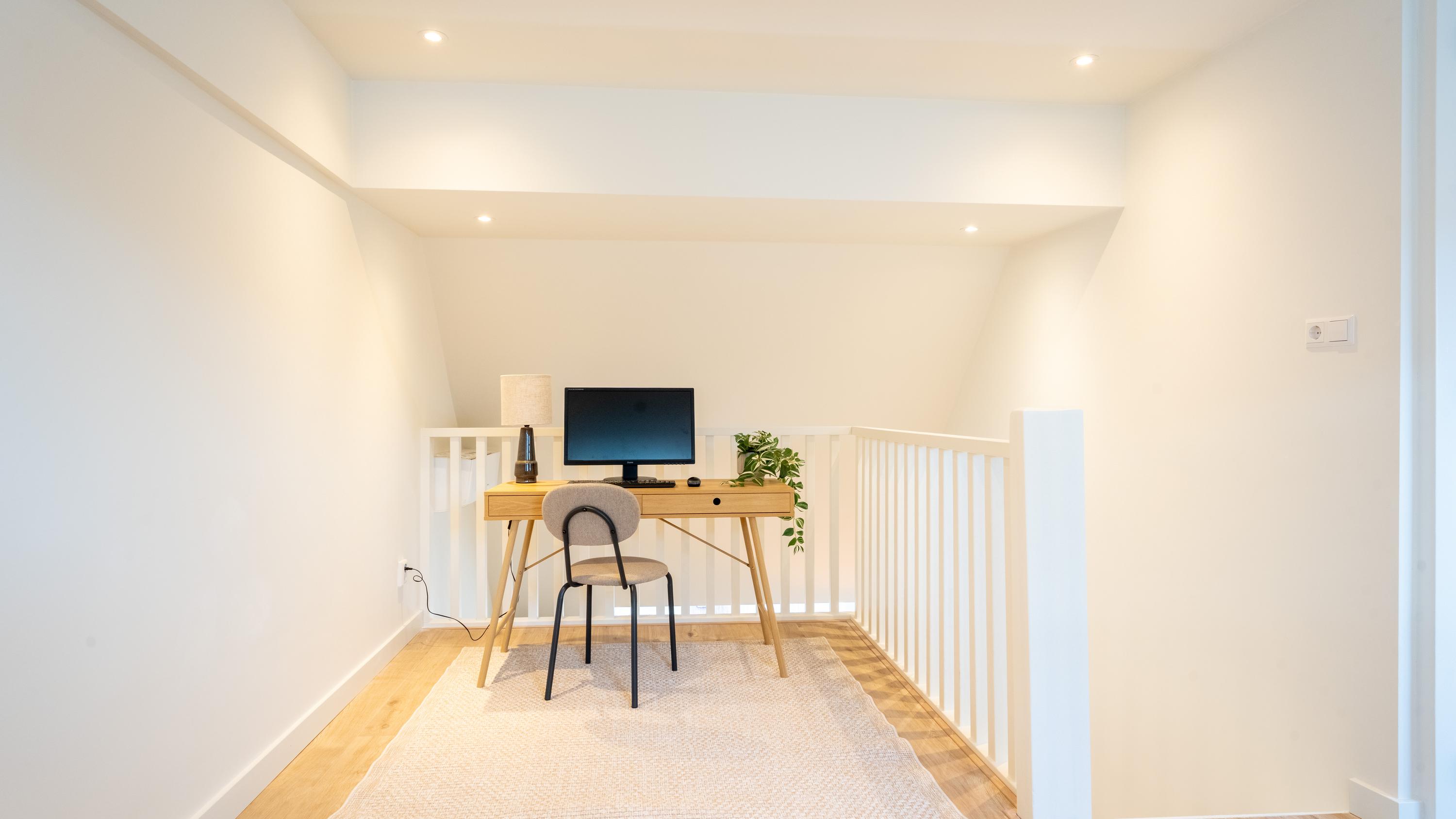Gelegen op de eerste en tweede etage van volledig gerenoveerd kleinschalig complex is via de gezamenlijke entree de voordeur van dit heerlijke volledig nieuwe appartement beschikbaar. De woonkamer is met moderne en volledig uitgeruste keuken en separate kast voor wasmachine opstelling. Via hal is er toegang tot het losse toilet, de badkamer én ruime hoofdslaapkamer. De vaste trap in de woonkamer komt uit op de ruime overloop met meer dan voldoende ruimte voor een prettige werkplek en wellicht een leeshoek. Tevens bevindt zich op deze etage een tweede ruime slaapkamer.