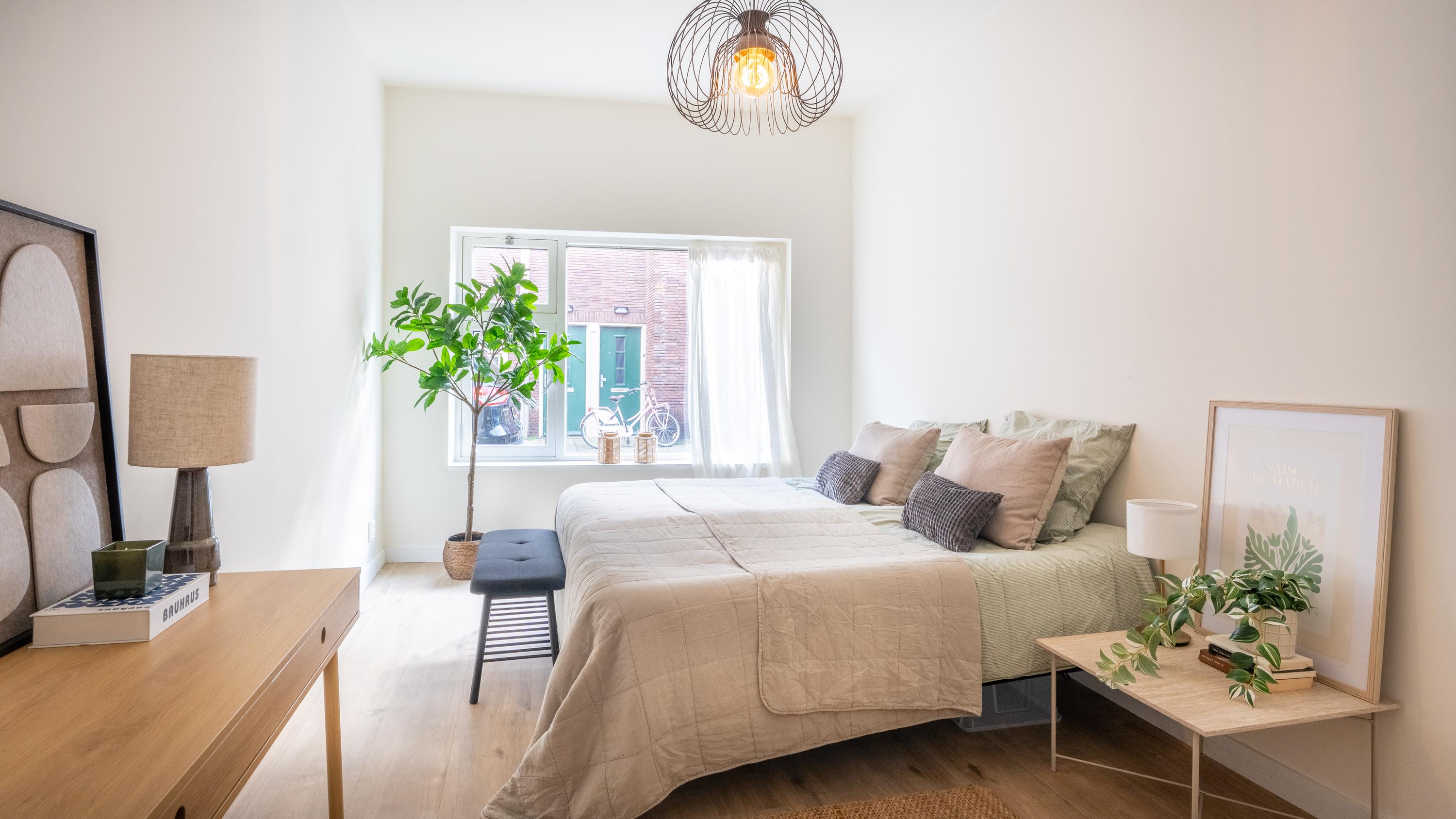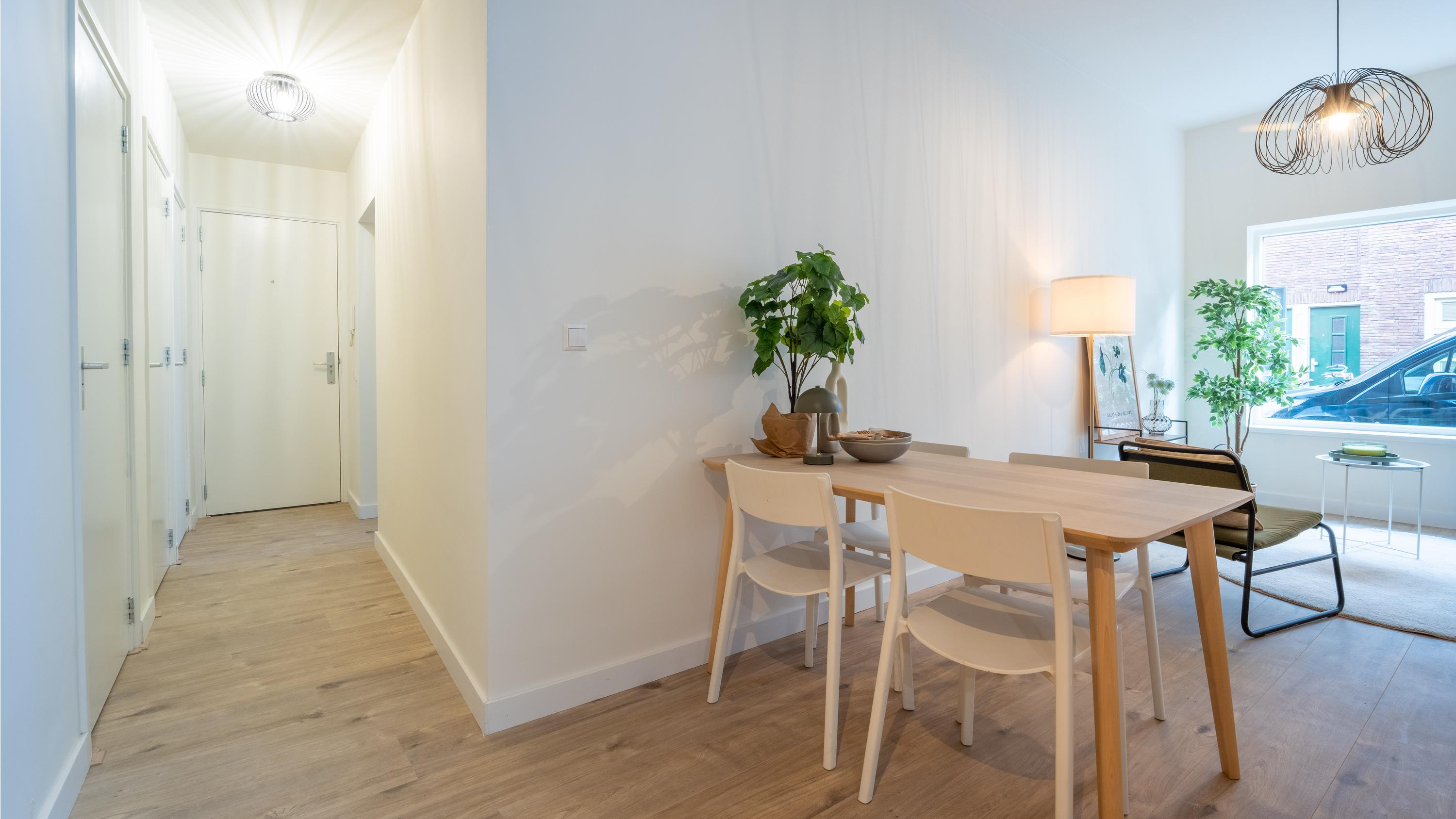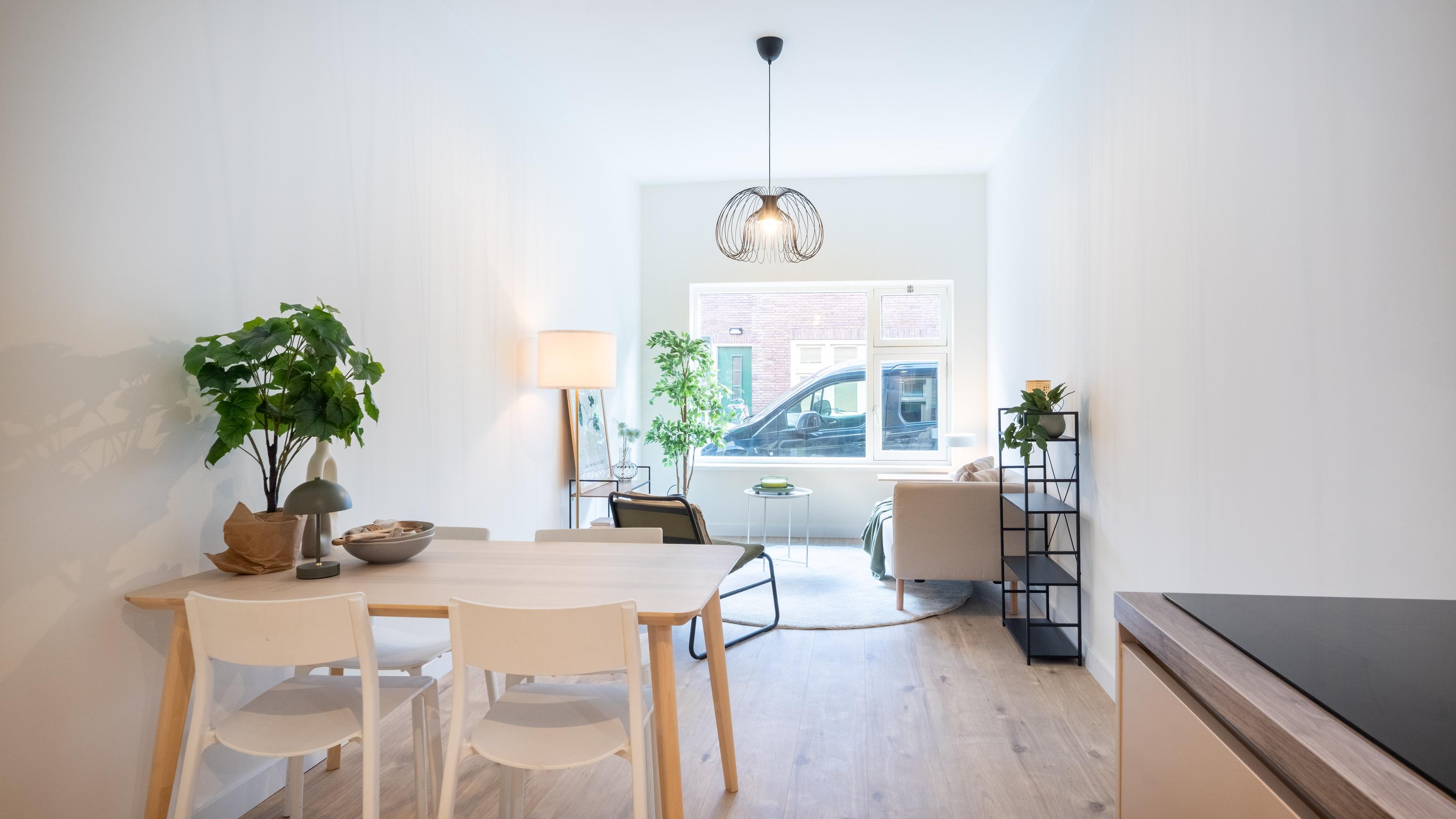 Dit volledig gerenoveerde en gemoderniseerde 2-kamer appartement op de begane grond biedt alles wat je nodig hebt voor een zorgeloos en modern leven. In 2026 is dit appartement helemaal vernieuwd en voorzien van de nieuwste gemakken. Met luchtverwarming, airconditioning en een strakke, moderne keuken compleet met inductiekookplaat, afzuigkap, koelkast met vriesvak en vaatwasser is het de ideale plek om na een drukke dag heerlijk thuis te komen. De lichte, neutrale laminaatvloer zorgt voor een frisse uitstraling en past perfect bij elke woonstijl.