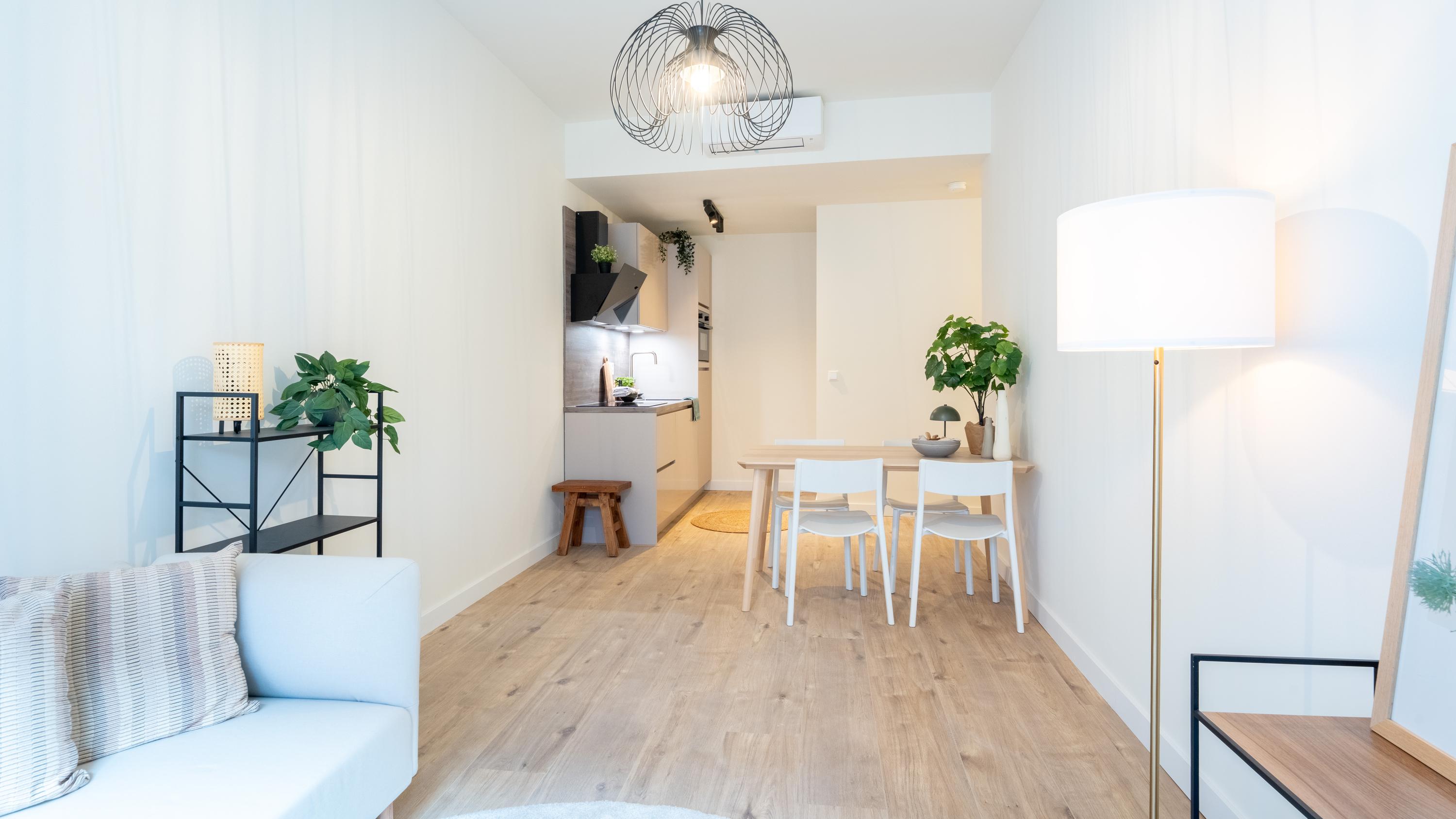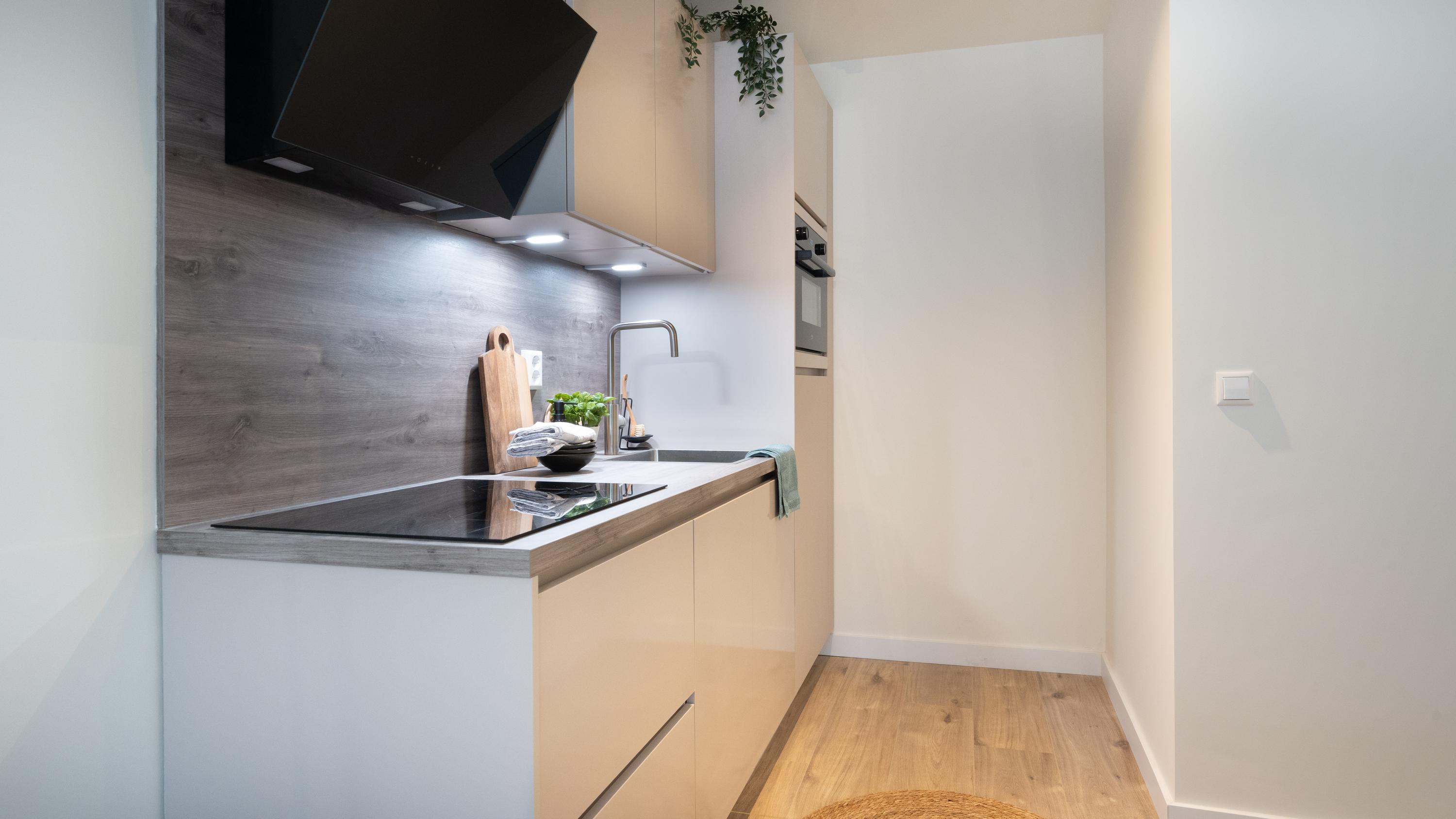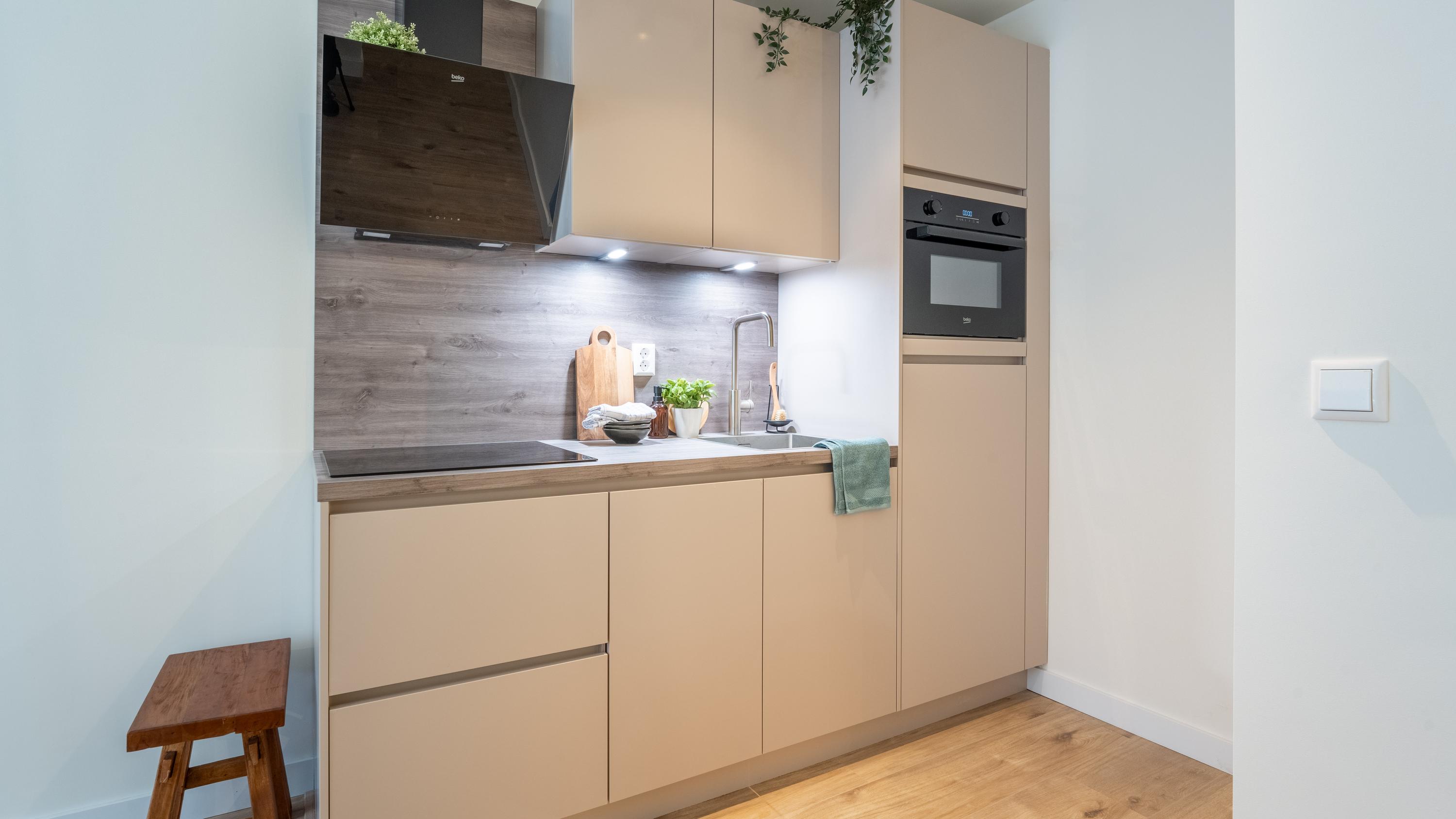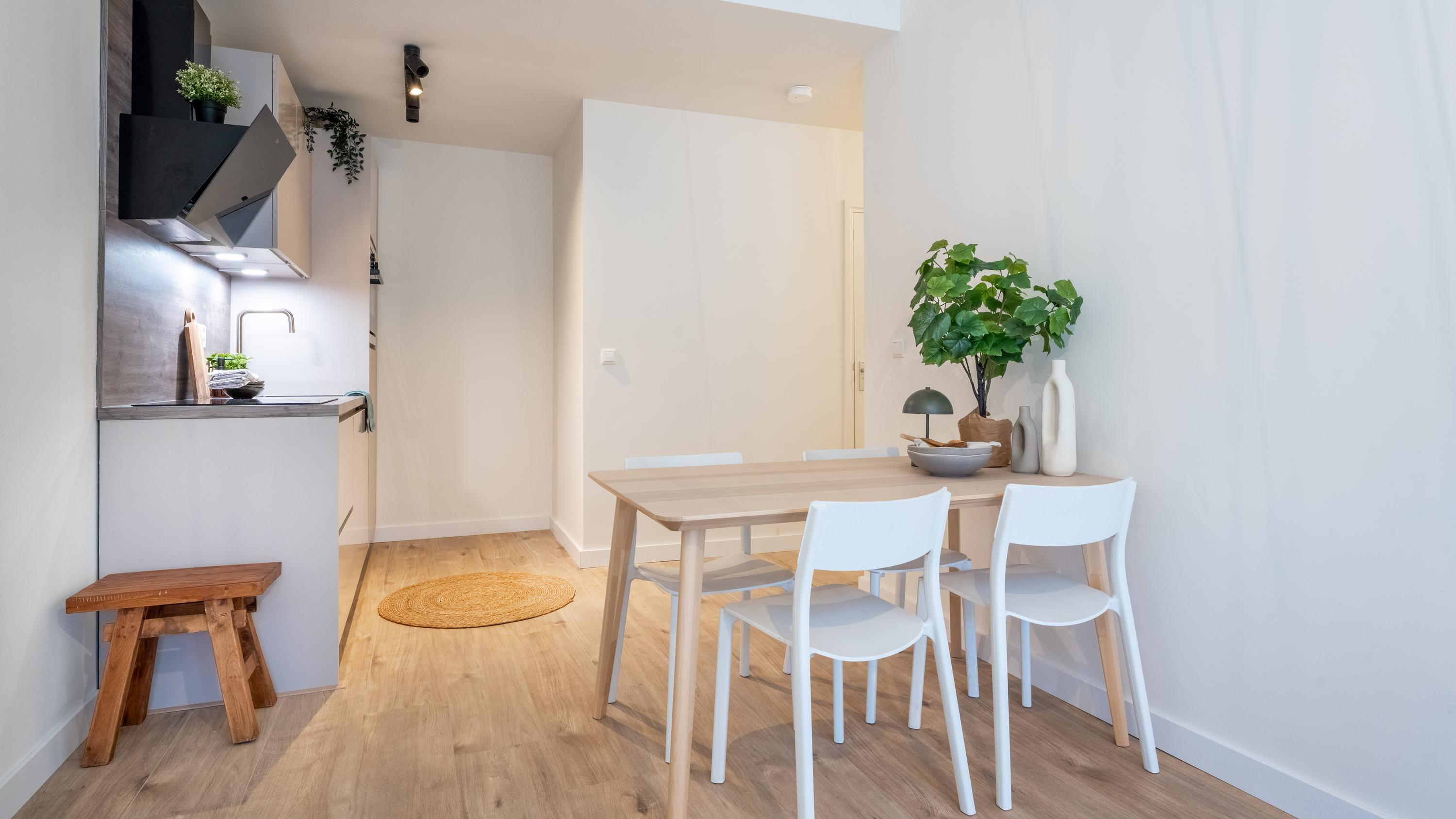 Dit volledig gerenoveerde en gemoderniseerde 2-kamer appartement op de begane grond biedt alles wat je nodig hebt voor een zorgeloos en modern leven. In 2026 is dit appartement helemaal vernieuwd en voorzien van de nieuwste gemakken. Met luchtverwarming, airconditioning en een strakke, moderne keuken compleet met inductiekookplaat, afzuigkap, koelkast met vriesvak en vaatwasser is het de ideale plek om na een drukke dag heerlijk thuis te komen. De lichte, neutrale laminaatvloer zorgt voor een frisse uitstraling en past perfect bij elke woonstijl.