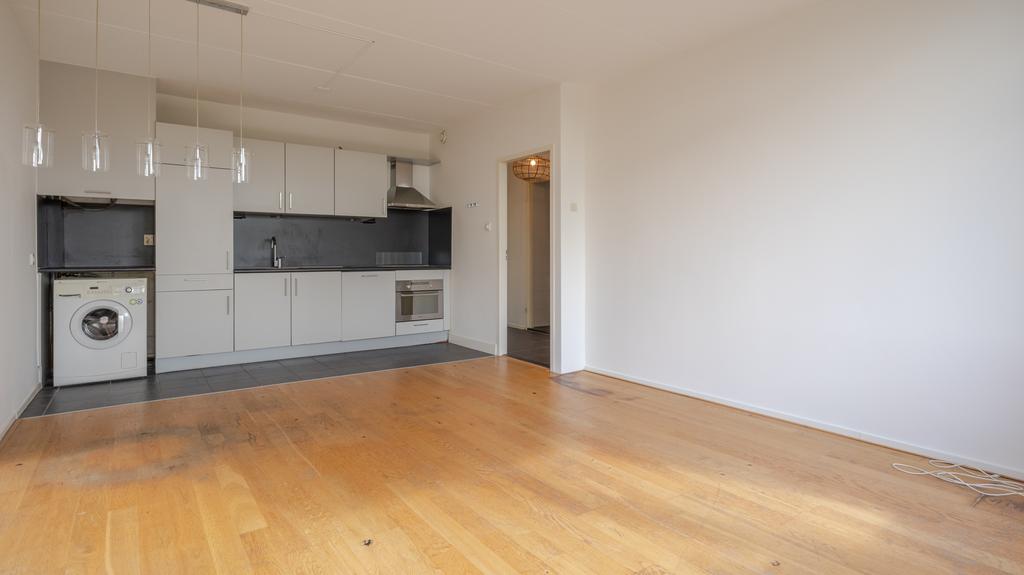 Op de derde verdieping van dit centraal gelegen en goed onderhouden appartementencomplex is deze nette twee kamer woning beschikbaar. Vanuit de centrale hal is de etage middels trap en lift bereikbaar. De entree komt uit in een gang waarvandaan de lichte en ruime woonkamer te bereiken is. De woonkamer is voorzien van een neutrale houten parketvloer en geeft toegang tot het ruime balkon, gelegen op het Zuiden. De open keuken is modern, luxe en voorziet in een elektrische kookplaat met circulatie zuigkap, oven, inbouwkoelkast, vaatwasser en inbouw koel- vriescombinatie alsmede een wasmachine aansluiting. De slaapkamer is rustig gelegen, bereikbaar vanuit de hal en heeft prettig zicht op de groene omgeving achter het pand. De badkamer is met toilet, een wastafel en een inloopdouche. Tevens beschikt de woning over voldoende bergruimte door de privé berging op de begane grond, een parkeerplaats welke alleen toegankelijk is voor bewoners en een gemeenschappelijke tuin aan de Rijn. De woning is gunstig gelegen ten opzichte van het centrum, horecagelegenheden en het centraal station (5 minuten afstand). Uitvalswegen zoals de A4, N11 en A44 zijn tevens op korte afstand gelegen.