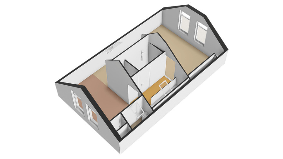 De slaapkamer ligt aan de achterzijde van de woning en beschikt over een praktische inbouwkast met wasmachine-aansluiting.