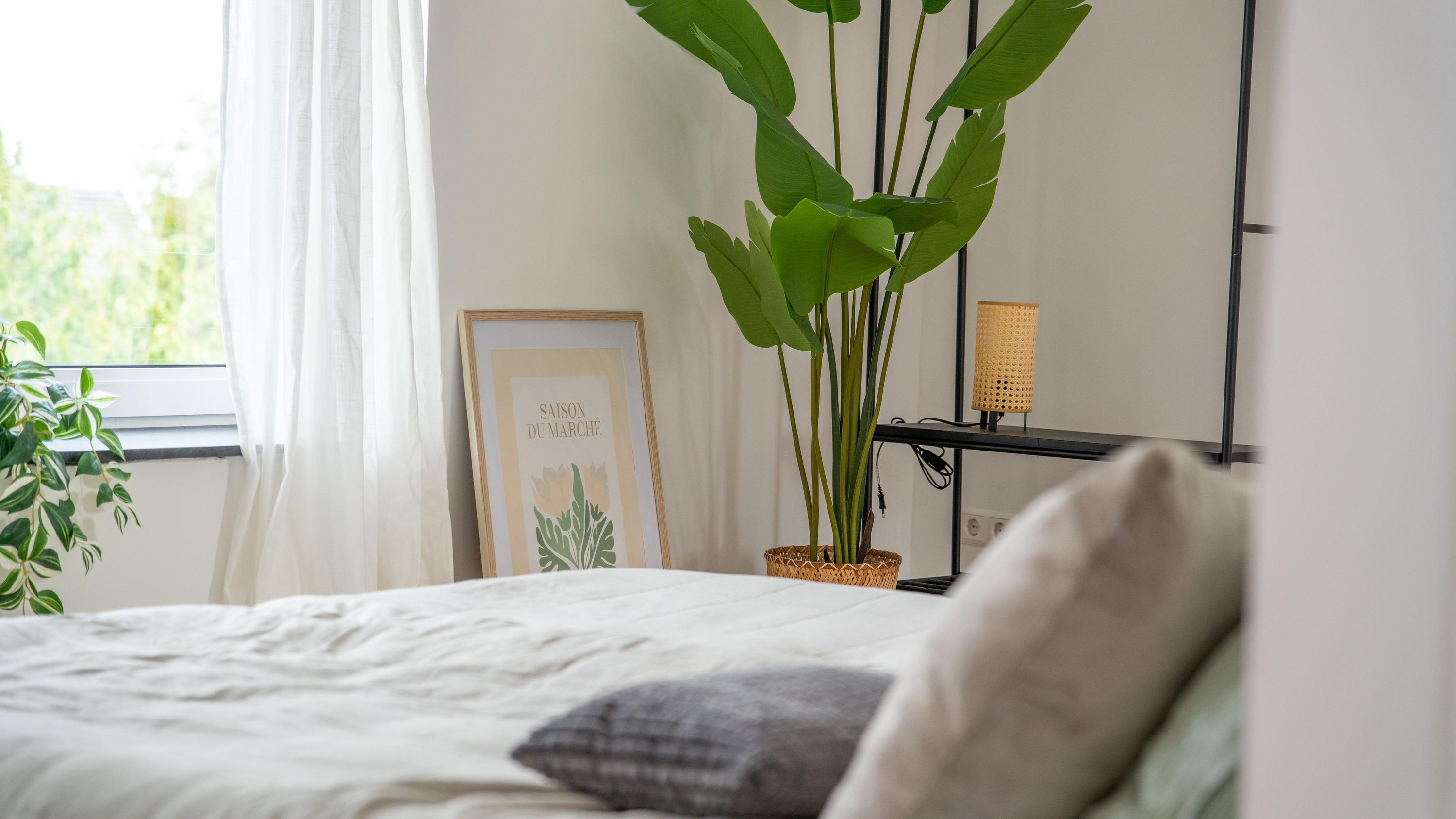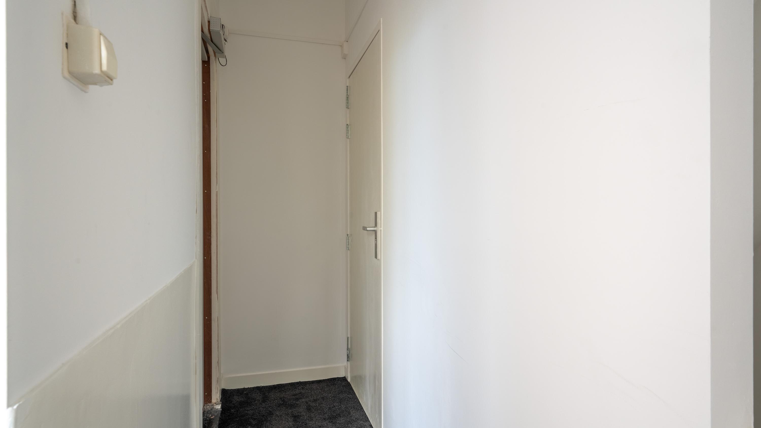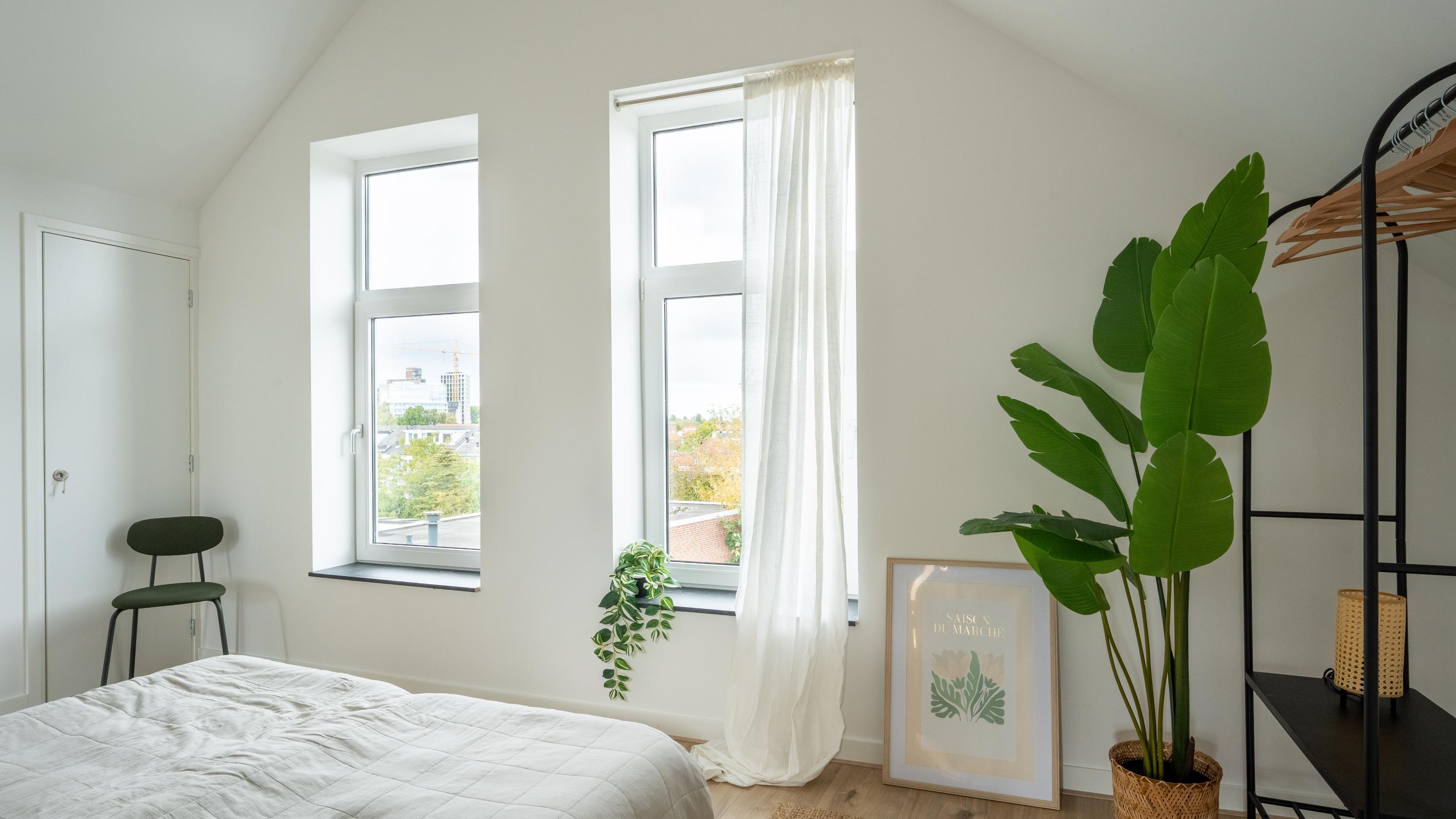 De slaapkamer ligt aan de achterzijde van de woning en beschikt over een praktische inbouwkast met wasmachine-aansluiting.
