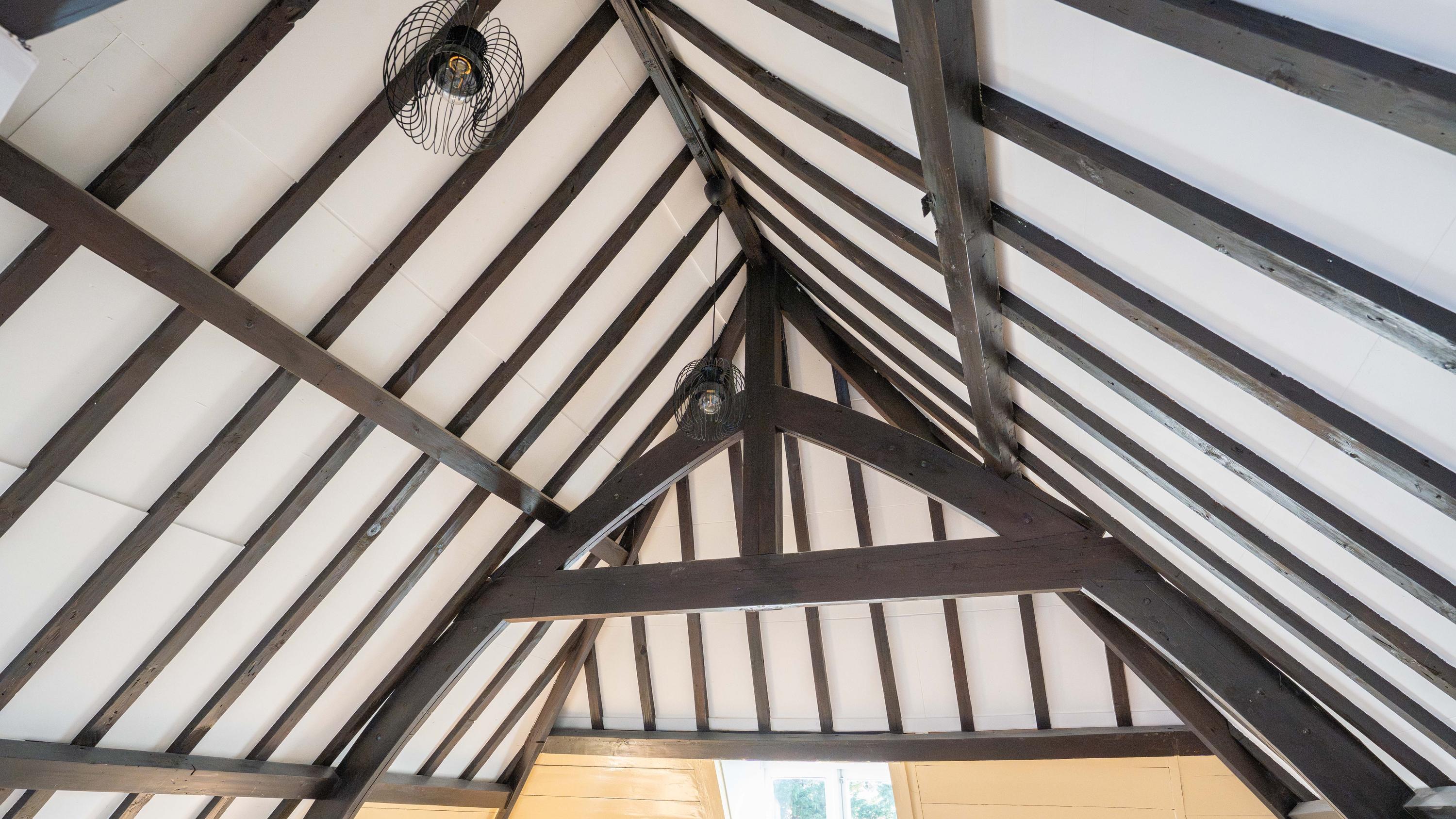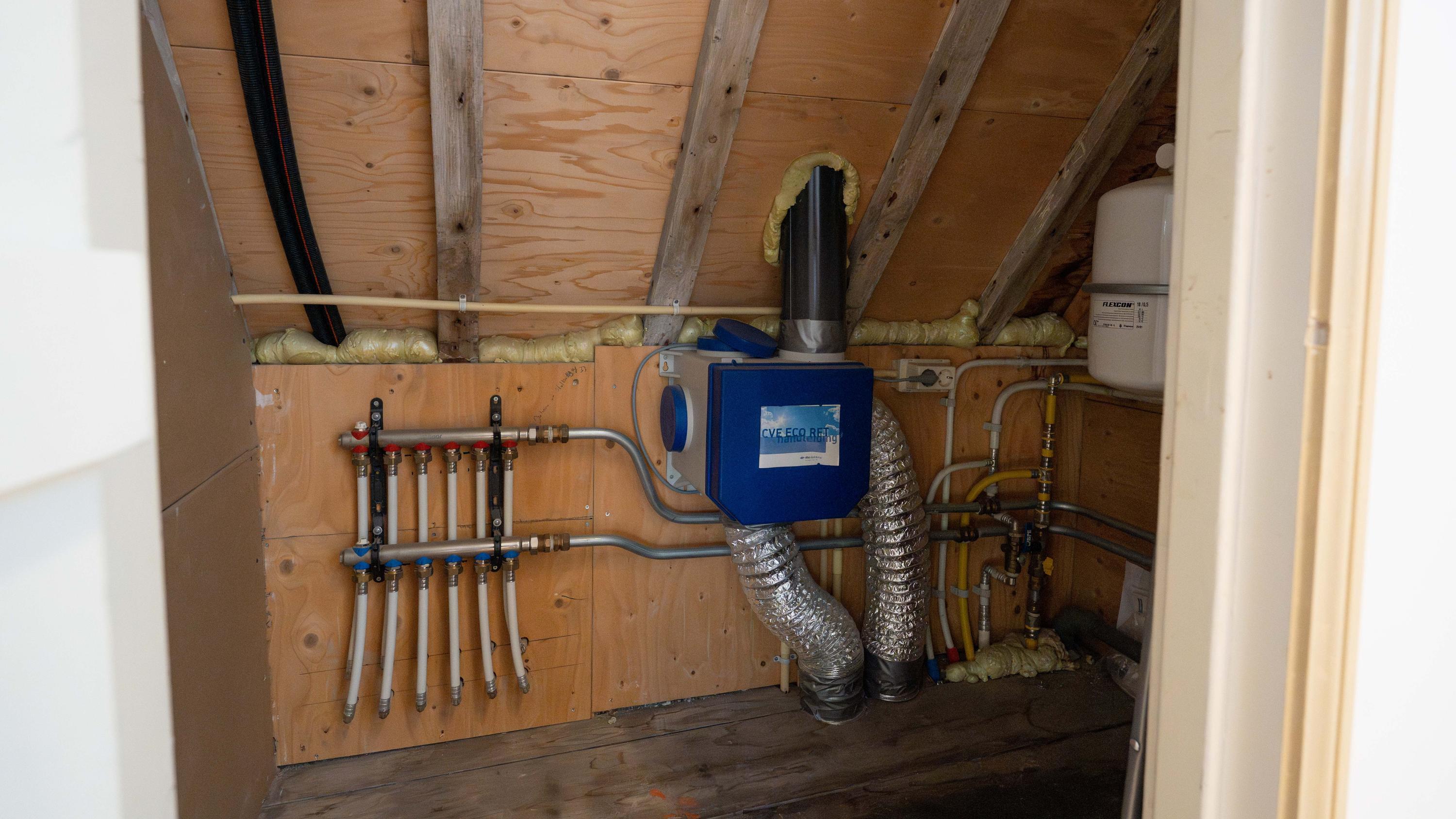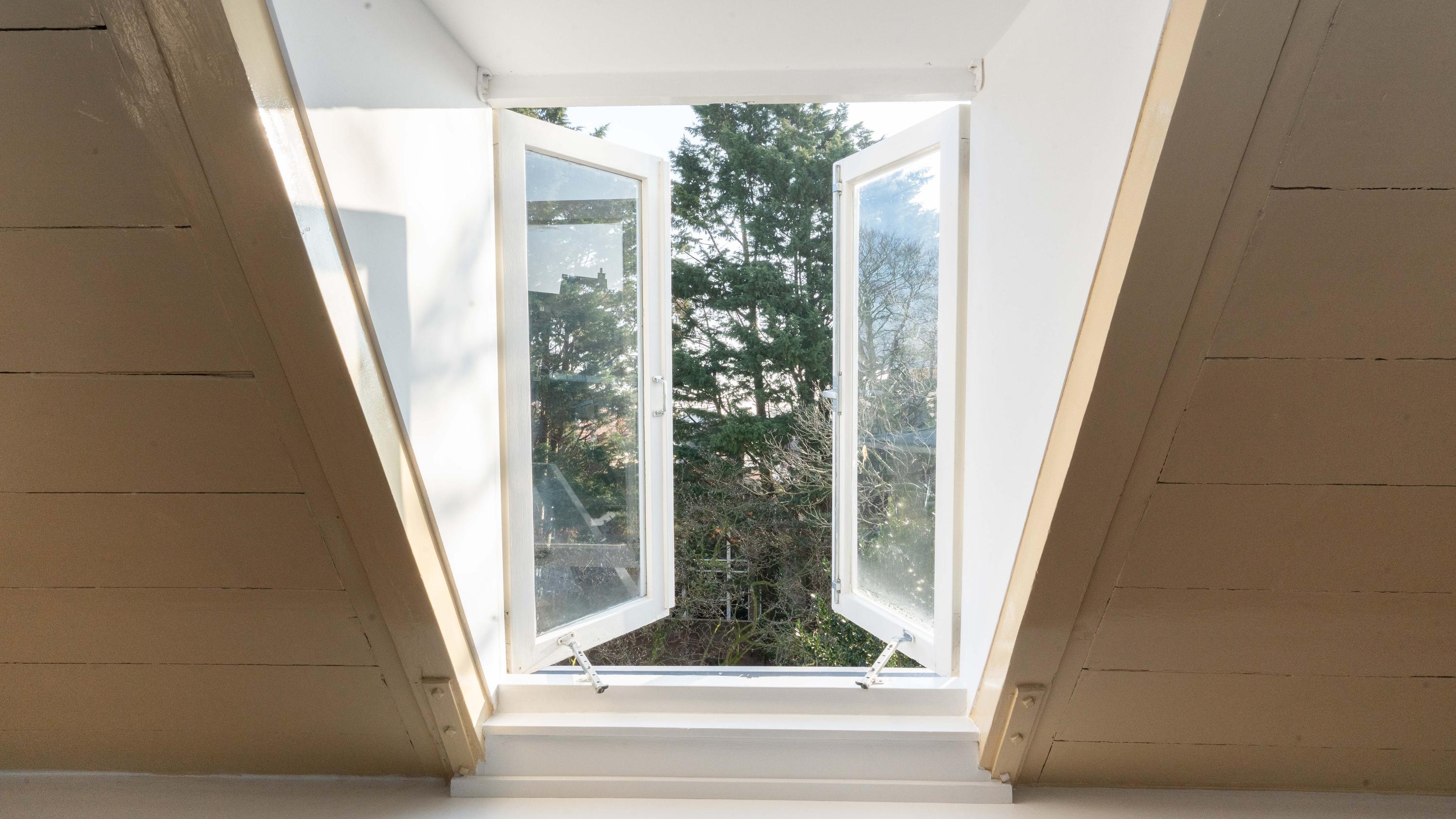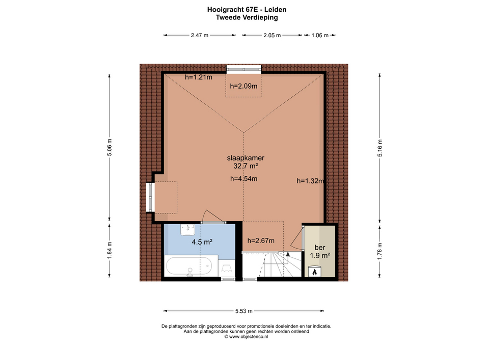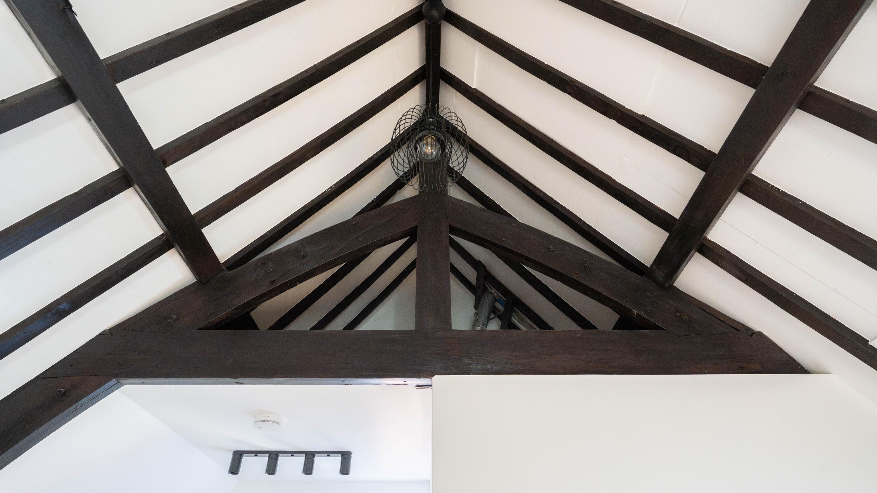 De tweede etage is geheel ingericht als een royale slaapkamer, waar de prachtige schilddak kapconstructie in het zicht blijft. Dankzij de uitzonderlijke grootte van deze ruimte is er de mogelijkheid om meerdere kamers te creëren, ideaal voor wie flexibiliteit zoekt. Extra opbergruimte is te vinden op de zolder en in de technische ruimte.