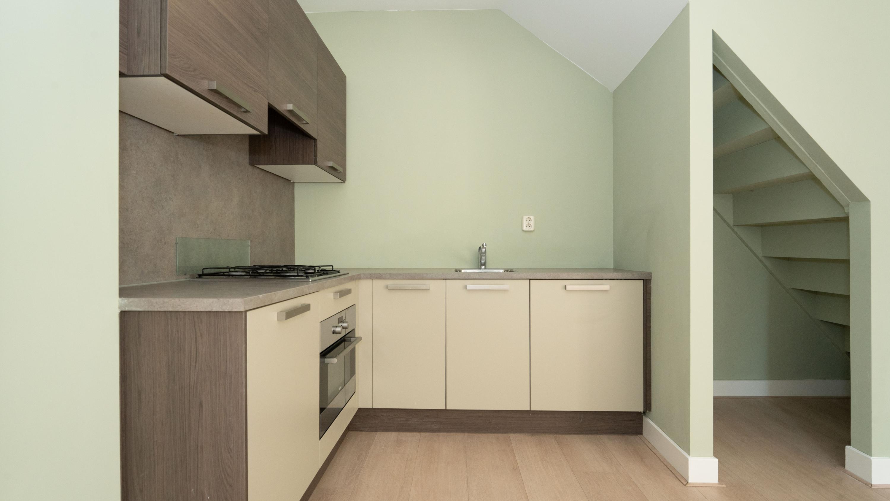 De entreehal verwelkomt je met direct toegang tot de woonkamer, waar drie grote vakramen voor een overvloed aan natuurlijk licht zorgen. De sfeervolle schouw en ingebouwde wandkasten geven de ruimte karakter, terwijl de moderne open keuken met hoogwaardige inbouwapparatuur het geheel afmaakt. Het aparte toilet bevindt zich eveneens op deze verdieping.