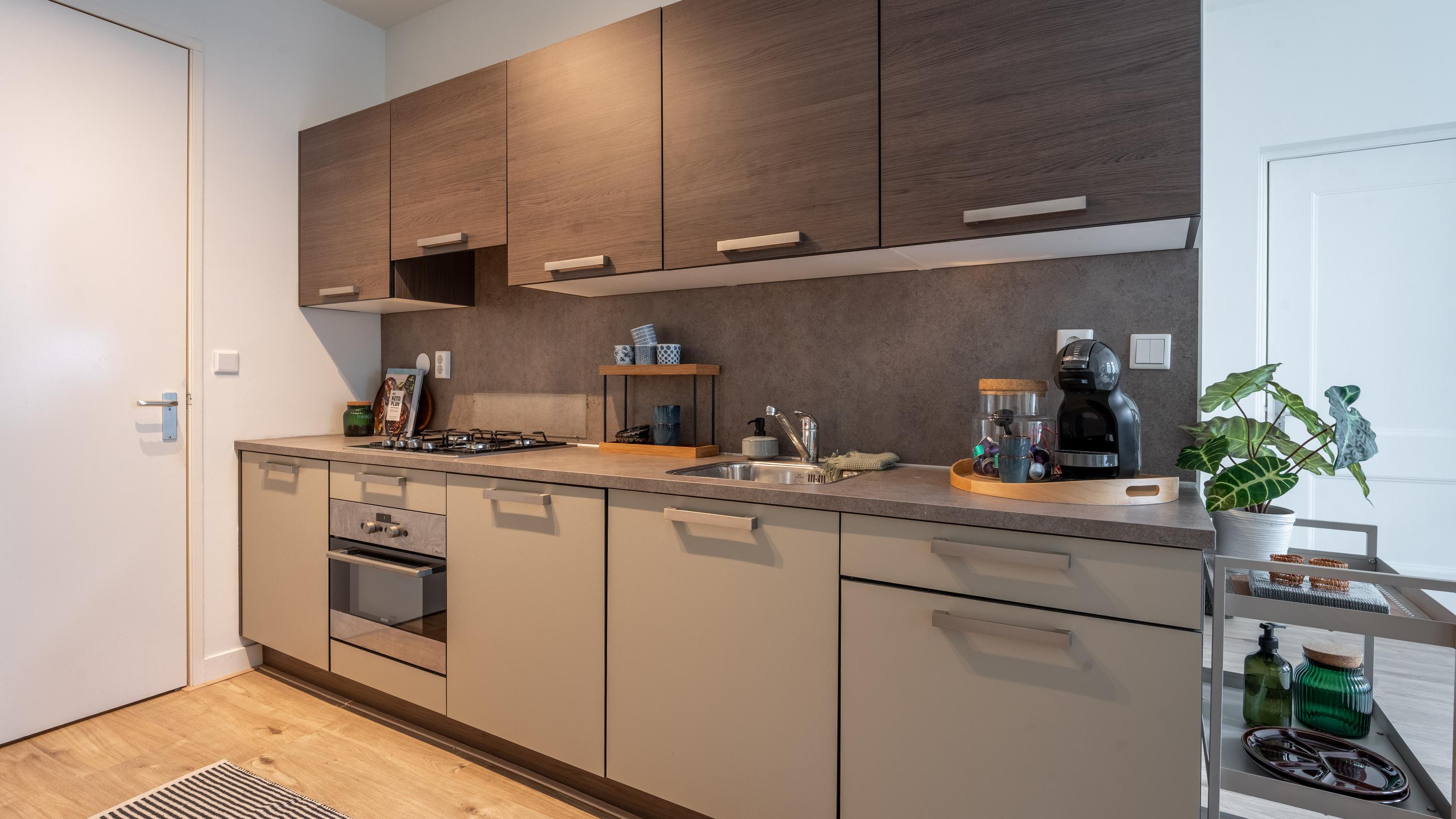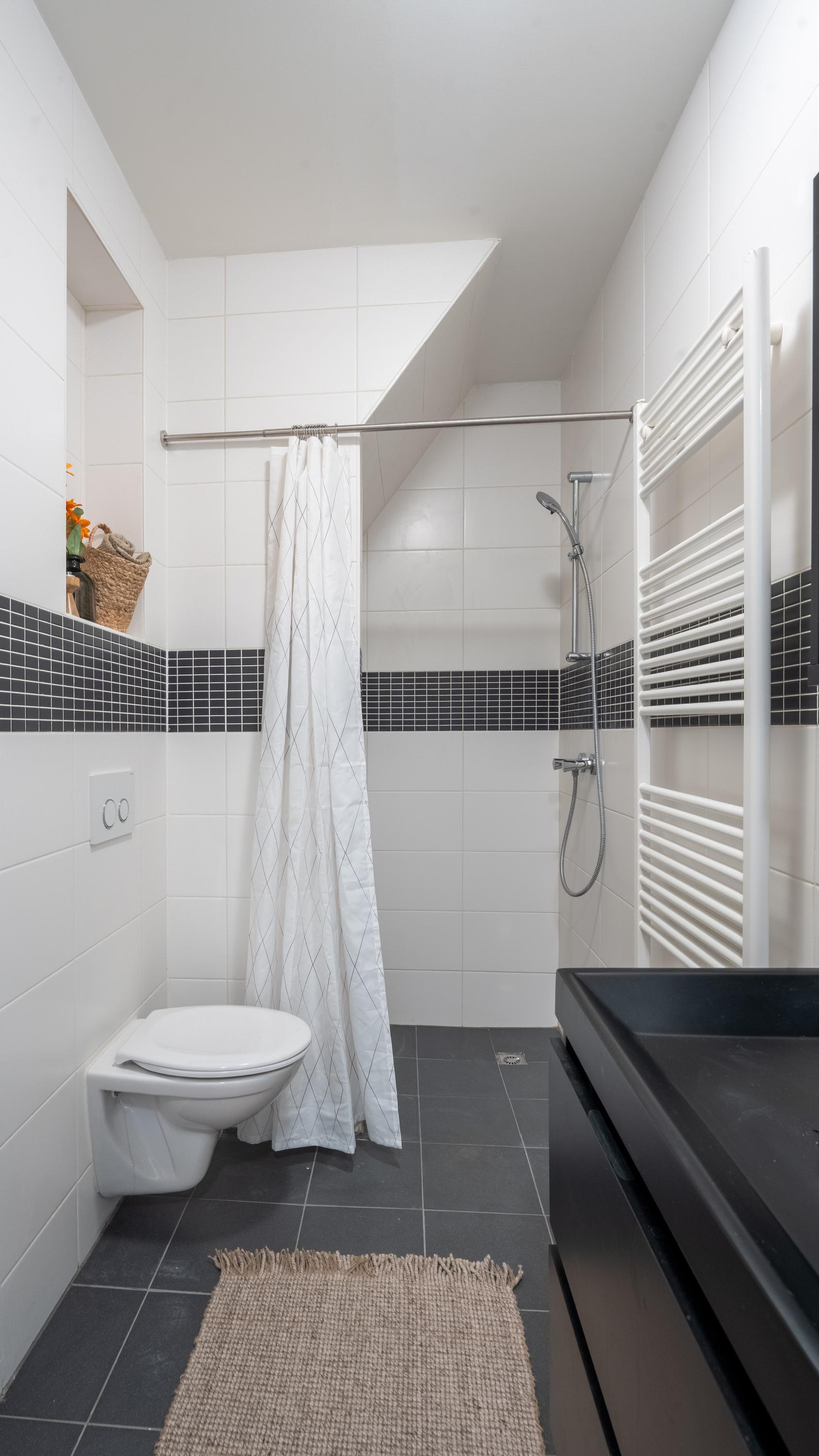 De moderne keuken is uitgerust met hoogwaardige inbouwapparatuur, waaronder een koelkast, vaatwasser en oven, ideaal voor culinaire liefhebbers. De badkamer beschikt over een douche, toilet, wastafel en in de hal met technische opstelling is er een aansluiting voor de wasmachine.