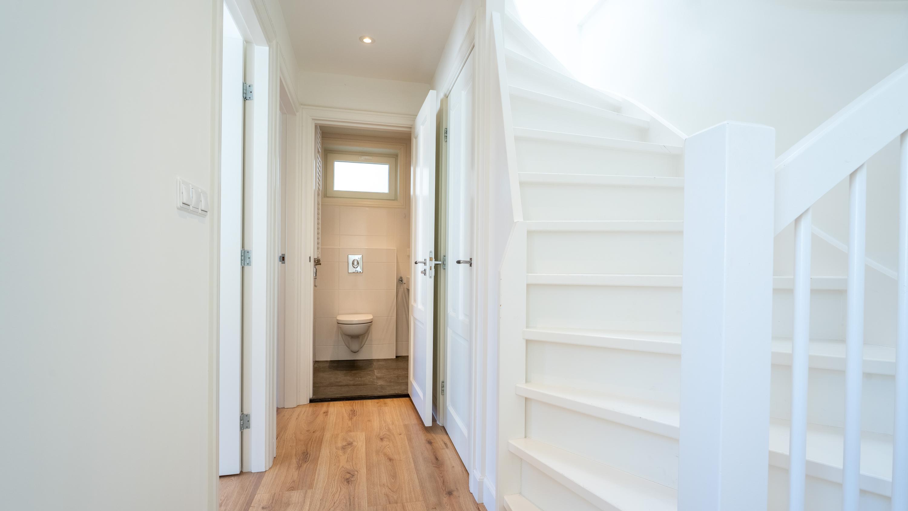 Via de eerste verdieping – je entree – betreed je de rustige slaapverdieping met twee comfortabele slaapkamers en strakke badkamer. De vaste, op maat gemaakte garderobekast in de hal en een praktische trapkast zorgen hier voor slimme, ingetogen luxe.
