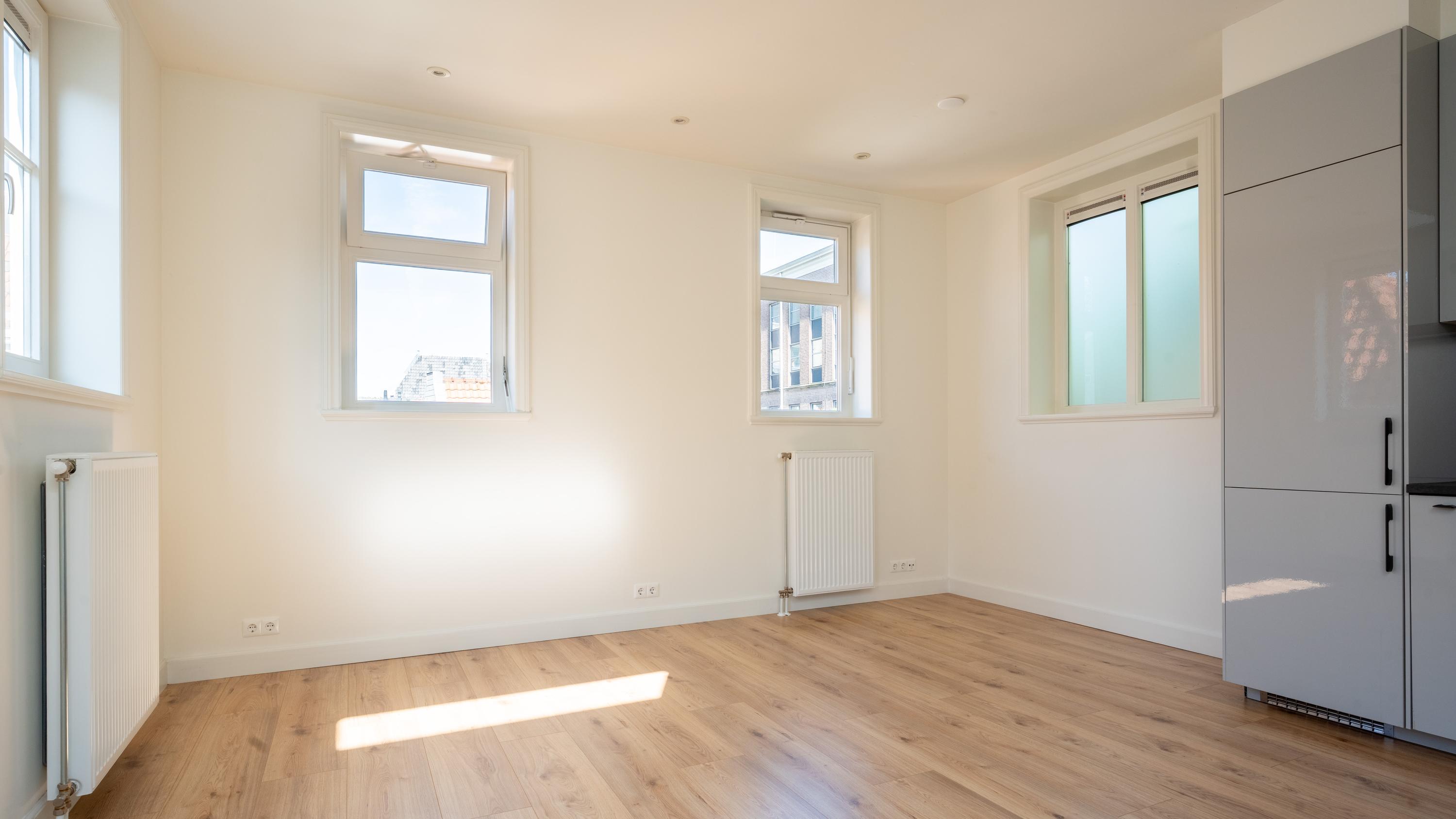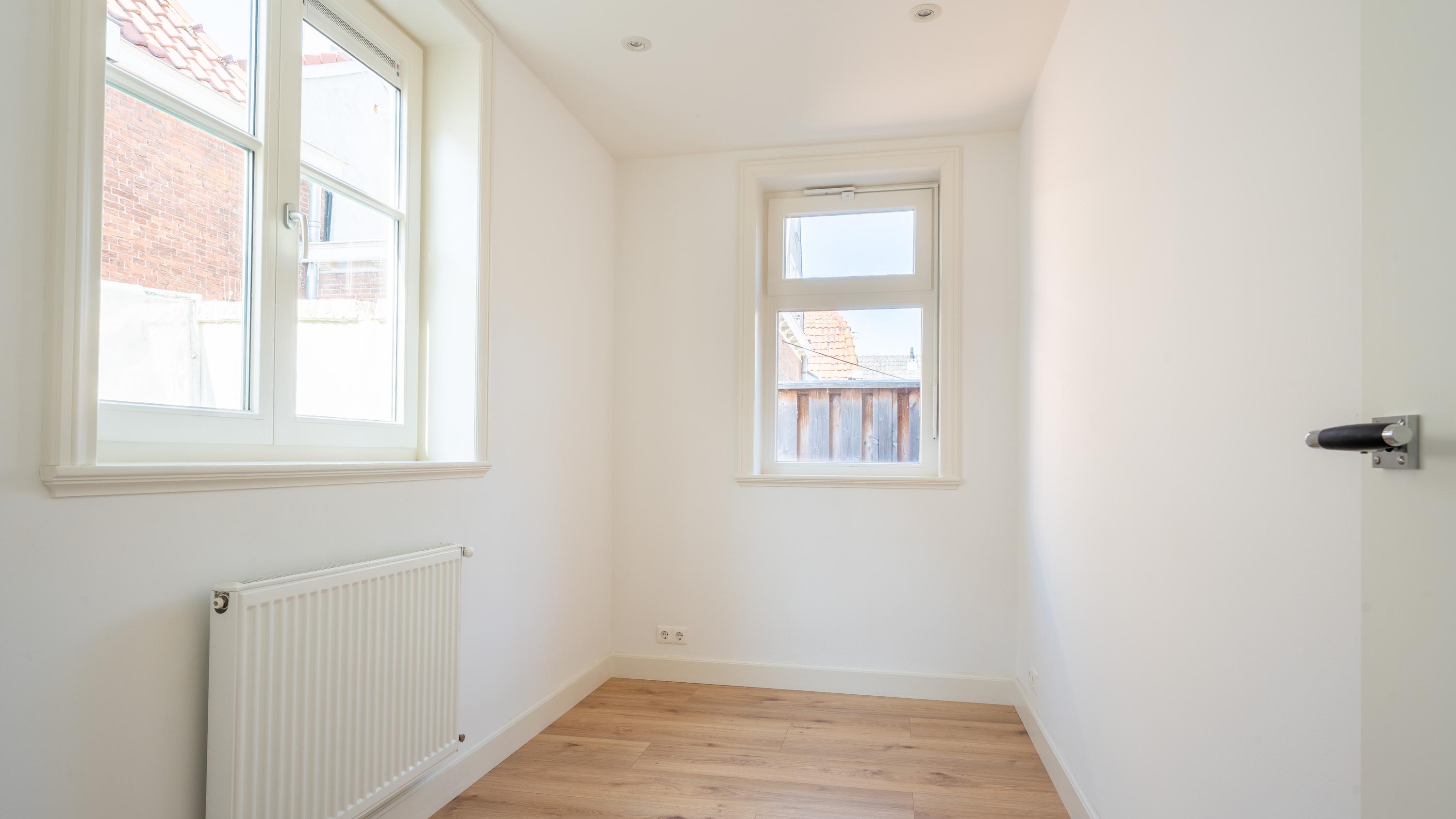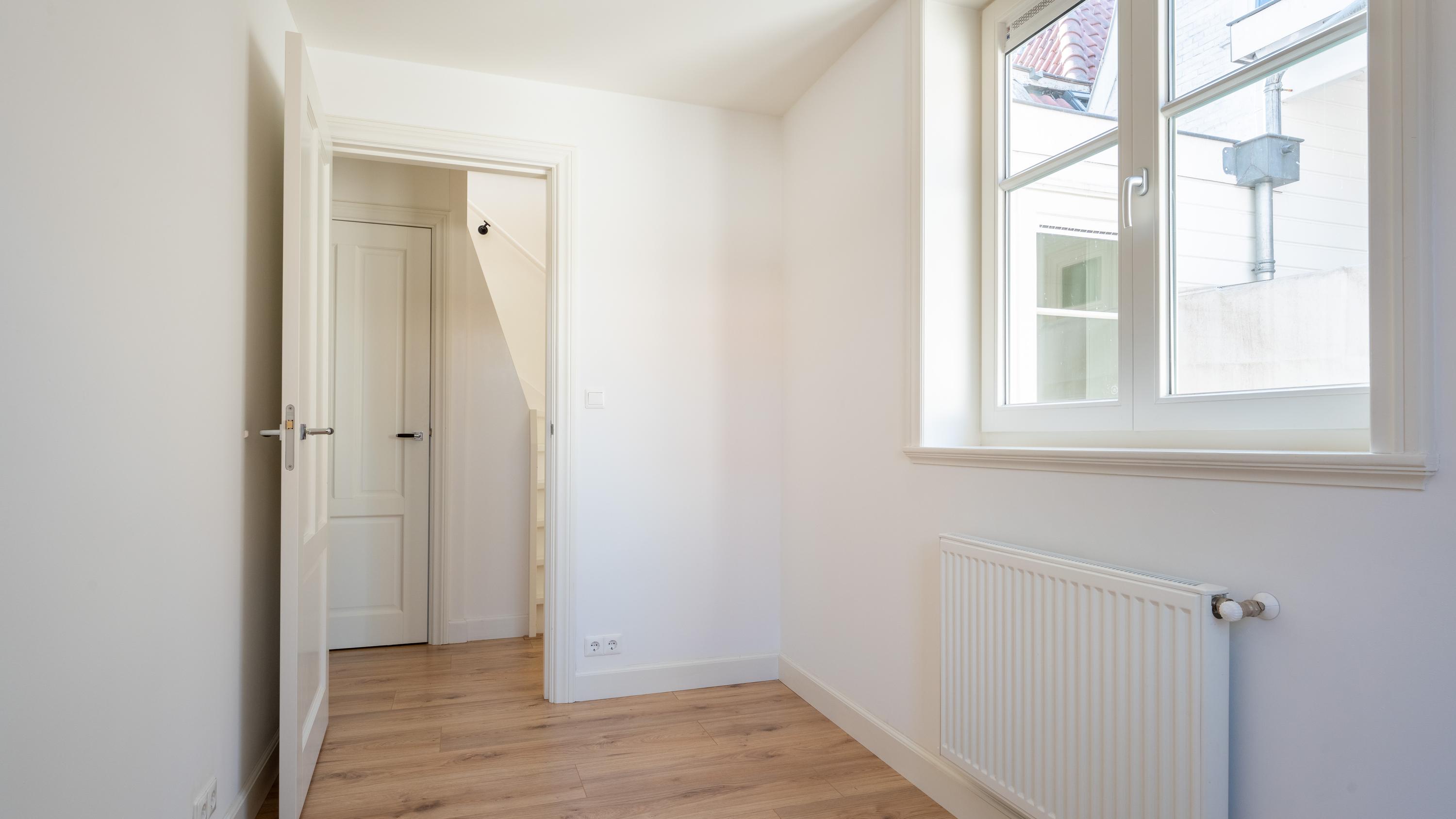 Verborgen achter de sfeervolle straatjes van de historische Pieterskerkbuurt schuilt een woning die zich niet in één oogopslag prijsgeeft. Deze bijzondere maisonnette, gelegen in het achterhuis van een volledig gerenoveerd pand uit 2019, biedt rust, licht en stijl op een plek die je alleen kent als je hem hebt gevonden.