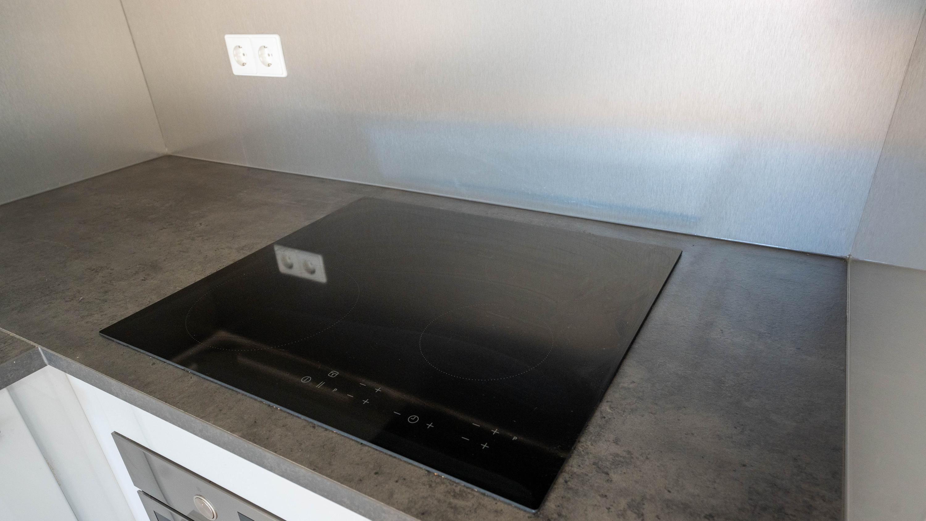 – Moderne hoekkeuken met vaatwasser, inductiekookplaat, oven, ingebouwde koelkast én wasmachine