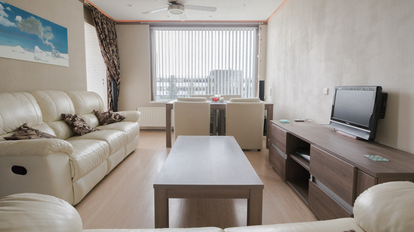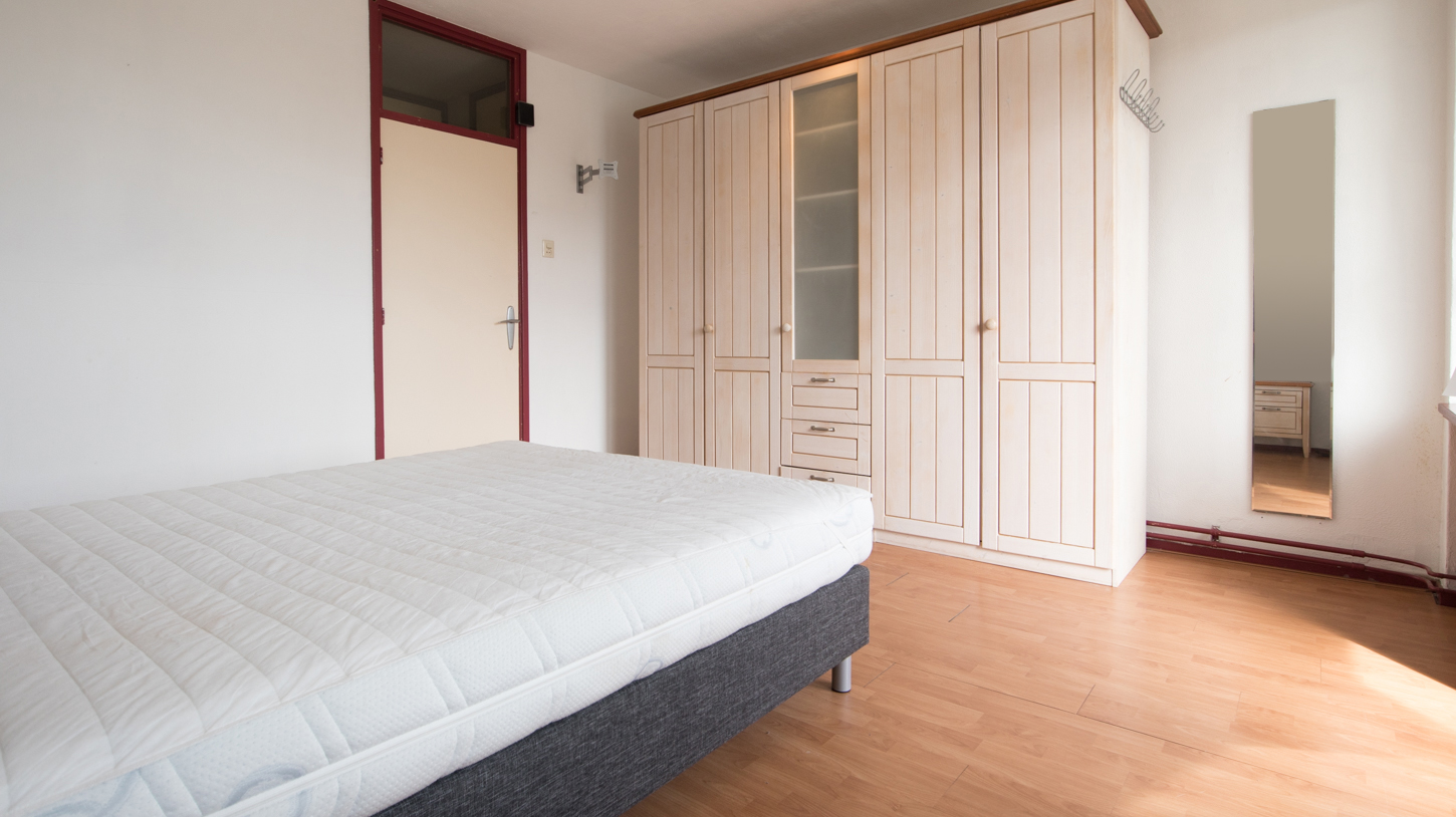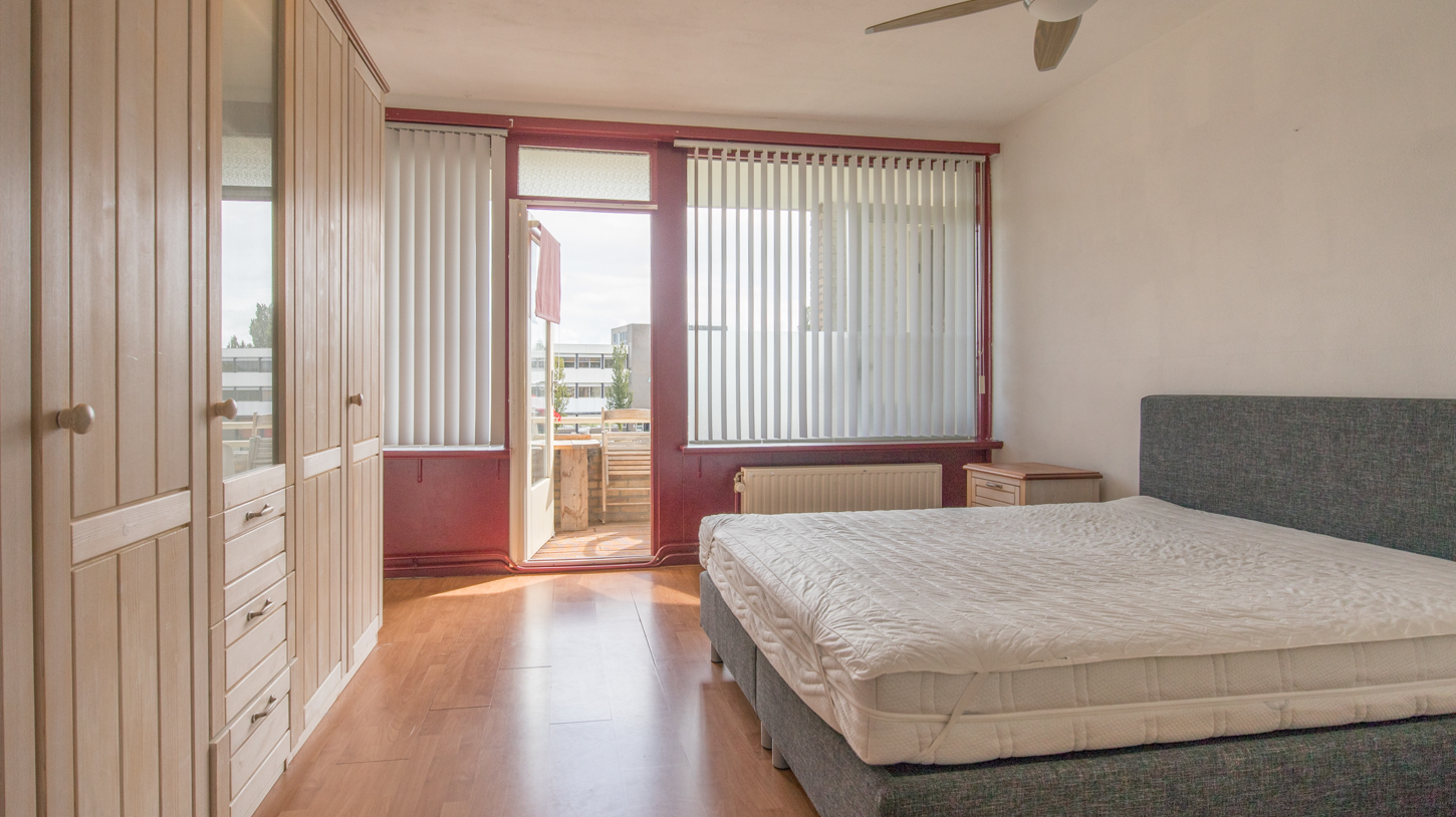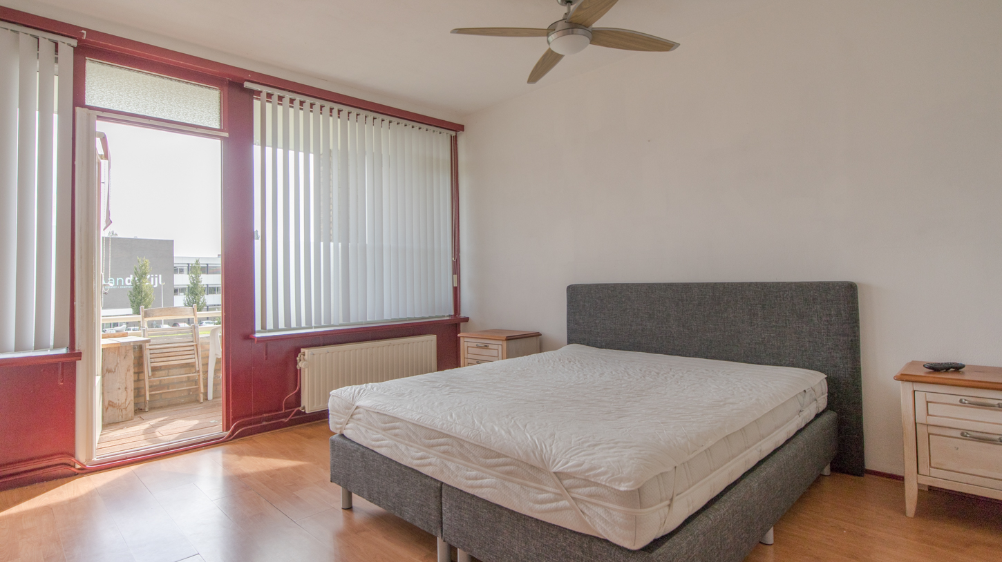 De hoofdslaapkamer is royaal en biedt direct toegang tot het balkon aan de Zijlzijde. De tweede slaapkamer is eveneens ruim opgezet, voorzien van meerdere ramen voor een prettige lichtinval – perfect als kinderkamer, werkkamer of logeerkamer.