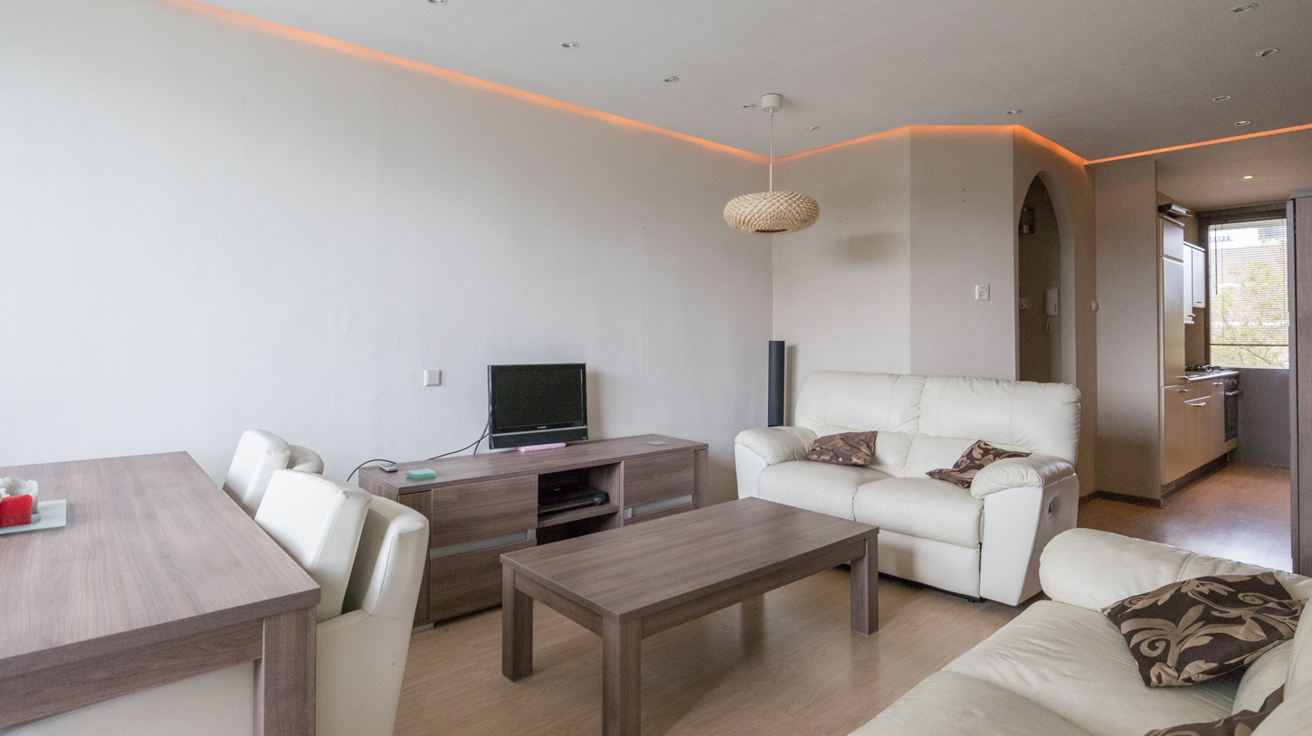 Bij binnenkomst valt direct de ruime en lichte woonkamer op, voorzien van een groot raam dat zorgt voor een overvloed aan natuurlijk daglicht. De open keuken sluit hier naadloos op aan en creëert een gezellige sfeer – ideaal voor wie houdt van koken en samenzijn.