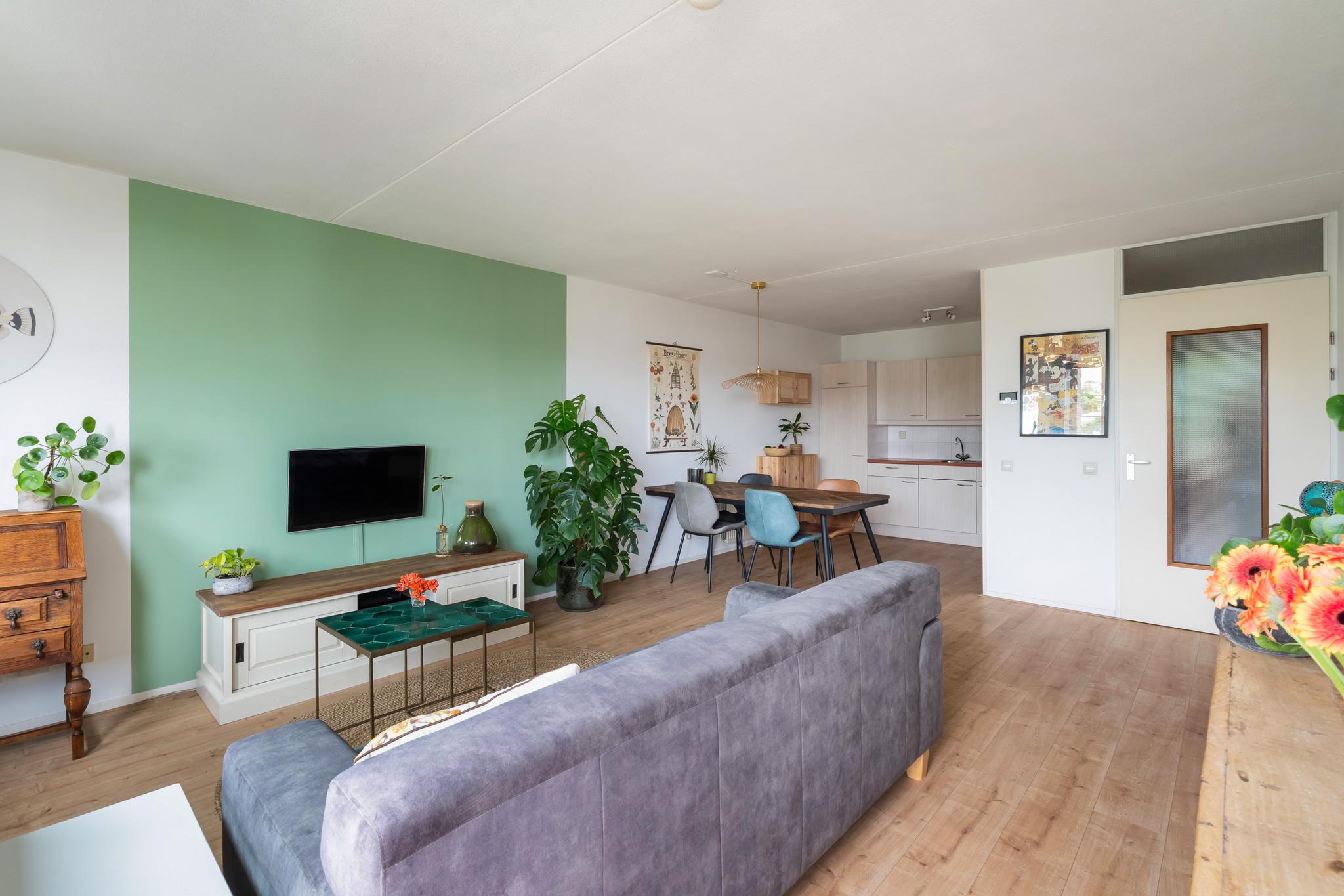 Het toilet is separaat. De woonkamer is helder en warm, met grote ramen en toegang tot een heerlijk balkon/terras op het zuidwesten, compleet met elektrisch zonnescherm. Hier is het de hele dag genieten, start met een goede kop koffie en sluit de dag af met een zonsondergang onder het genot van een drankje. Een groen sedumdak boven je hoofd en de mogelijkheid tot het plaatsen van eigen zonnepanelen maken dit appartement bovendien toekomstbestendig en energiezuinig.