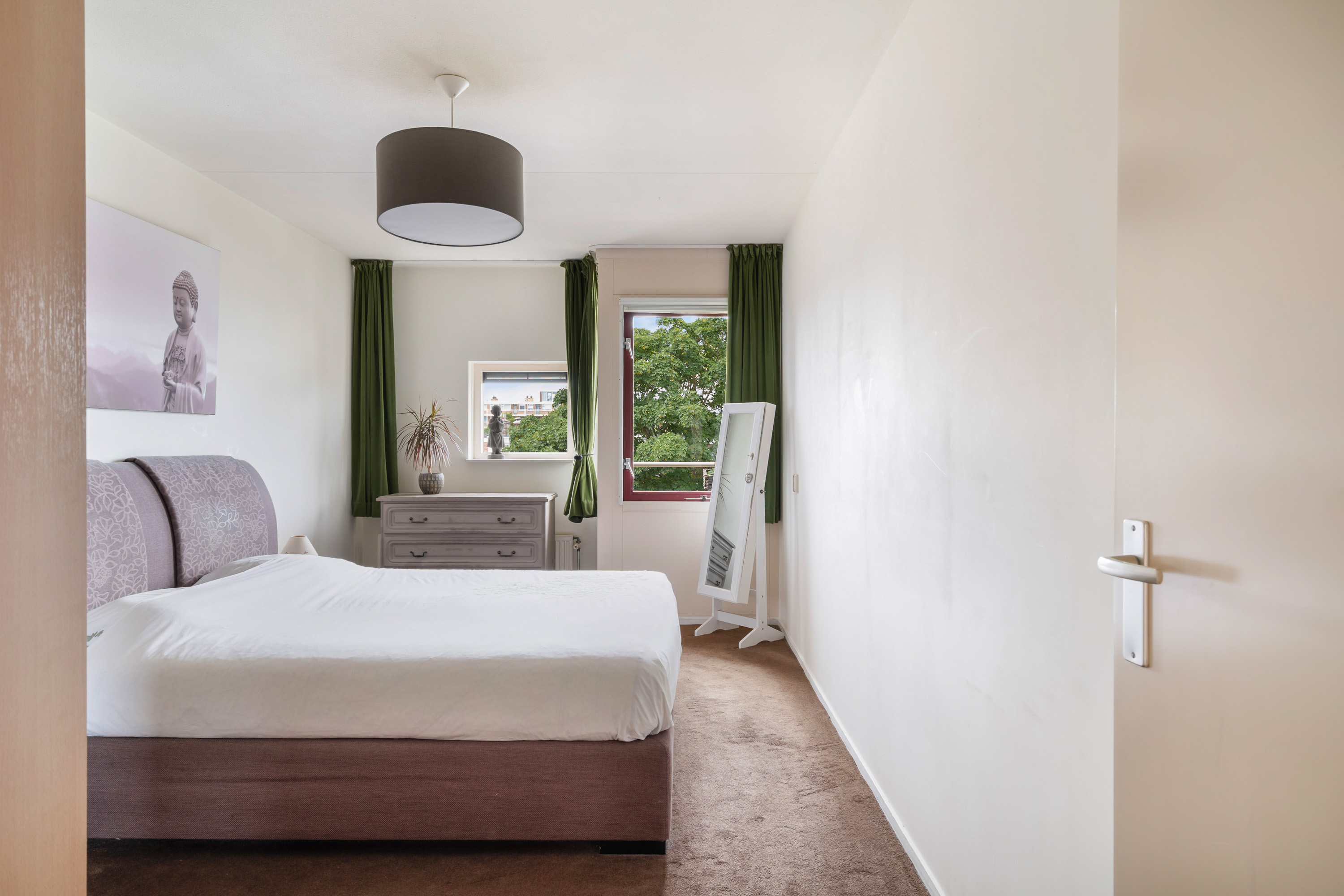 Hier woon je in alle rust, maar met de stad letterlijk om de hoek. Bij binnenkomst via het atrium voel je direct de serene sfeer van het gebouw; via trap of lift bereik je de derde verdieping waar dit fijne appartement zich ontvouwt – licht, overzichtelijk en met een verrassend gevoel van ruimte.