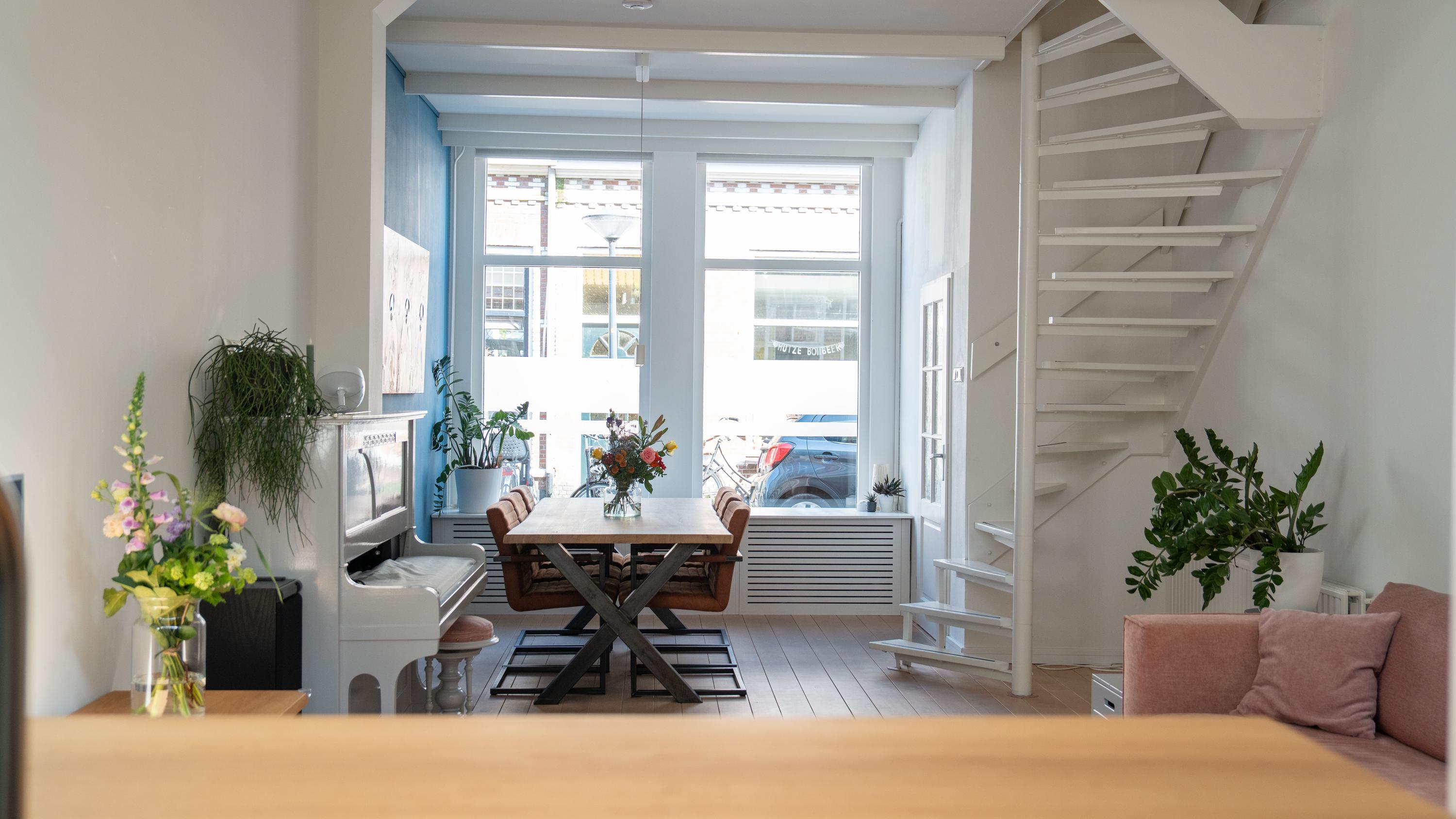 Wij maken veel gebruik van het centrum van Leiden. Binnen 15 minuten lopen of 5 minuten fietsen ben je in het centrum voor een kopje koffie, een lunch of een bezoek aan de markt. Je zit dicht op bruisend Leiden, maar tegelijkertijd vind je in de Rijndijkstraat rust en stilte. Slaap je met het raam open? Je wordt wakker met het geluid van de fluitende vogels in de groenstrook achter het huis.”