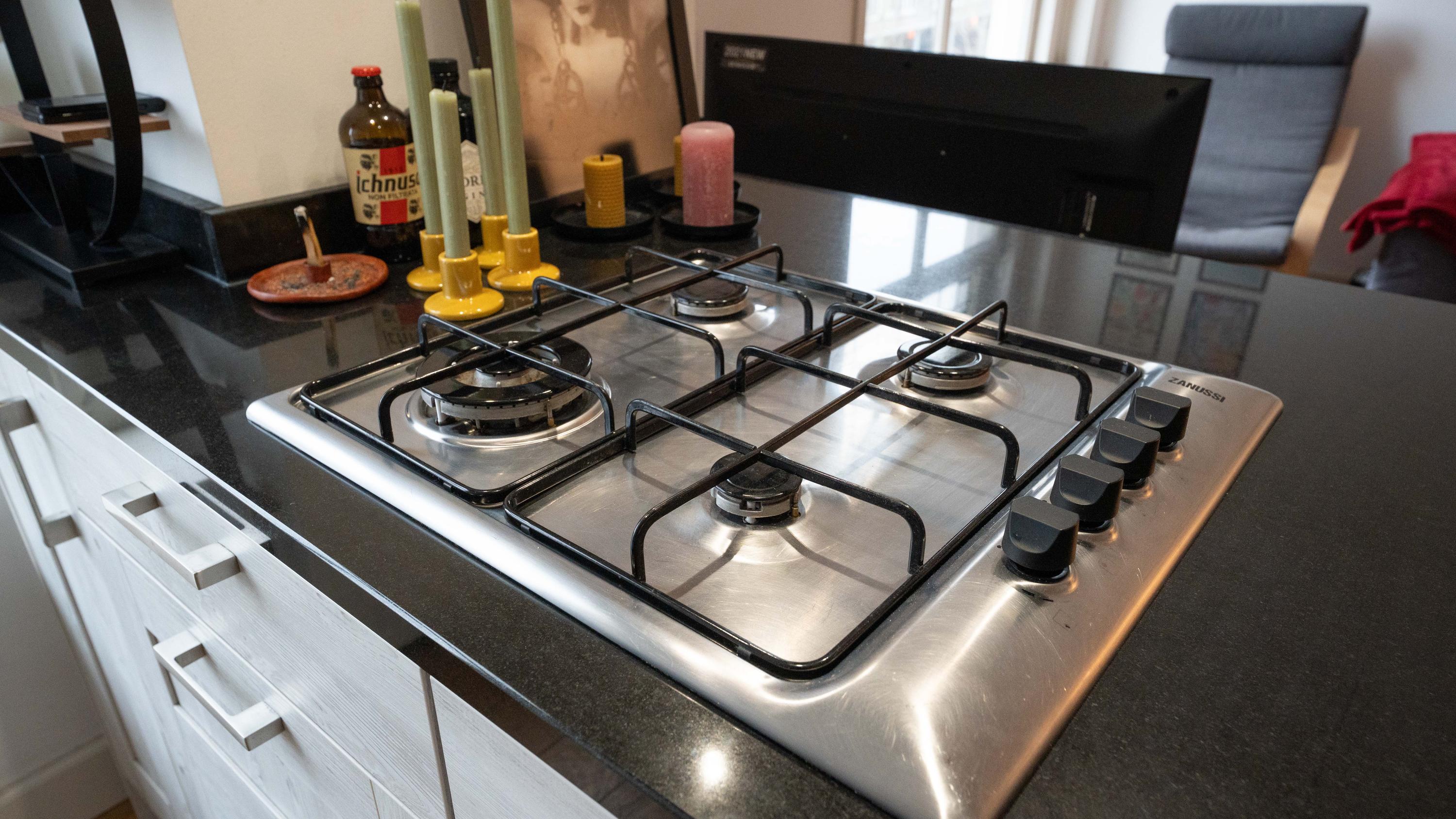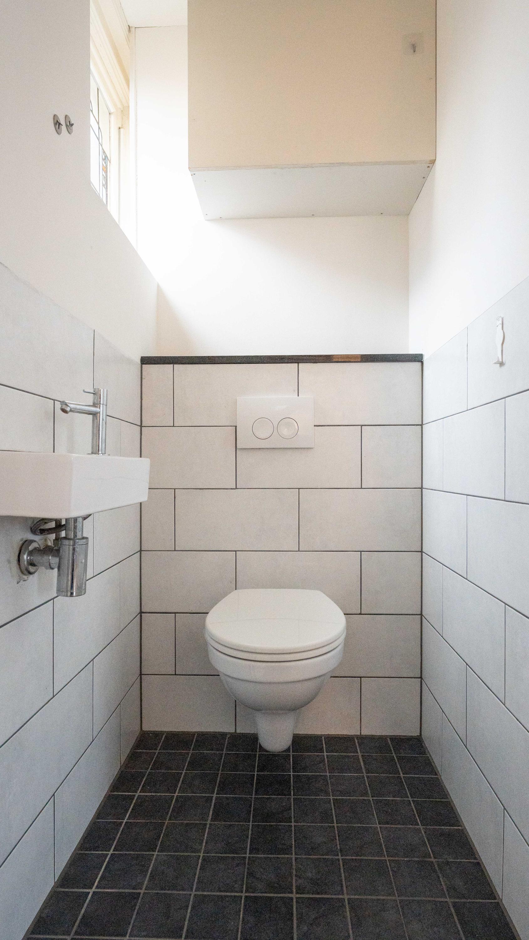 Via de gezamenlijke entree betreed je direct de gezellige woonkamer, waar hoge ramen zorgen voor een prachtige lichtinval. De open keuken is een echte eyecatcher: modern uitgevoerd met een kookeiland, strak werkblad en voorzien van alle benodigde inbouwapparatuur – ideaal voor wie van koken én gezelligheid houdt. Daarnaast bevindt zich op deze woonlaag een separaat toilet, stijlvol weggewerkt.