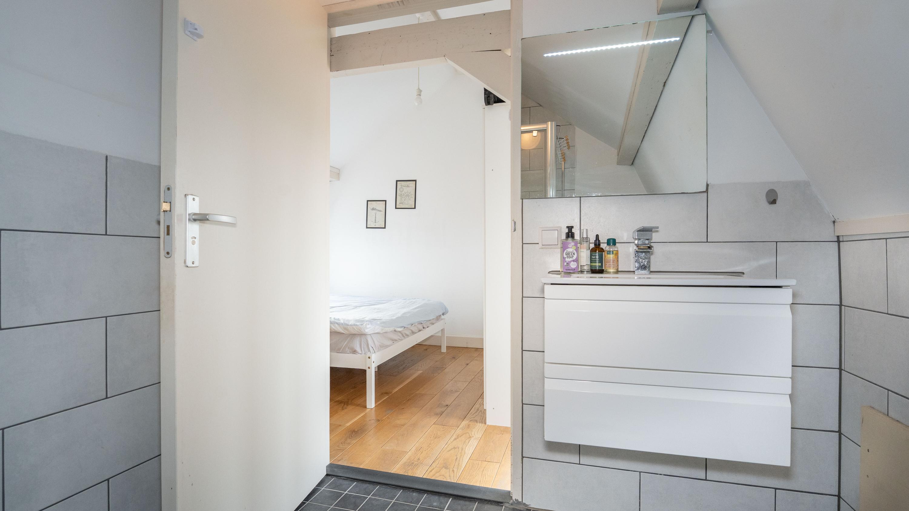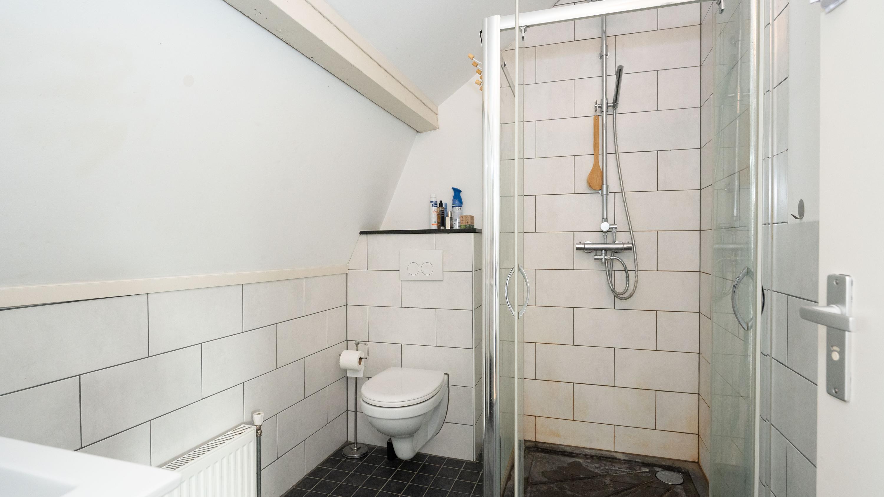 Op de bovenste etage biedt de ruime overloop tal van mogelijkheden: in te richten als comfortabele hoofdslaapkamer, of juist als rustige werk- of logeerkamer. Aangrenzend ligt een tweede kamer die je net zo flexibel kunt gebruiken. De moderne badkamer is slim ingedeeld en beschikt over een douche, wastafel met spiegel en een tweede toilet – praktisch én comfortabel.