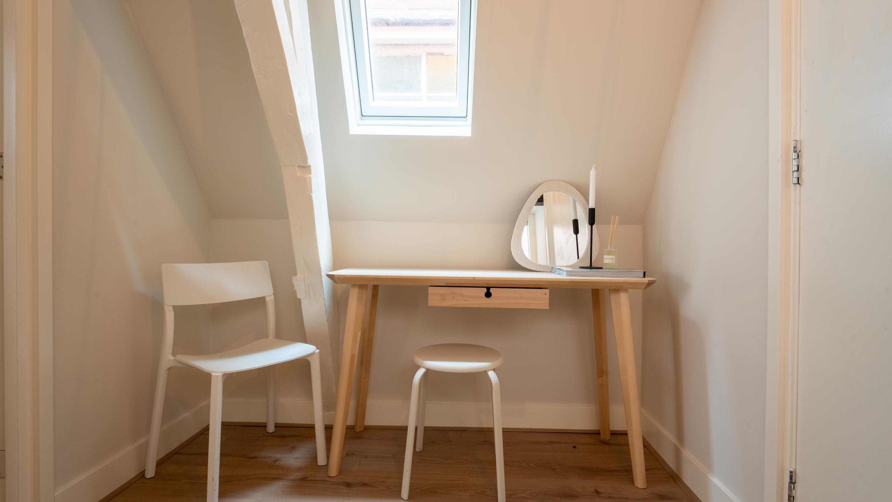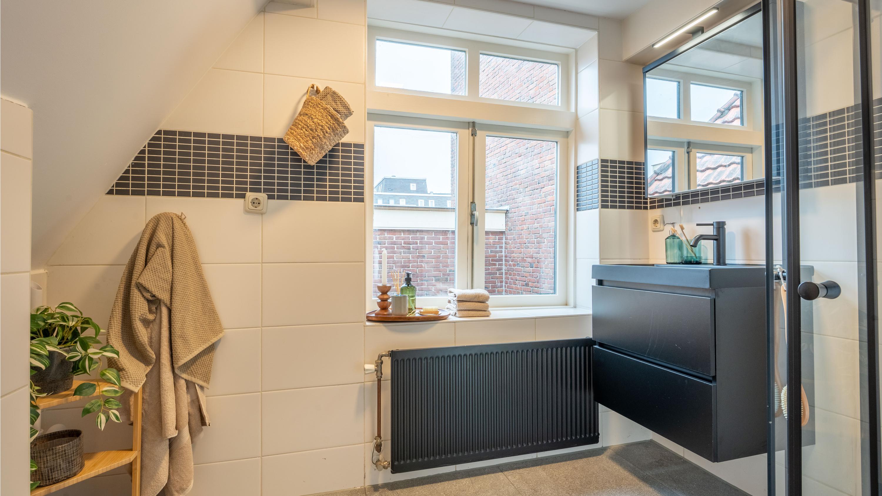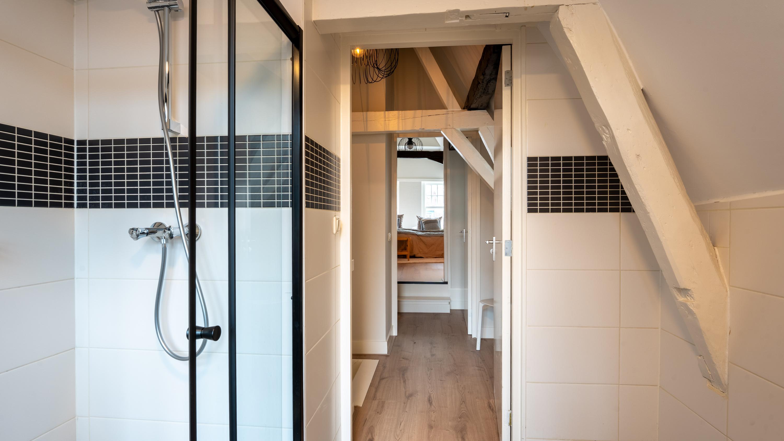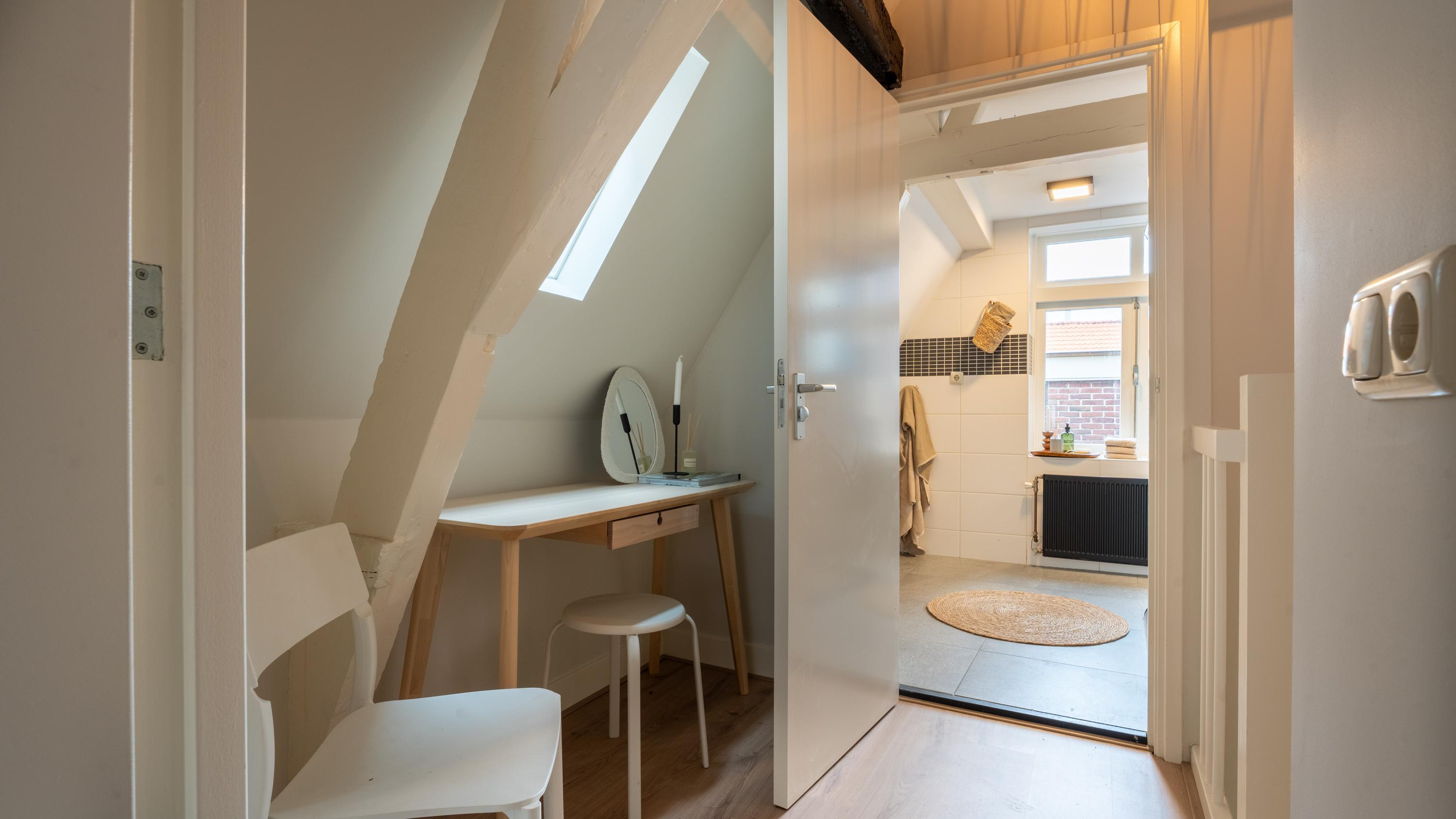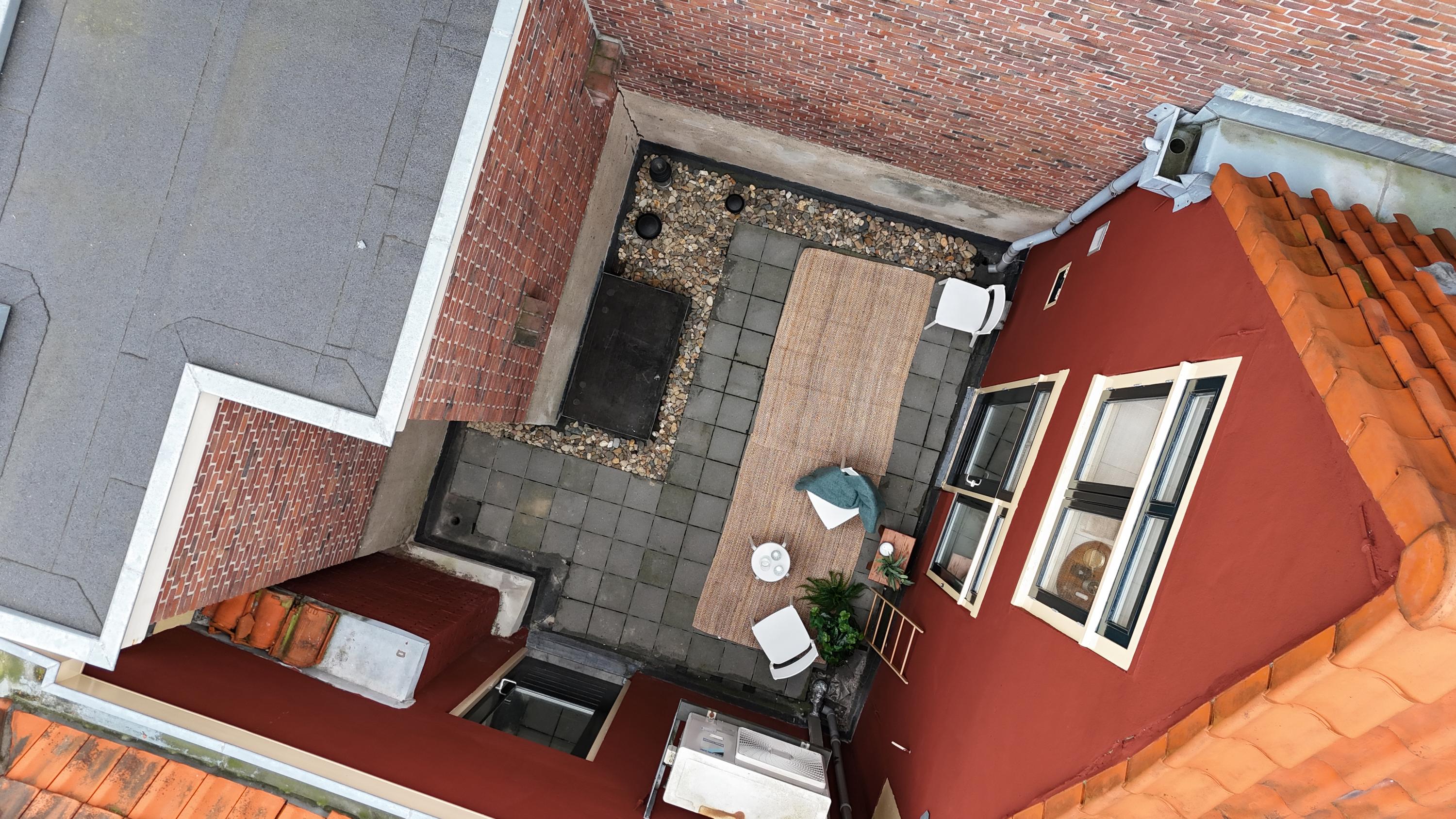 Vanaf het eigen, afsluitbare dakterras betreed je de woning via de uitgesproken rode gevel, wat direct een gevoel van historie oproept. Alsof je een authentiek wevershuis binnenstapt – maar dan met het comfort en de ruimte van een royale maisonnette.
