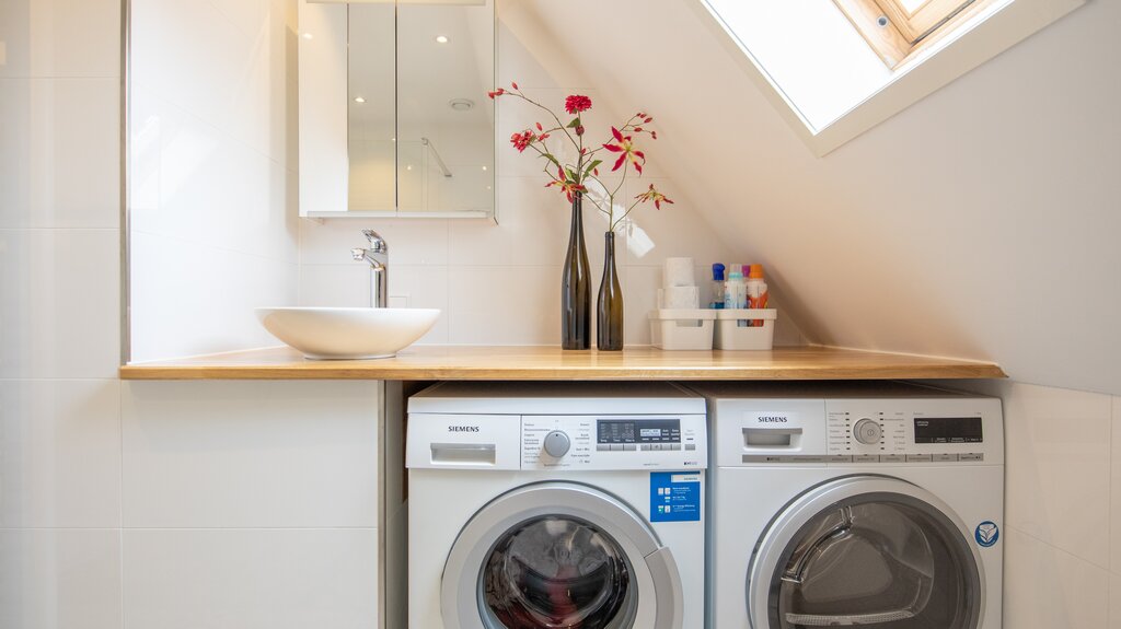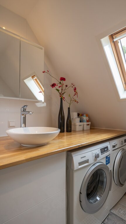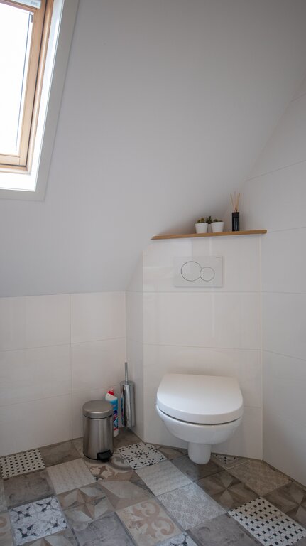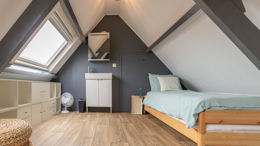 Op de zolderverdieping bevindt zich een extra gebruiksruimte, ideaal als derde slaapkamer, werkruimte of hobbykamer. Dankzij de dakramen is deze ruimte heerlijk licht en veelzijdig in te delen. Bovendien is er op zolder een wastafel aanwezig voor extra gemak.