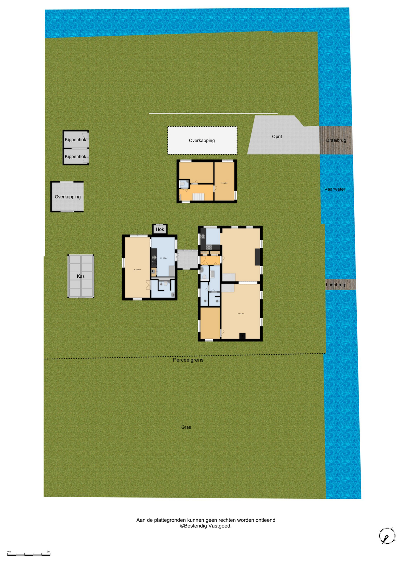 Rondom het erf wisselen zonnige terrassen, schaduwrijke boompartijen en uitgestrekte grasvelden elkaar af. Er is een glazen kas voor de liefhebber van groen, een dierenweide, een kippenhok en meerdere beschutte plekken om te genieten van lange zomeravonden, barbecueën met vrienden of simpelweg kijken naar de bootjes die voorbijvaren. Met plek voor wel vijf boten is het water hier jouw achtertuin.