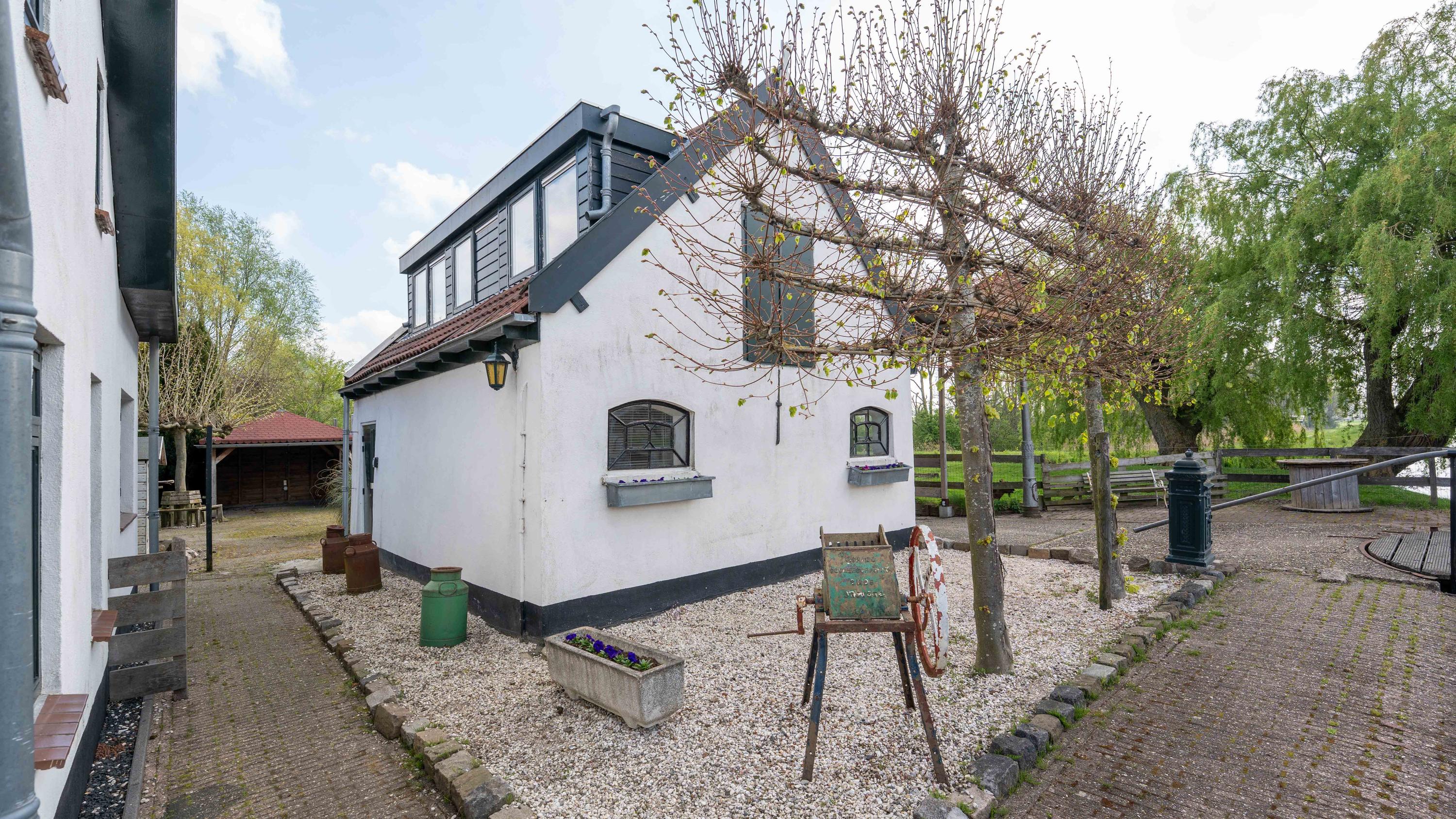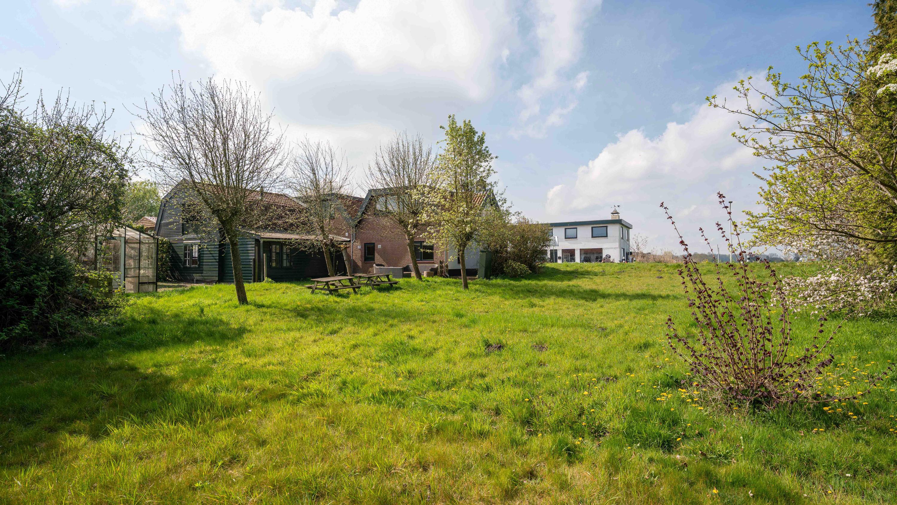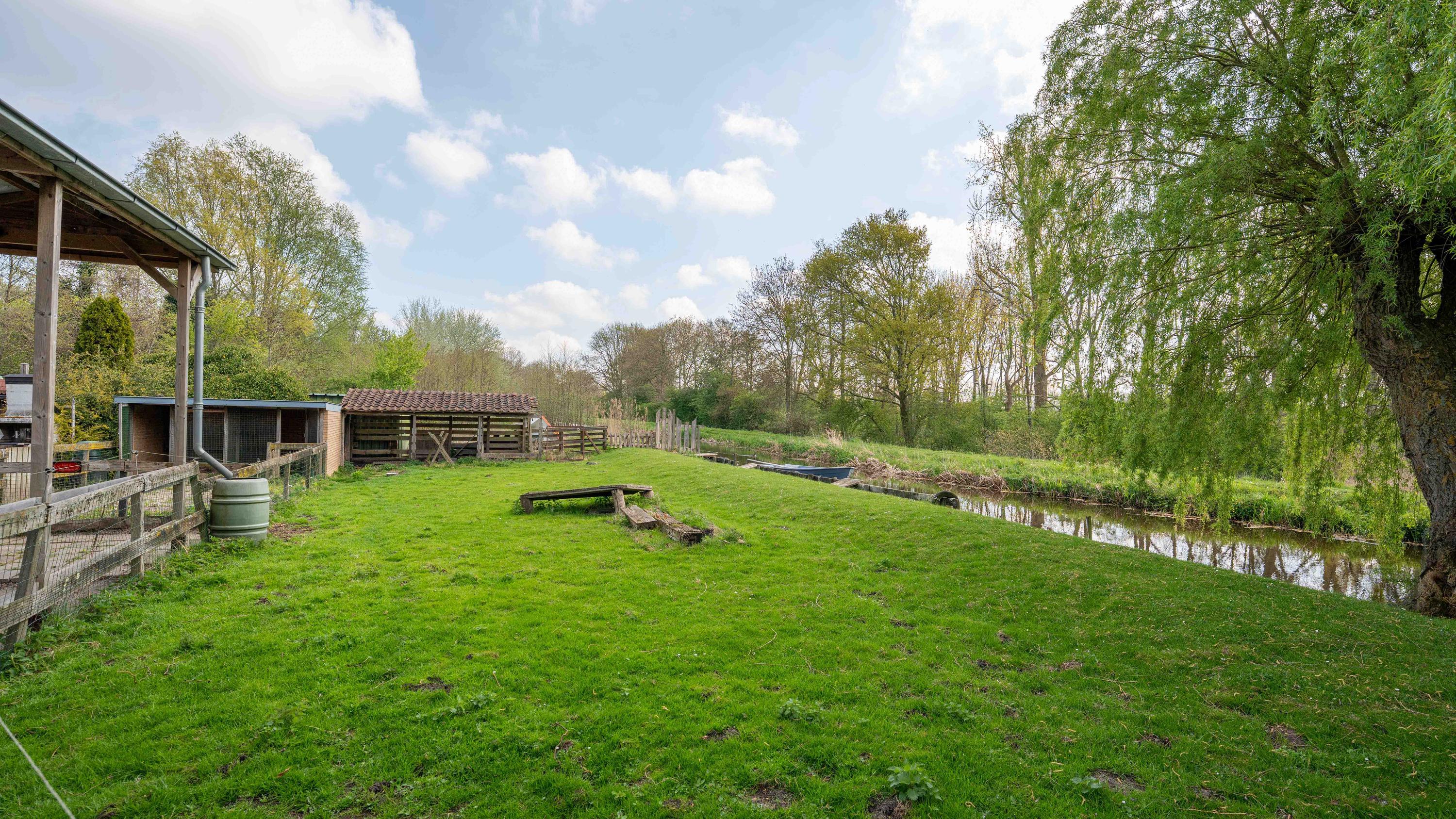Rondom het erf wisselen zonnige terrassen, schaduwrijke boompartijen en uitgestrekte grasvelden elkaar af. Er is een glazen kas voor de liefhebber van groen, een dierenweide, een kippenhok en meerdere beschutte plekken om te genieten van lange zomeravonden, barbecueën met vrienden of simpelweg kijken naar de bootjes die voorbijvaren. Met plek voor wel vijf boten is het water hier jouw achtertuin.