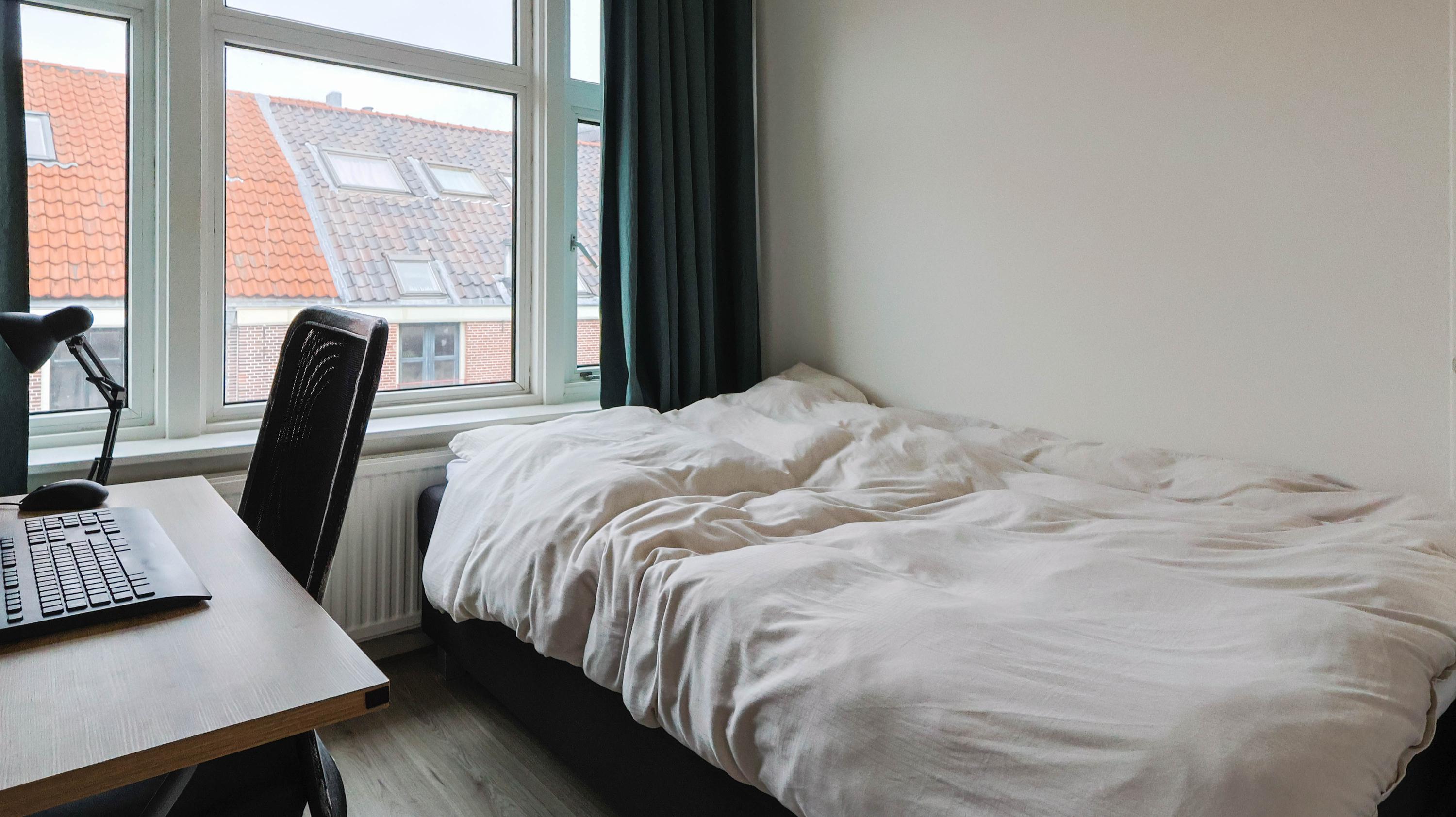 De woning beschikt over een slaapkamer met voldoende ruimte voor een tweepersoonsbed en kastruimte. De kamer is rustig gelegen en eveneens voorzien van een prettige lichtinval.
