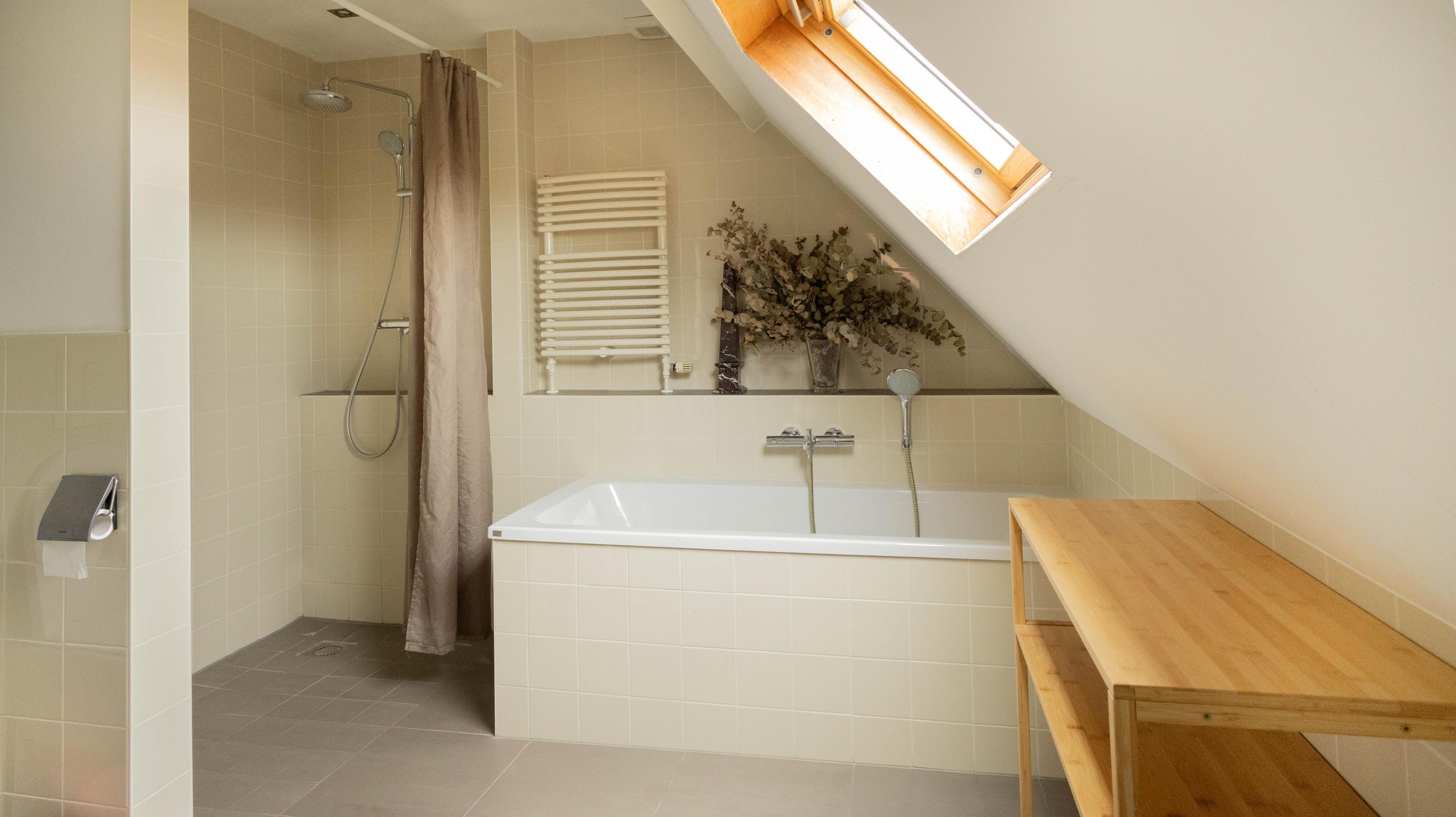 Op de tweede woonlaag vind je de ruime badkamer, voorzien van een ruime inloopdouche, handdoekradiator, badkuip, wastafel en een hangend toilet. De hoofdslaapkamer is gelegen aan de achterzijde van het perceel en is voorzien van een ruime inbouwkast. Aan de voorzijde van het perceel bevindt zich een tweede ruime slaapkamer. De derde slaapkamer is eveneens ruim en geeft toegang tot een wasruimte, die is voorzien van een wastafel, wasmachine en droger. De zolder is ingericht als een vierde, ruime slaapkamer en biedt tevens ruimte voor opslag.