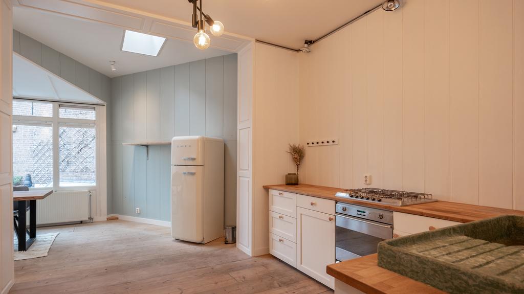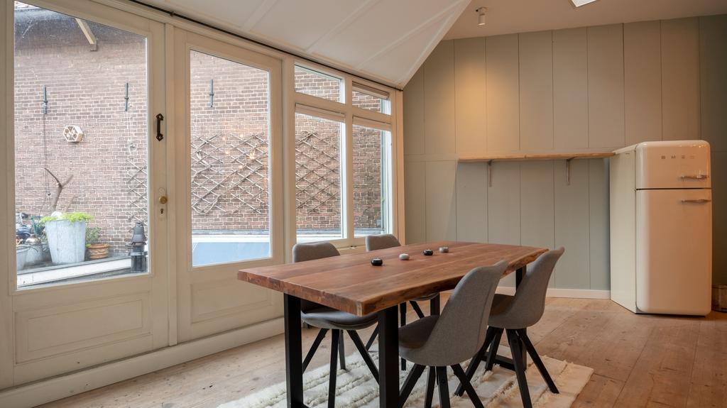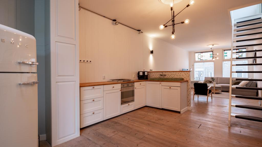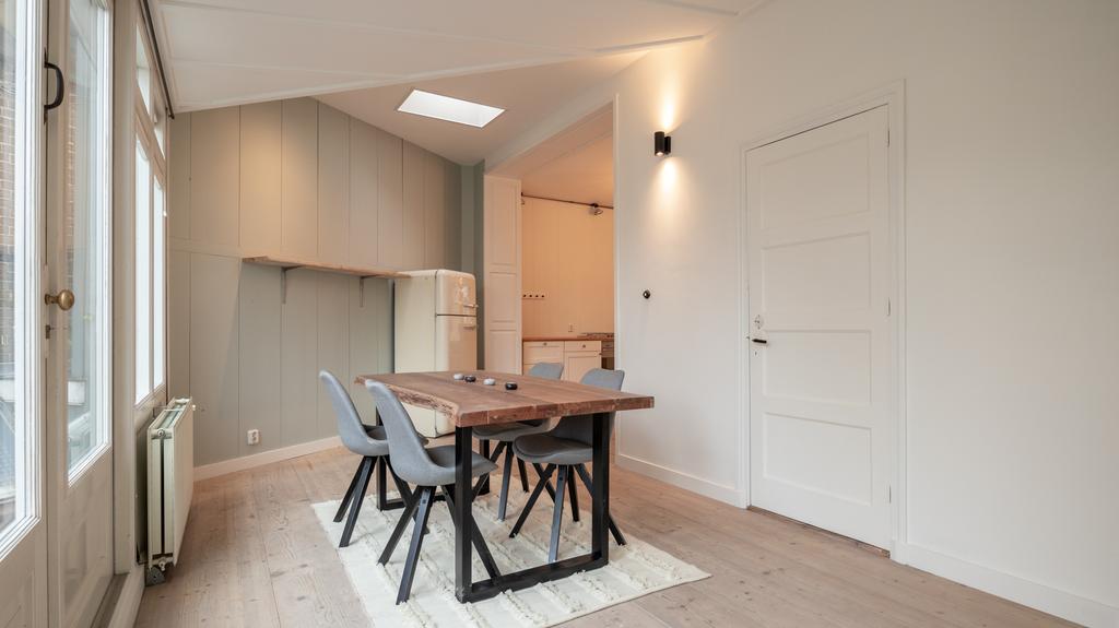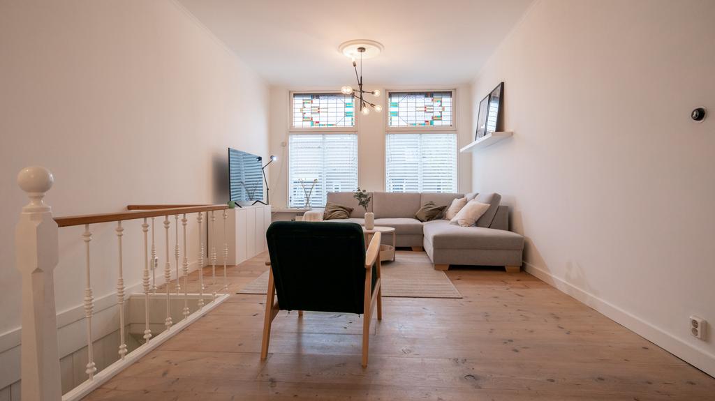 Midden in het centrum van Leiden met alle voorzieningen in de direct omgeving en lopend te bereiken. De entree op de begane grond komt uit in de hal waarvandaan er middels vaste trap toegang is tot de eerste etage. Deze is bijzonder ruim van opzet, licht door de vele ramen en hoge plafonds. Glas in lood, markiezen, houten vloer en retro details werken mee aan de moderne en toch karaktervolle sfeer in de woning. De ruime open keuken met houten werkblad is voorzien van de nodige opbergruimte en inbouwvaatwasser. Aan de achterzijde van de woning is de ruime eetkamer te vinden die mogelijk tevens als werkplek dienst kan doen. Hiervandaan is er tevens een toilet en separate bergkast bereikbaar alsmede het zonnige en prettig ruime dakterras middels openslaande deuren. De vaste trap komt uit op de tweede etage met vanaf de overloop toegang tot de slaapkamer, gelegen aan de voorzijde. De badkamer is volledig gerenoveerd en voorzien van een moderne inloopdouche, toilet en wasmachine. De kamer aan de achterzijde is ideaal te gebruiken als studeer-, logeer-, berging- en/of waskamer. Met winkels, openbaar vervoer én het stadspark direct om de hoek is de ligging van deze woning ideaal te noemen.