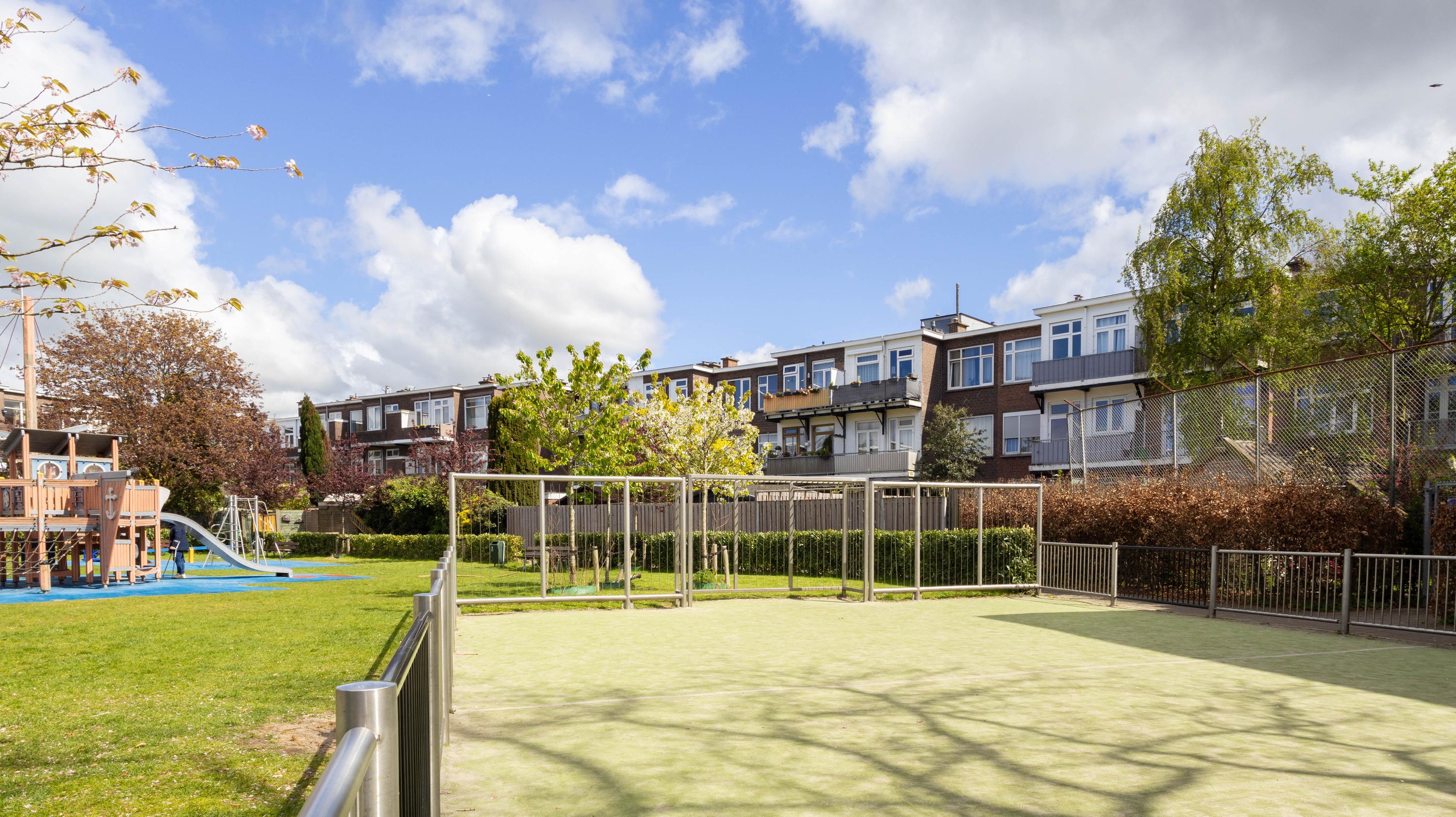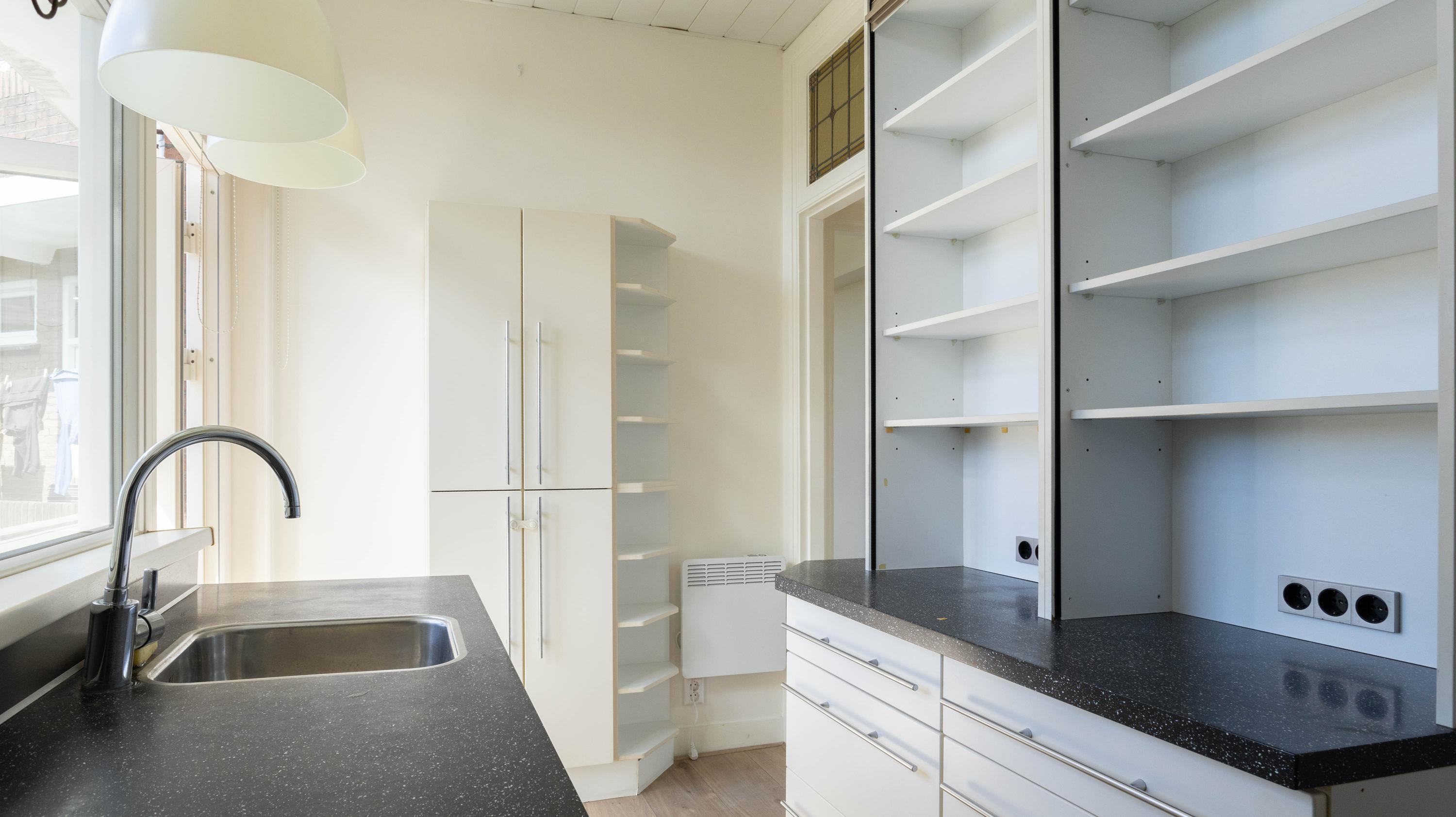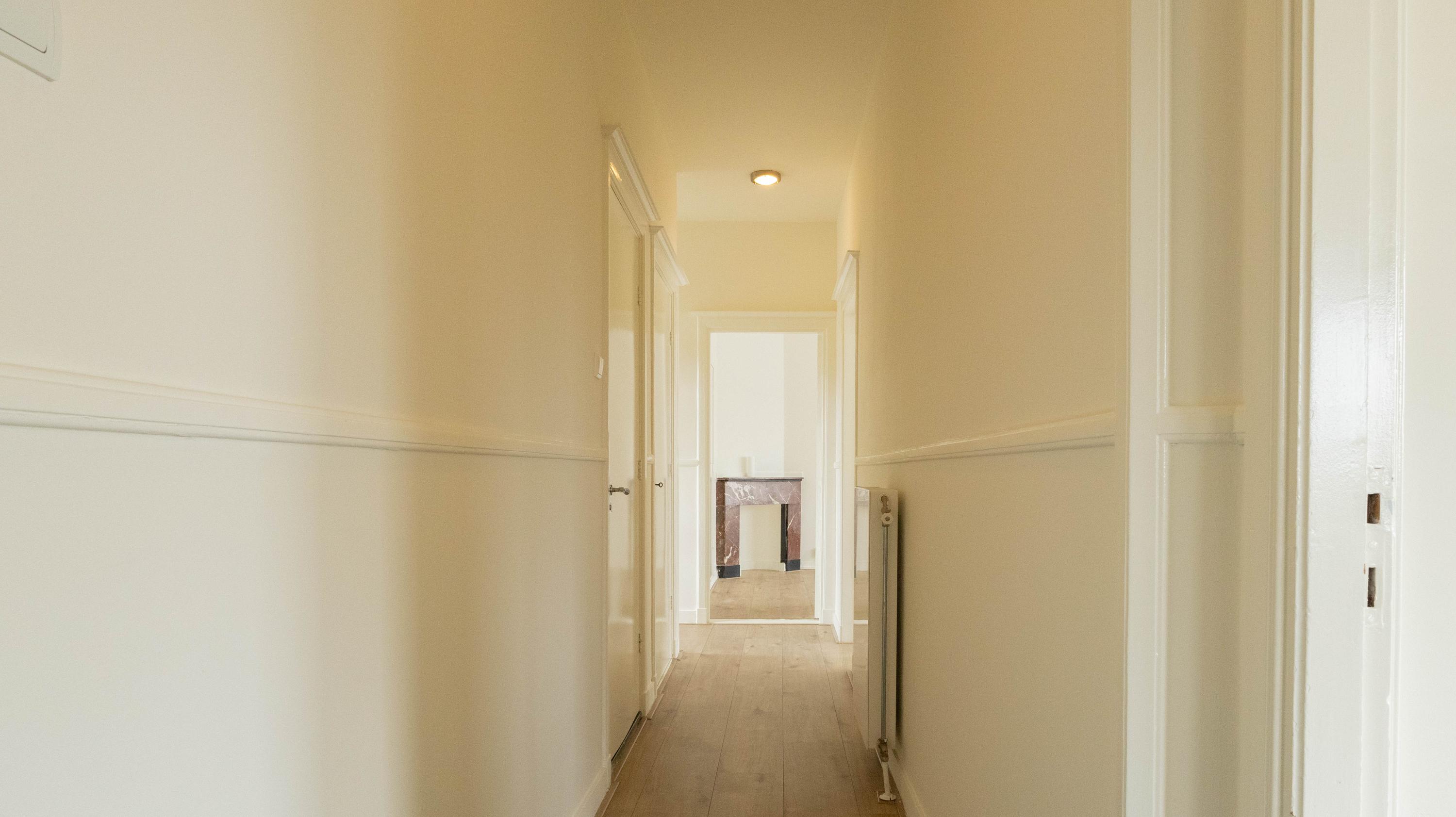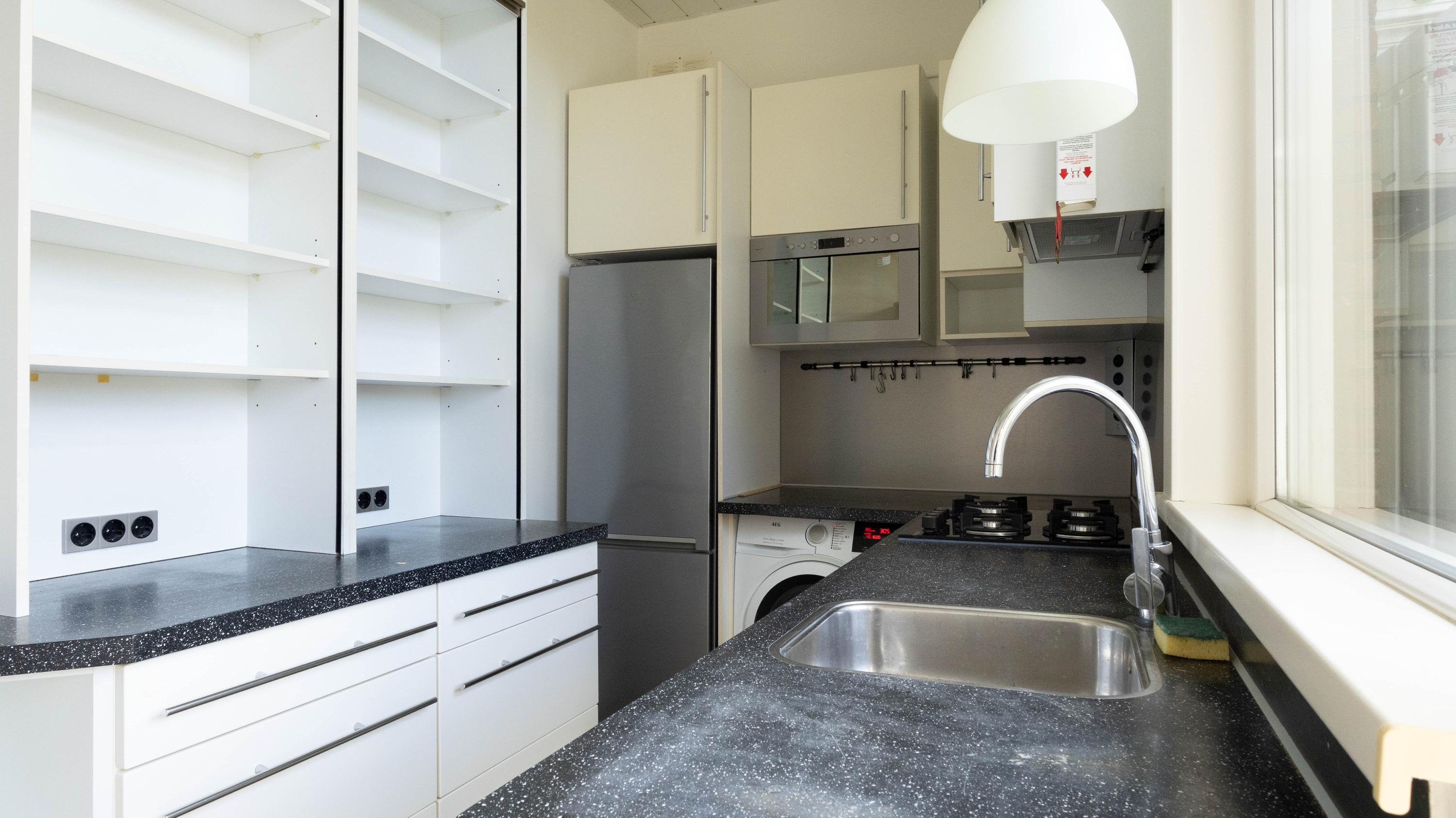 De entree van de woning is bereikbaar via een trap vanaf de straat. Eenmaal binnen komt de woning uit in de centrale hal, die toegang biedt tot alle vertrekken. Vanuit hier zijn de twee ruime slaapkamers, de verzorgde badkamer voorzien van een douche en wastafel met meubel en het separate toilet bereikbaar. De woonkamer is ruim en licht en vormt het hart van de woning. De open keuken is voorzien van diverse inbouwapparatuur, waaronder een kookplaat, afzuigkap, oven, koelkast-vries combinatie en vaatwasser. Vanuit de keuken is het balkon op het zuiden bereikbaar, waar heerlijk van de zon genoten kan worden. De woning beschikt over twee goed bemeten slaapkamers. De hoofdslaapkamer biedt voldoende ruimte voor een tweepersoonsbed en een kledingkast. De tweede slaapkamer is ideaal te gebruiken als werk-, logeer- of kinderkamer.
