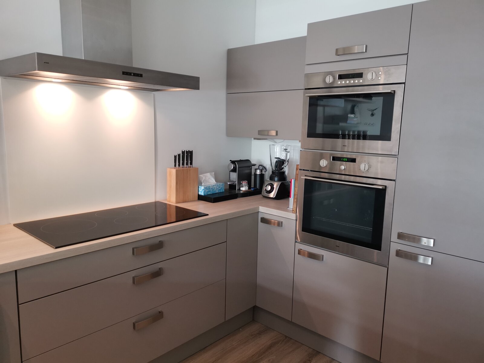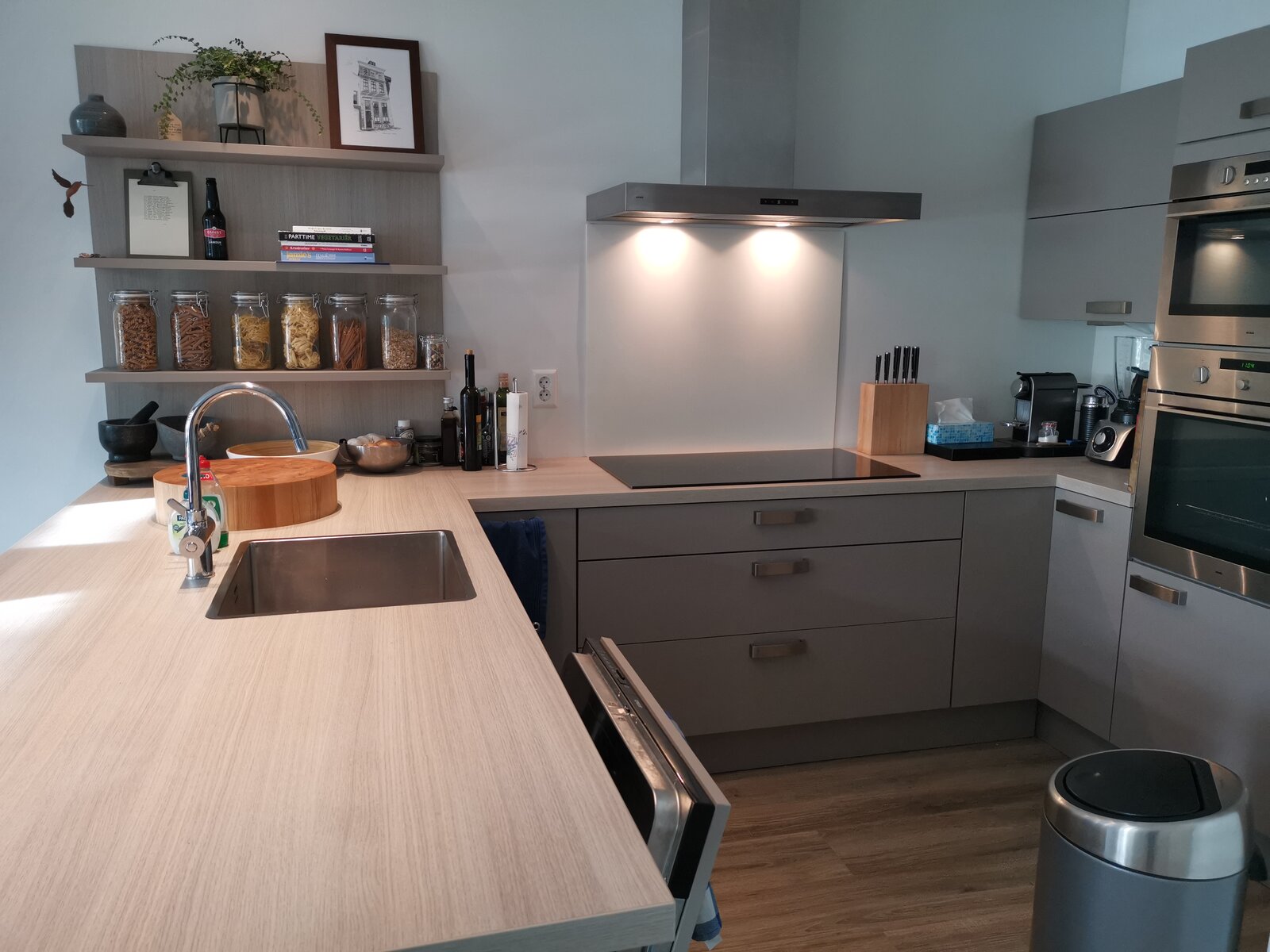 Dit prachtige en volledig gemeubileerde 3 kamer appartement, gelegen op de eerste etage van een modern en energie zuinig complex komt op korte termijn beschikbaar. Via de gemeenschappelijke en afgesloten entree op de begane grond is de woning middels trap en/of lift te bereiken. De hal van het appartement geeft toegang aan alle ruimtes waaronder het separate toilet en de woonkamer met open keuken. Deze is modern en uitgerust met inductiekookplaat met afzuigkap, inbouw oven, magnetron, Quooker, vaatwasser en koel- vriescombinatie. Het zonnige balkon, met zicht op het vaarwater, is tevens bereikbaar vanuit de woonkamer evenals het zonneterras. Er zijn twee slaapkamers waarbij de kleine ideaal is om te gebruiken als kleding- studeer-, en/of werkkamer. De badkamer is uitgerust met een wastafel + meubel, handdoekradiator, vloerverwarming en prettige inloopdouche. Deze woning wordt volledig gemeubileerd verhuurd inclusief was en droogmachine , gebruik van een privé berging op de begane grond alsmede een privé parkeerplek