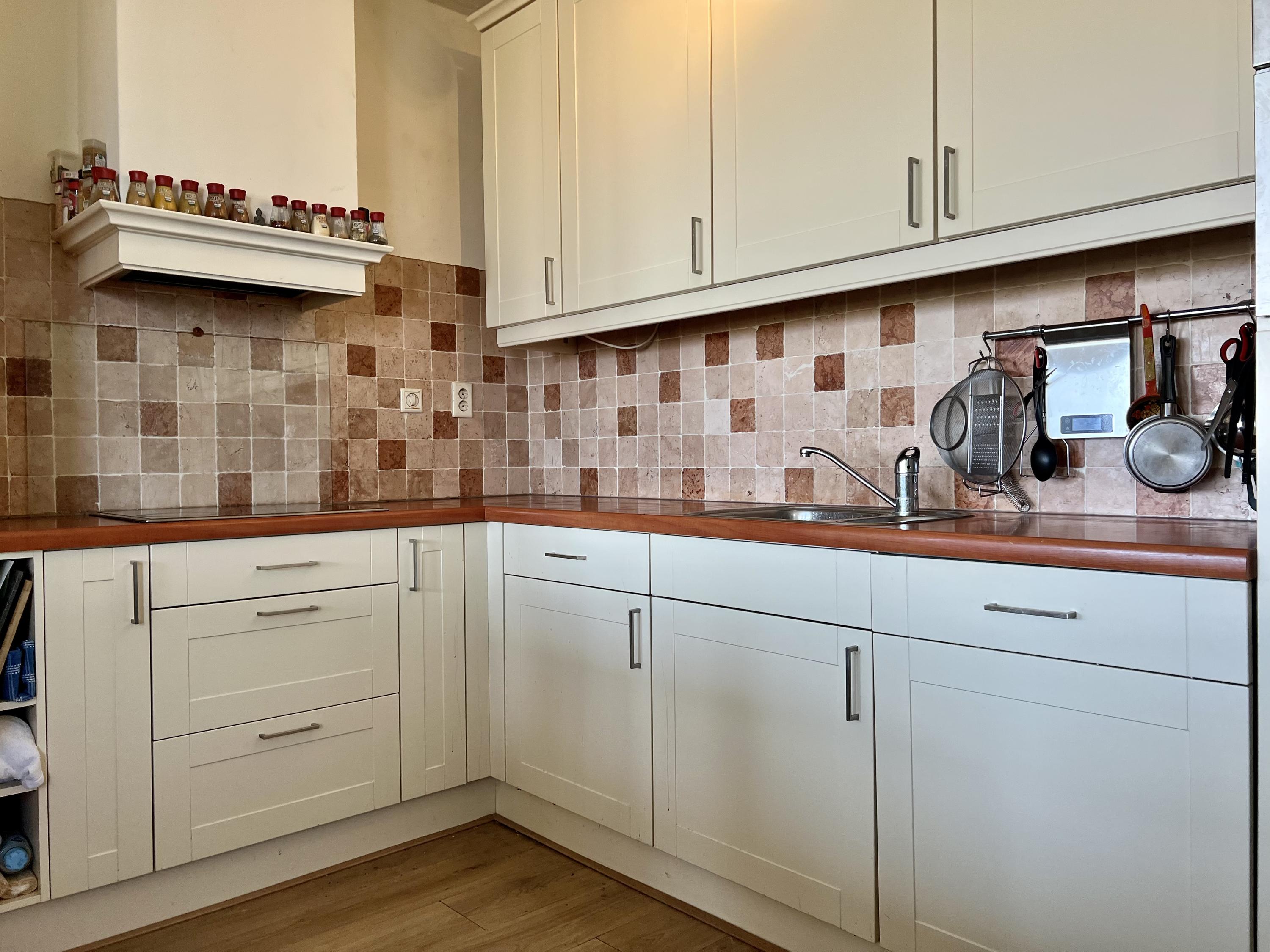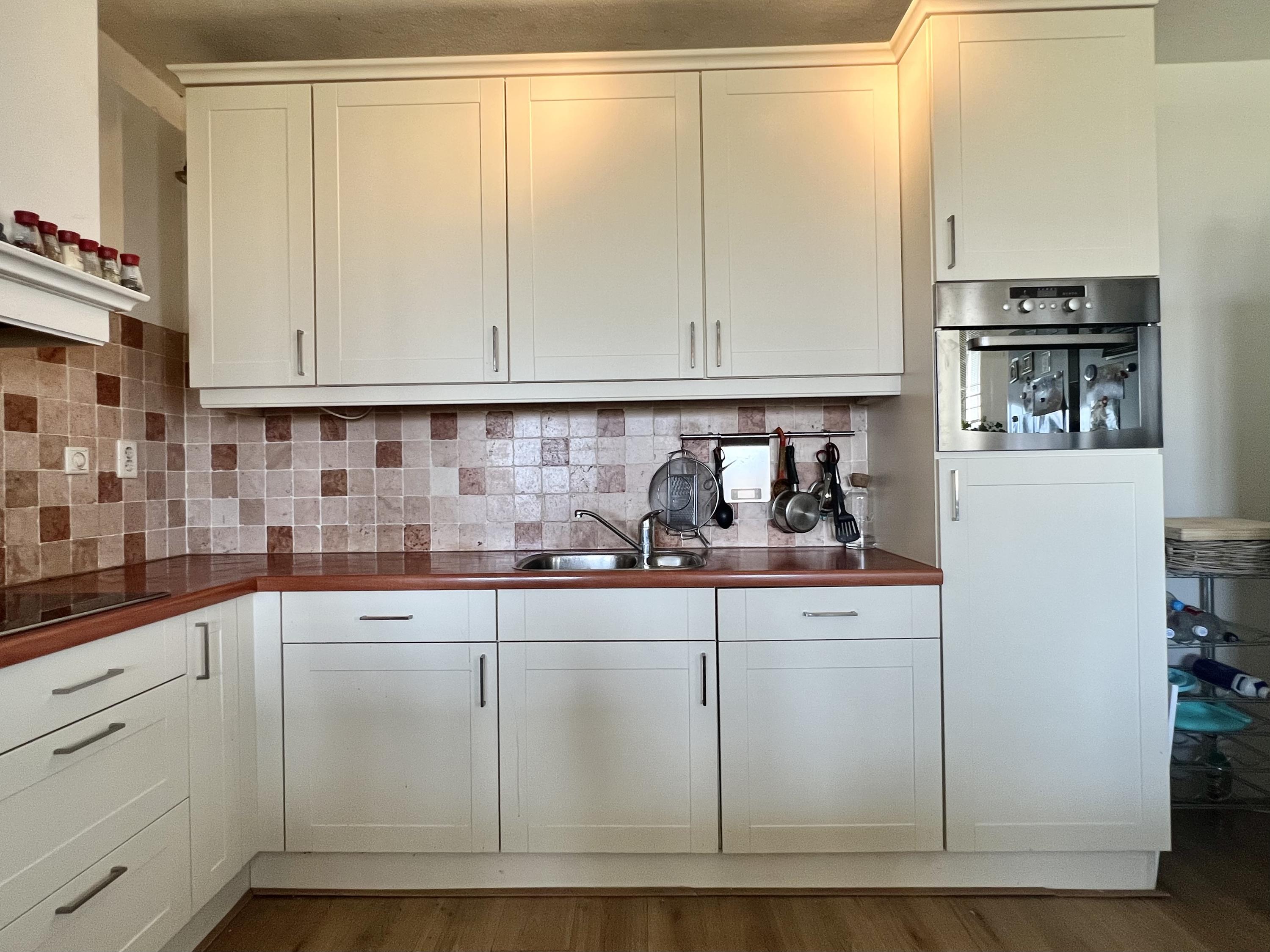 De moderne keuken is van alle gemakken voorzien en biedt volop werk- en opbergruimte.
